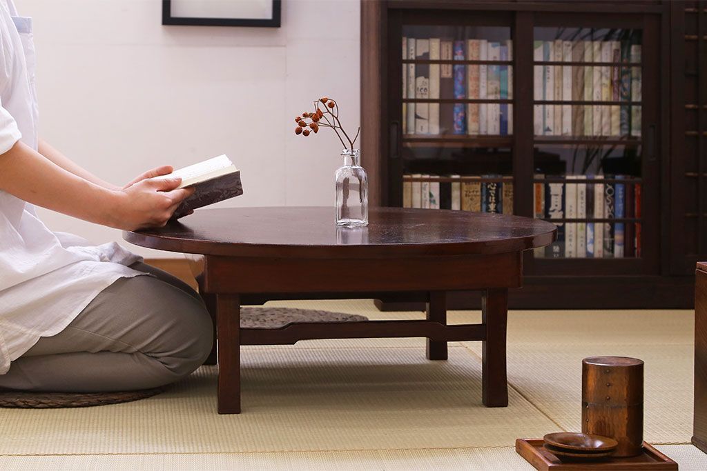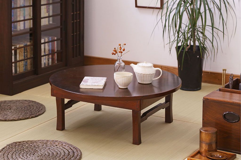 ラフジュ工房> テーブル> 座卓 > アンティーク家具 天板一枚板!総ケヤキ材の重厚なちゃぶ台