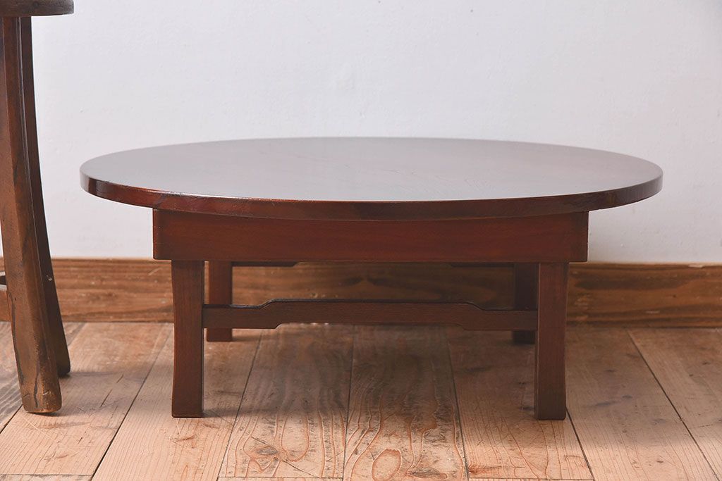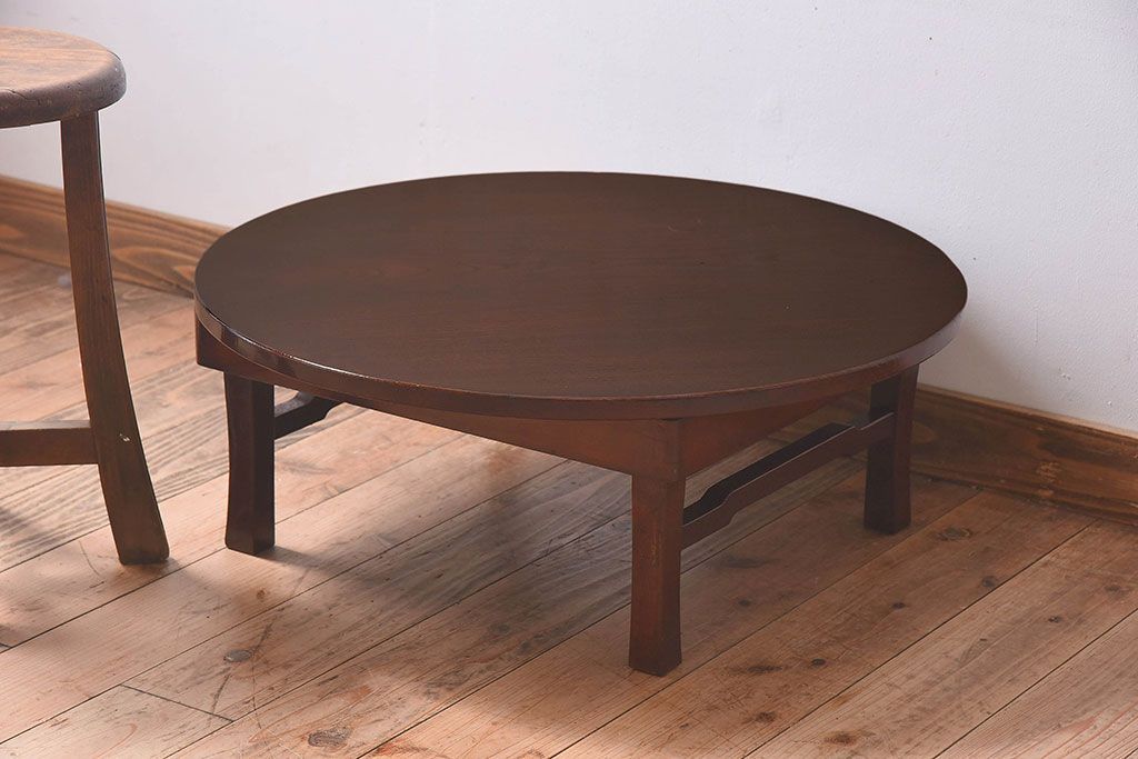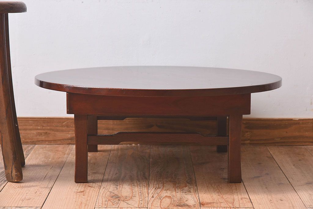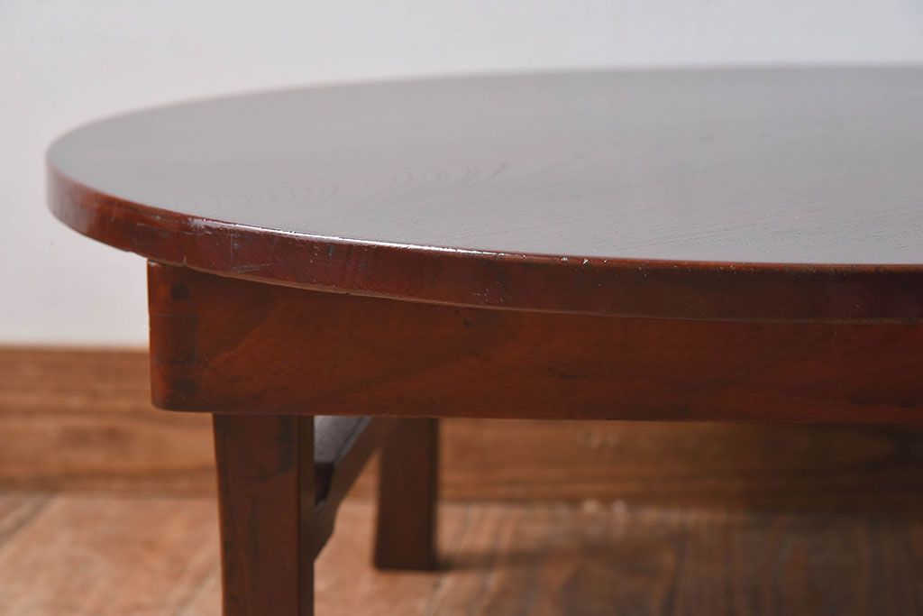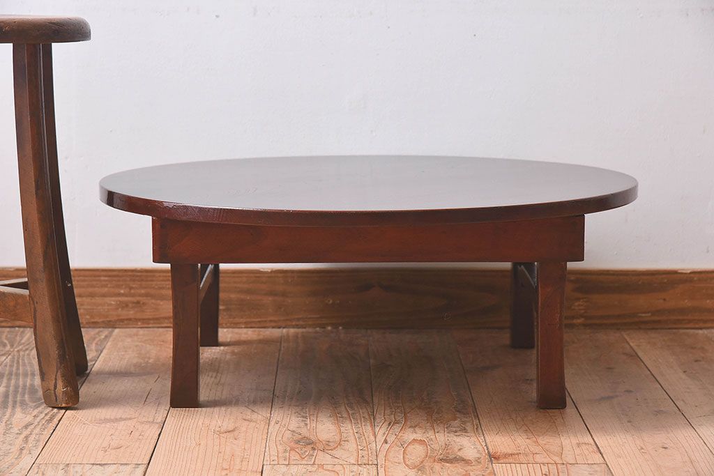ラフジュ工房> テーブル> センターテーブル・ローテーブル > アンティーク家具 天板一枚板!総ケヤキ材の重厚なちゃぶ台