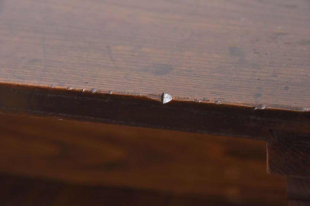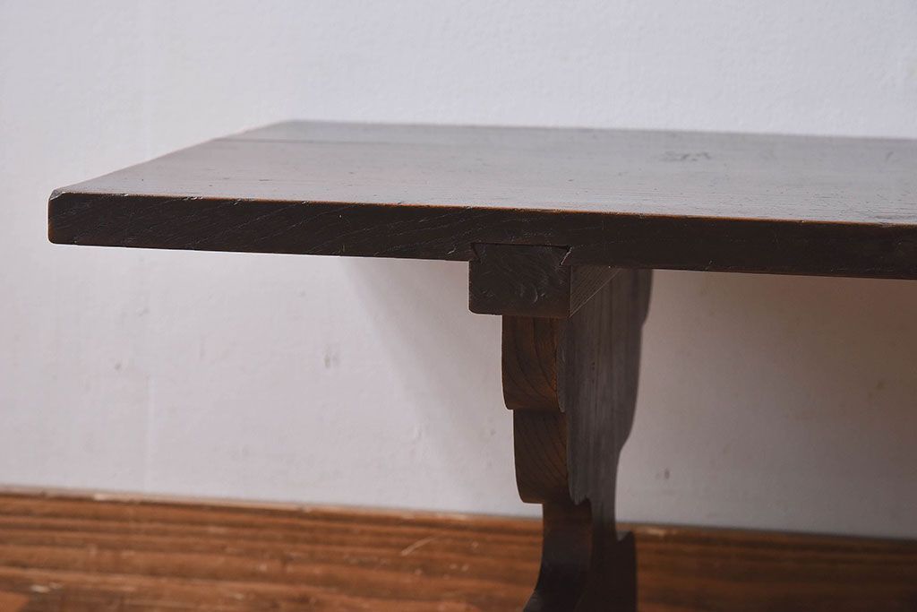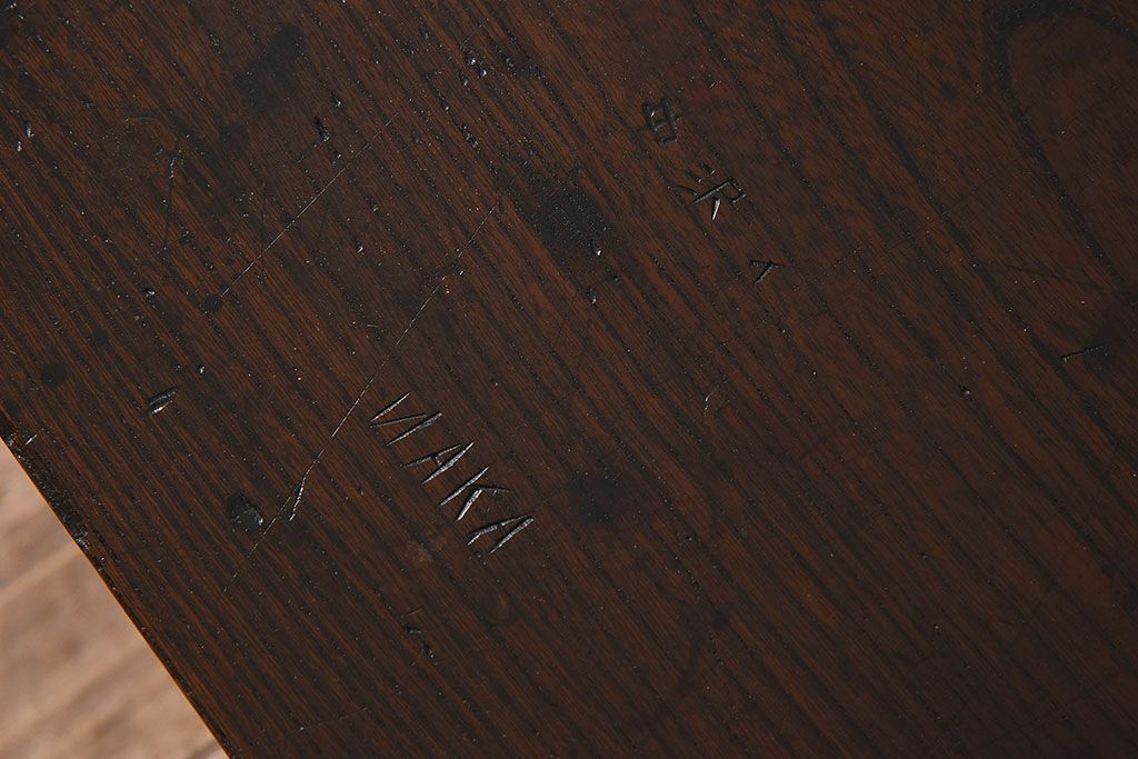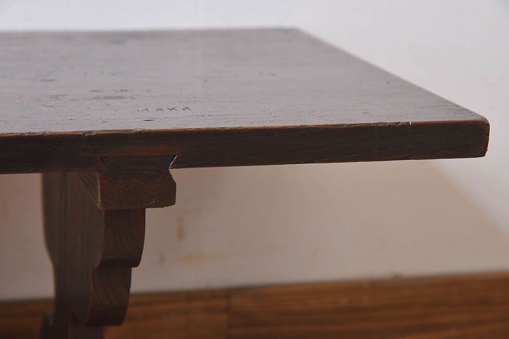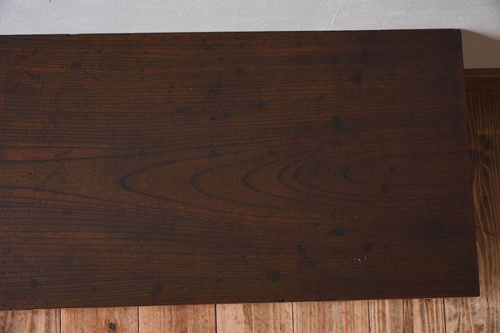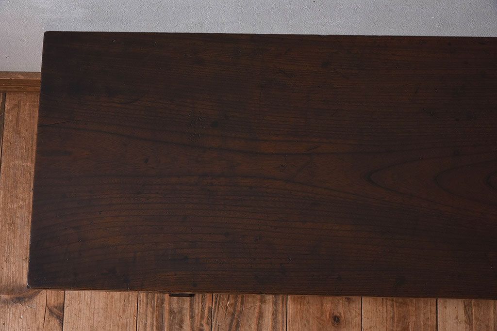 アンティーク雑貨 総ケヤキ材 天板一枚板!古い木の質感が味わい深い文机(2)