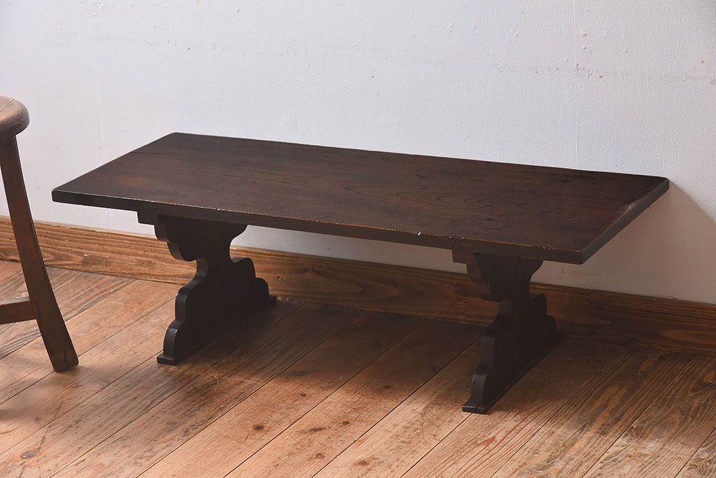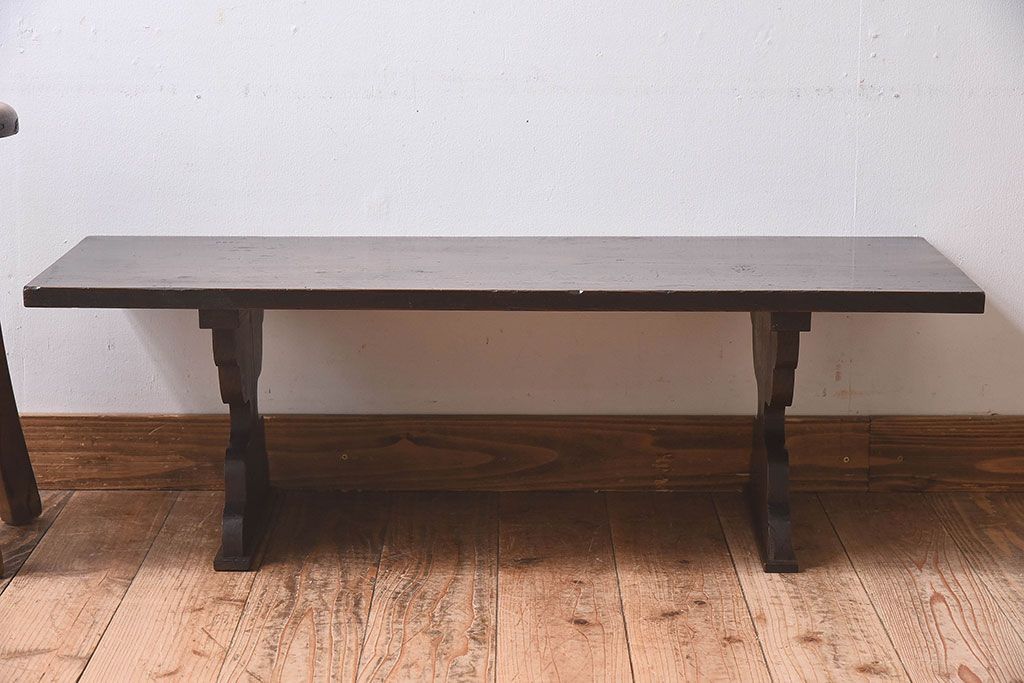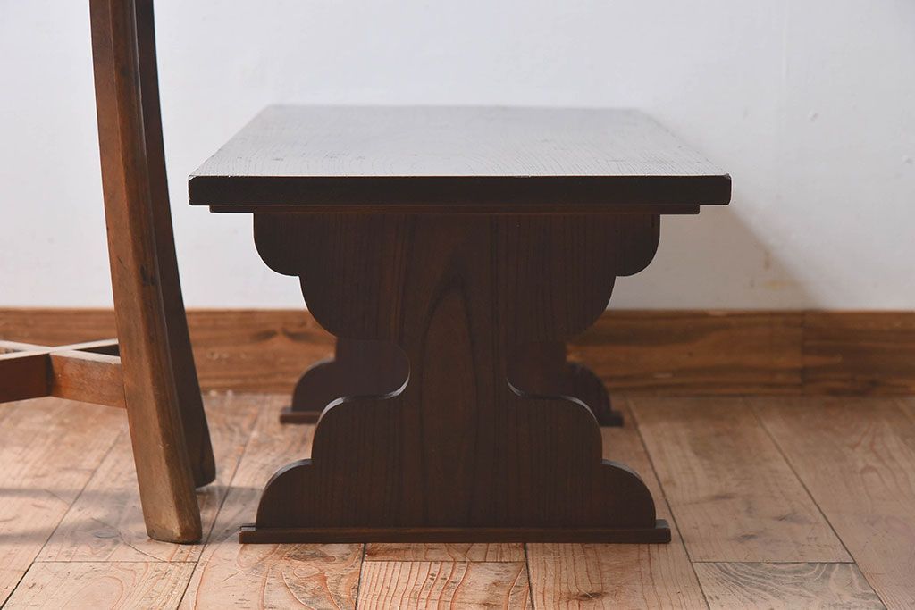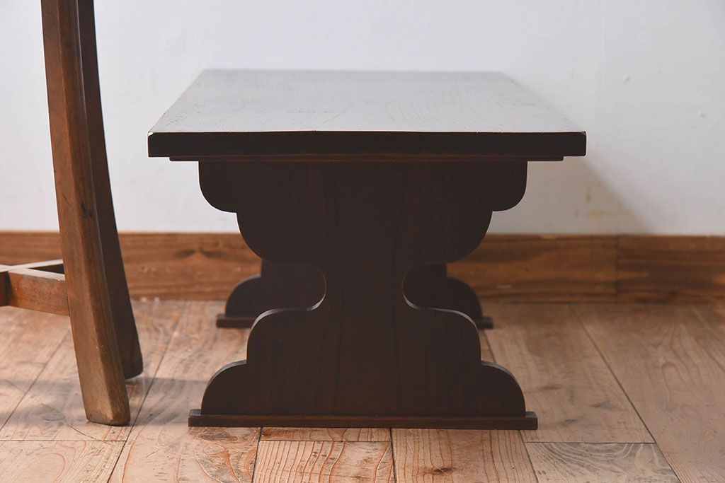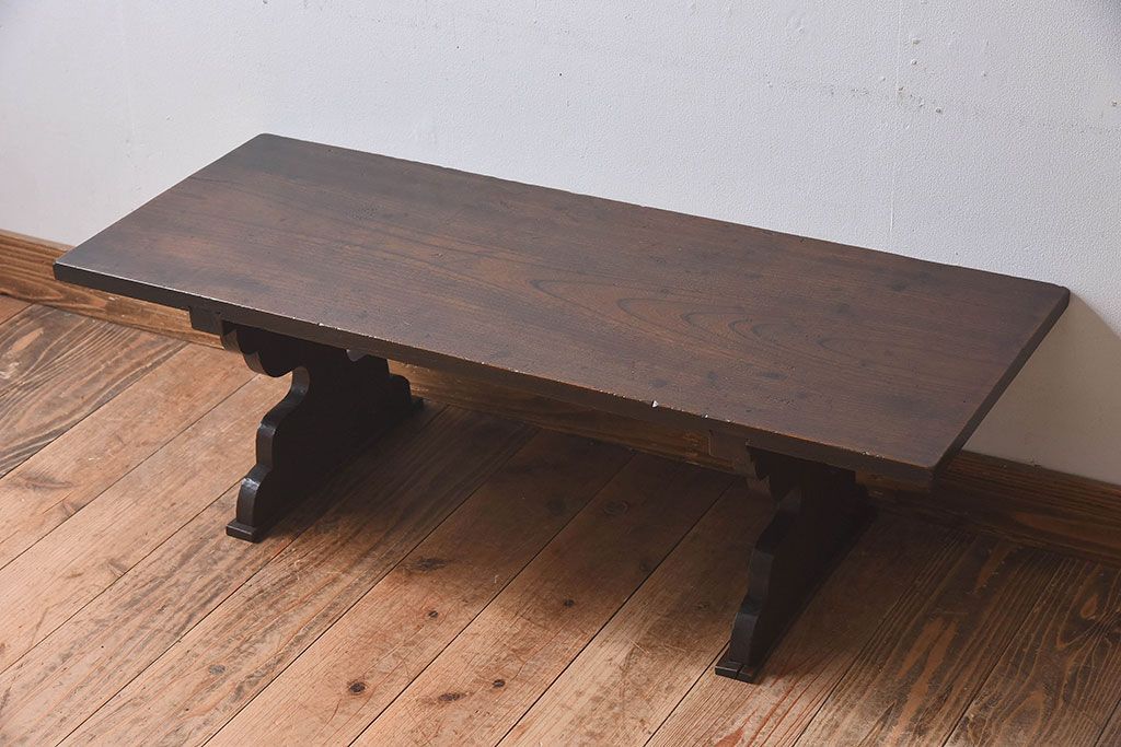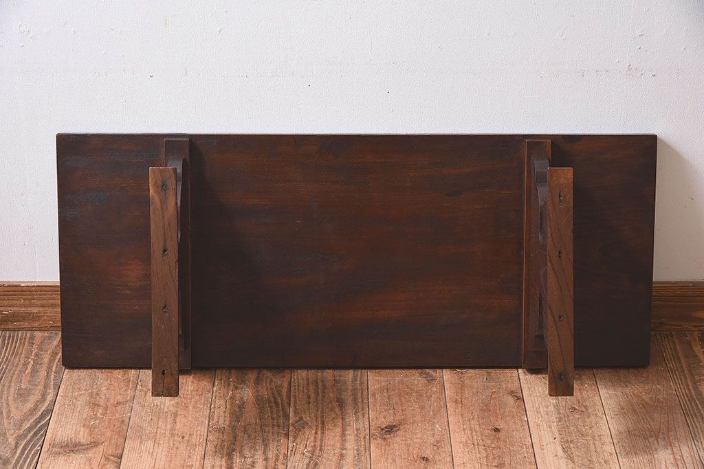 アンティーク雑貨 総ケヤキ材 天板一枚板!古い木の質感が味わい深い文机(2)