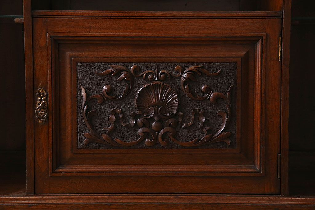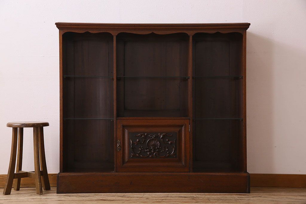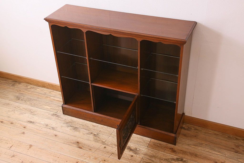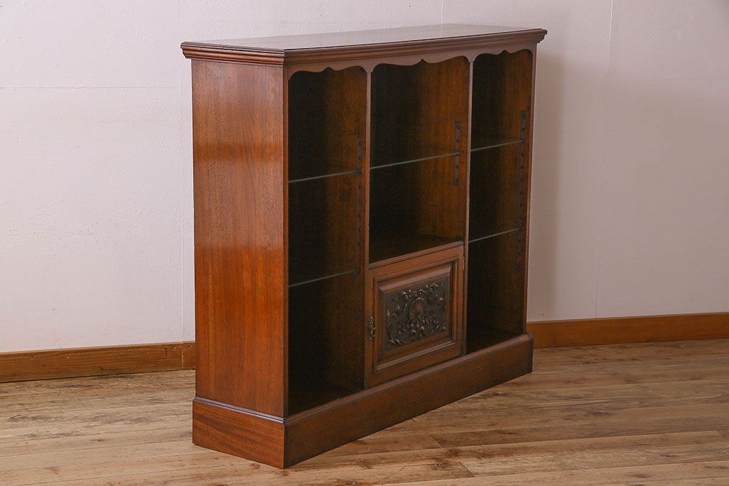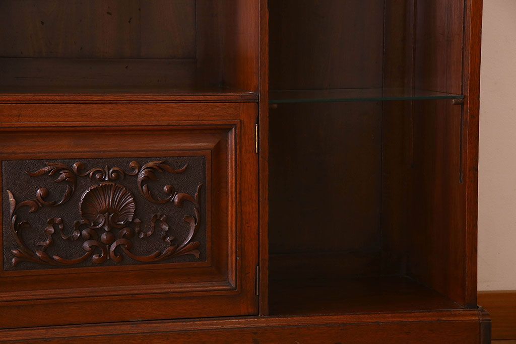 アンティーク家具 英国製 マホガニー材 彫刻が美しい上品な飾り棚(陳列棚)