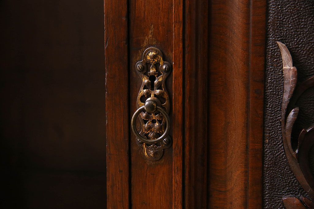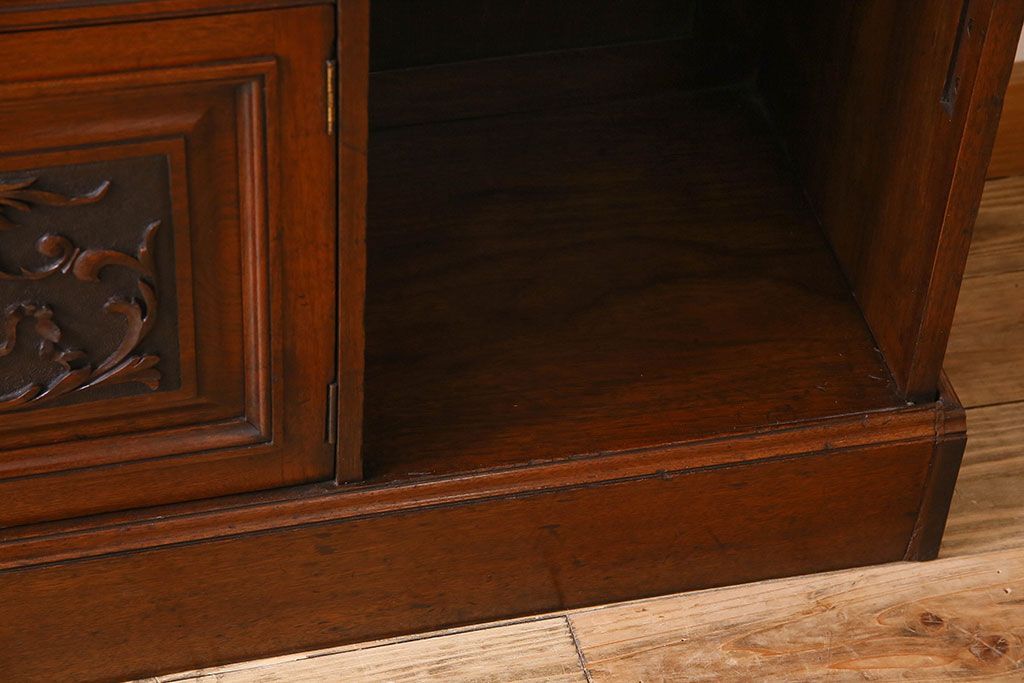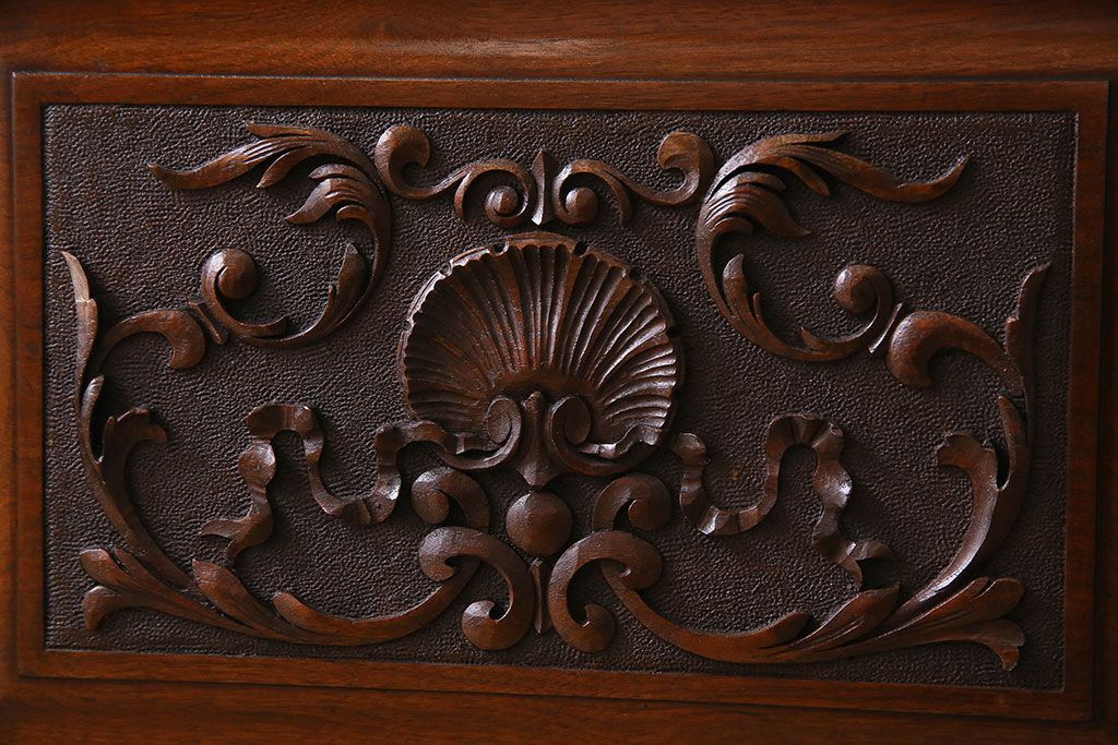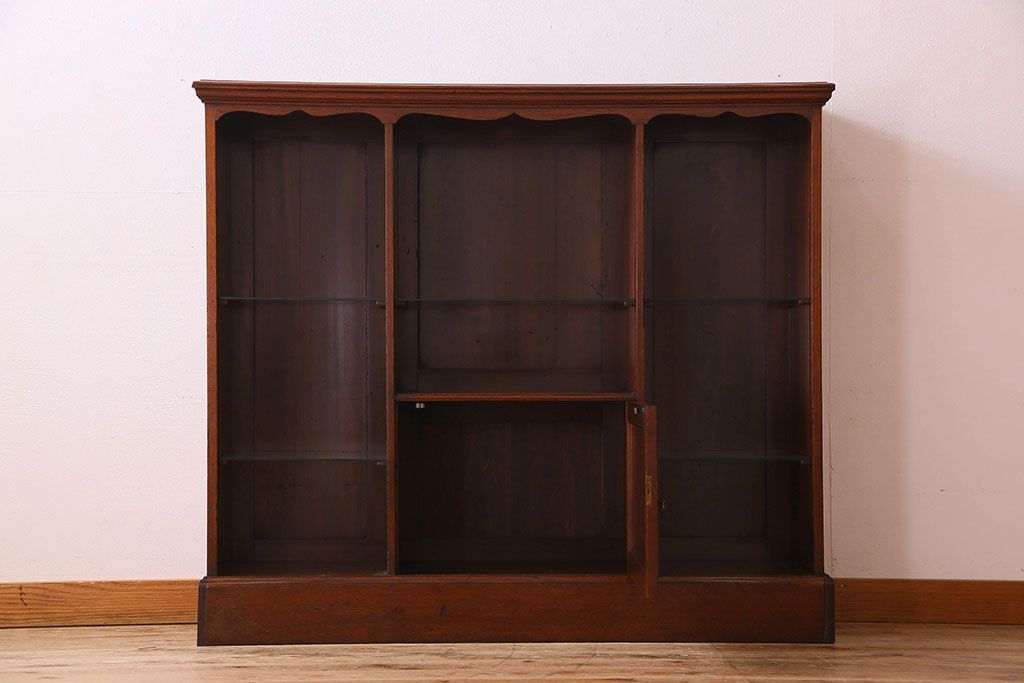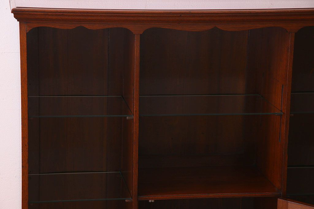 アンティーク家具 英国製 マホガニー材 彫刻が美しい上品な飾り棚(陳列棚)
