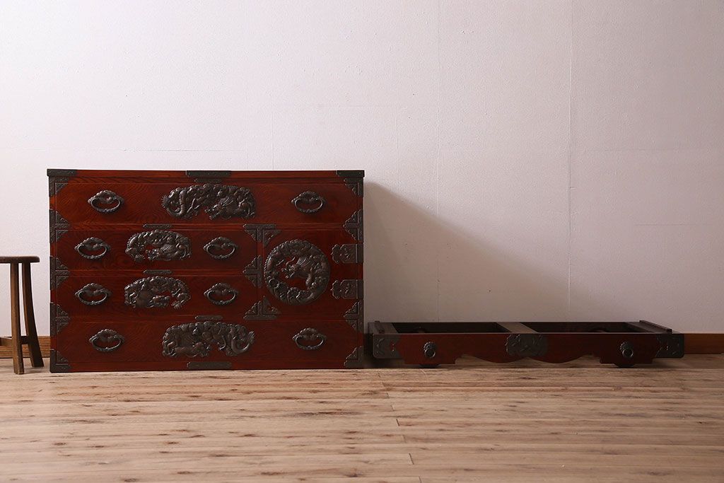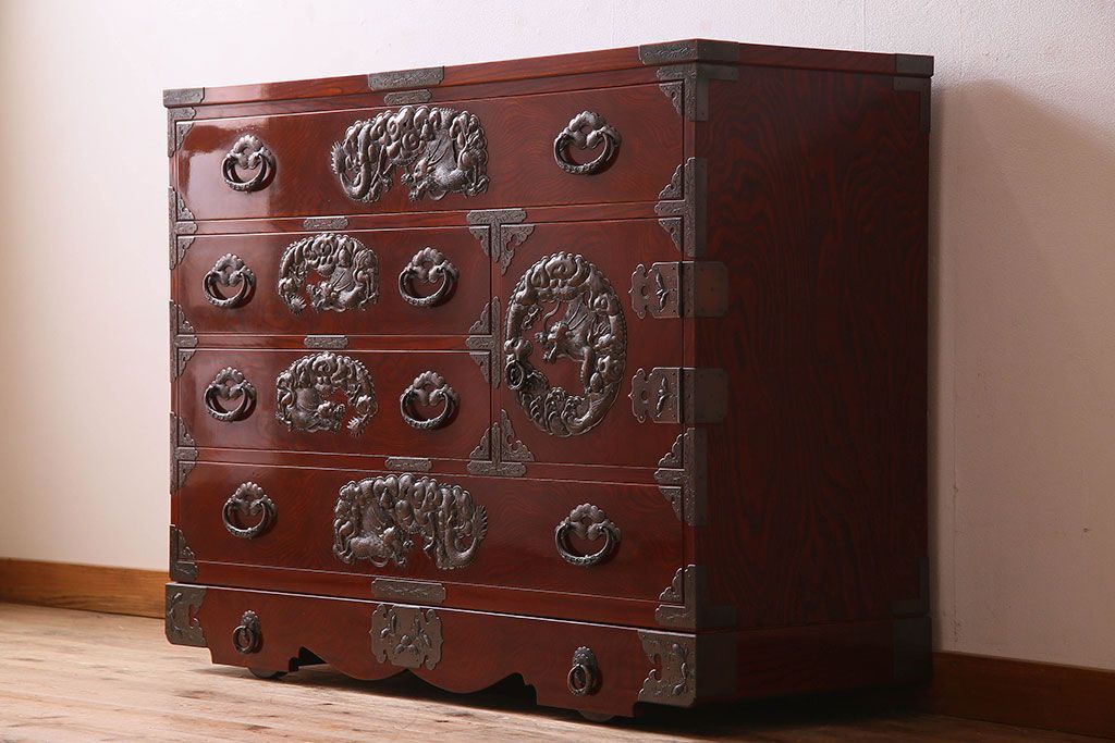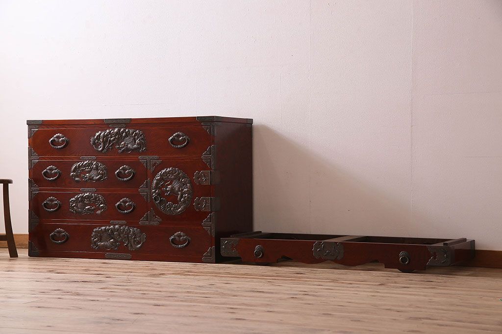 和箪笥> 衣装箪笥 > 中古 伝統工芸 手打ち金具 上質な岩谷堂箪笥・四尺整理箪笥(車箪笥、衣装箪笥)(定価140万円)