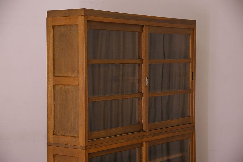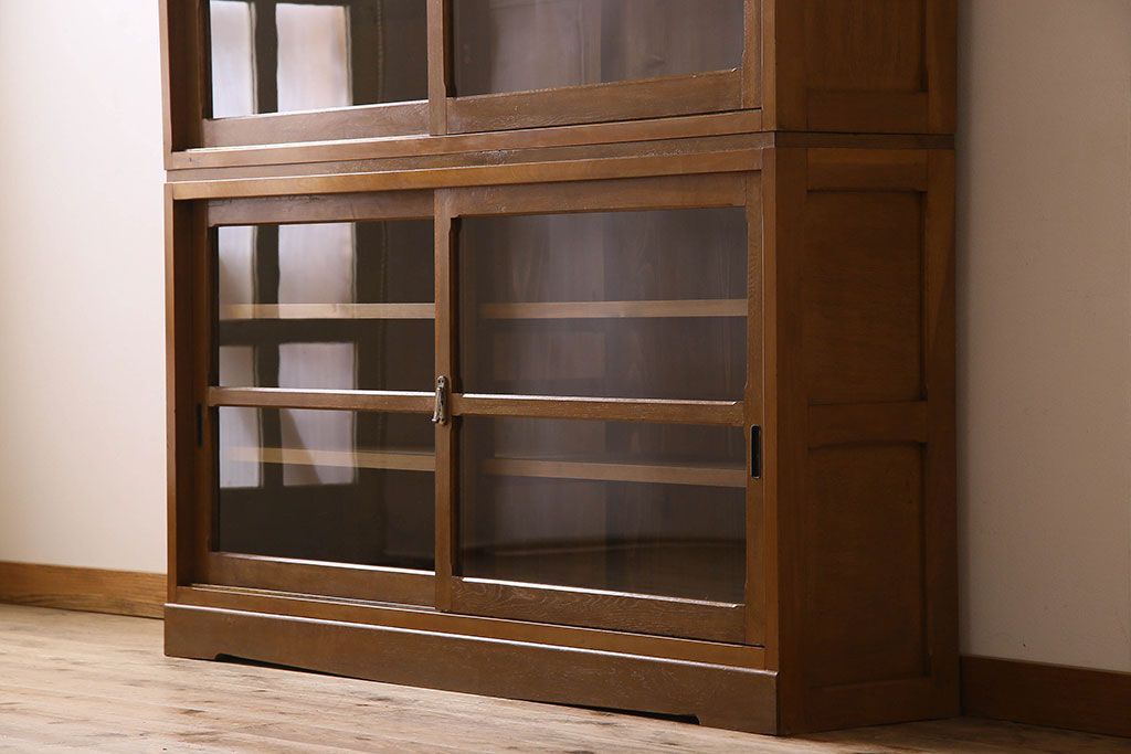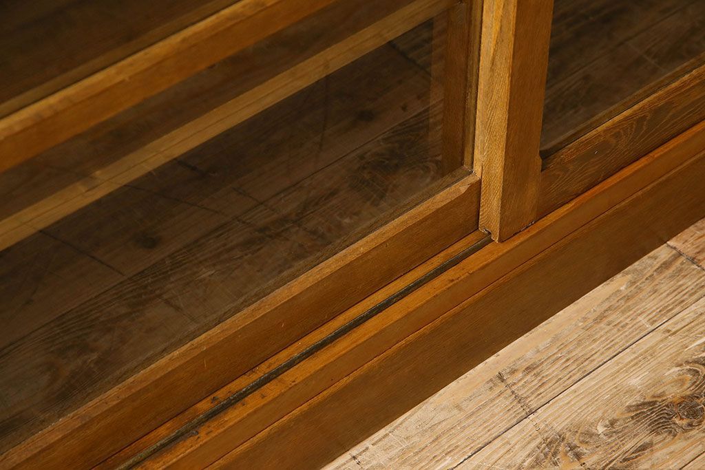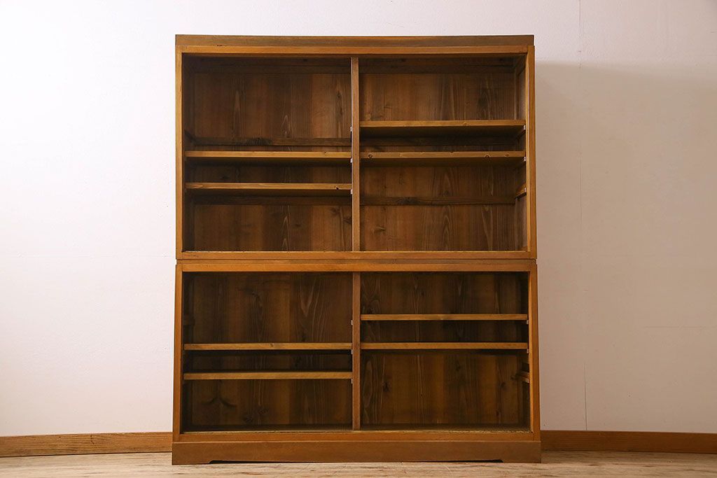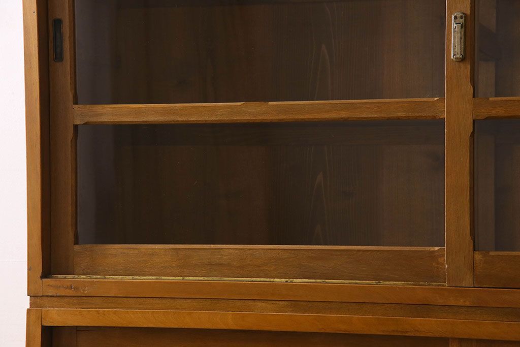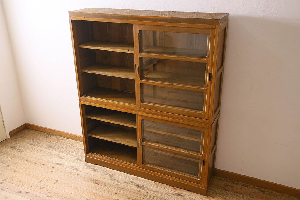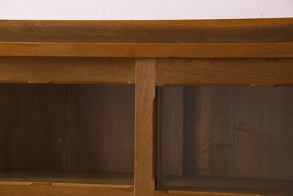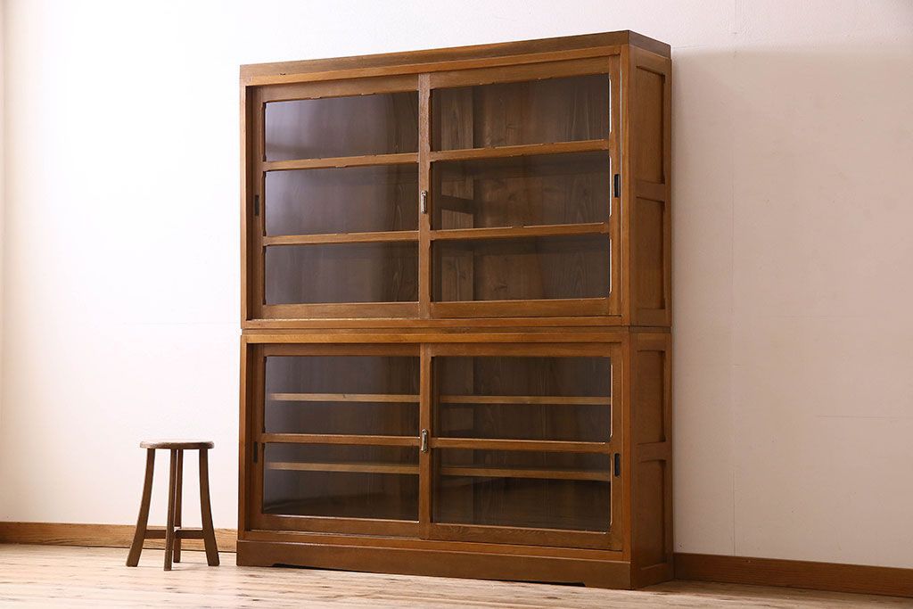 昭和レトロ 前面ナラ材 古い木の質感が味わい深い重ね戸棚(収納棚)です。