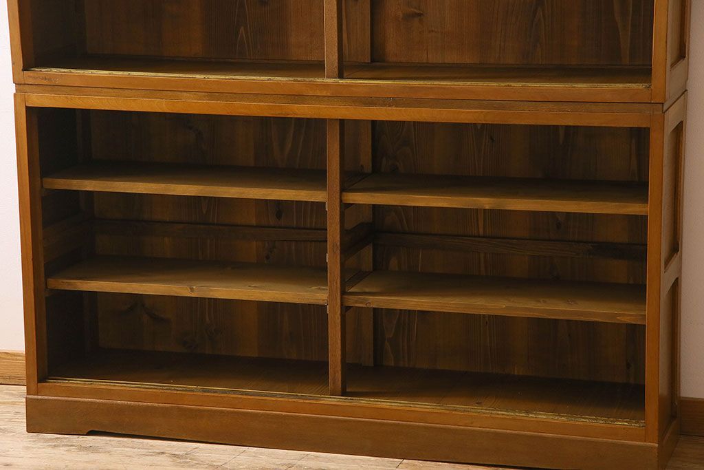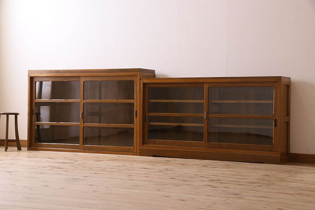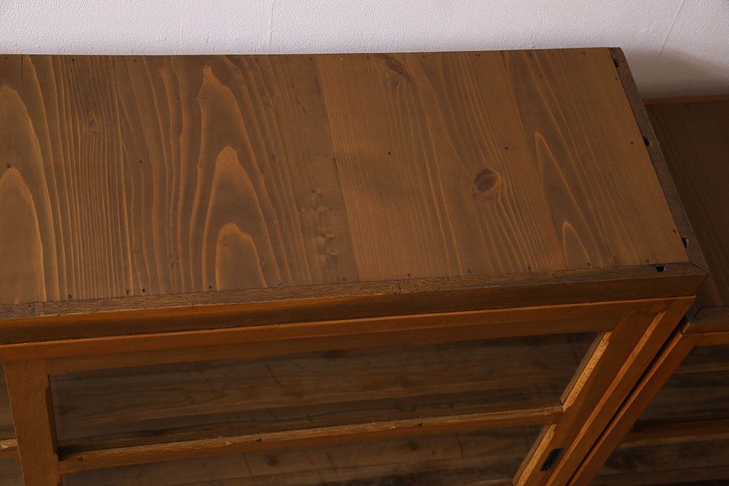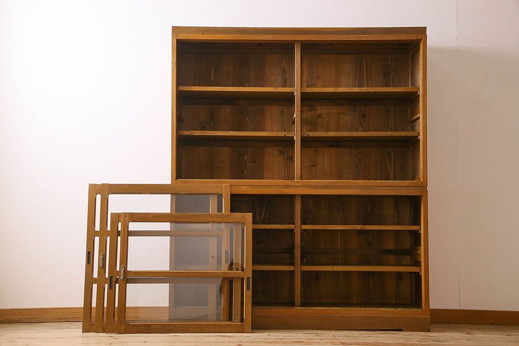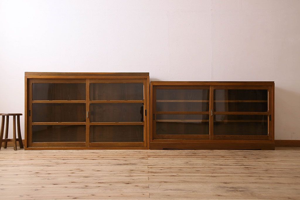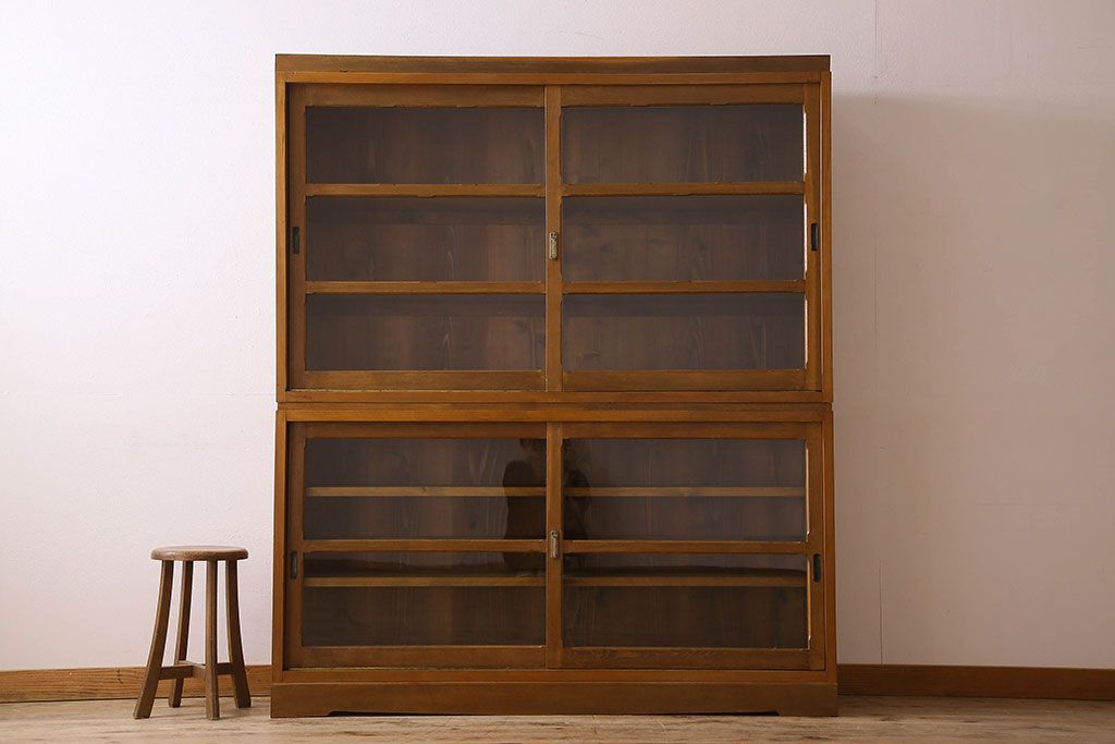 レトロ家具 昭和レトロ 前面ナラ材 古い木の質感が味わい深い重ね戸棚(収納棚)