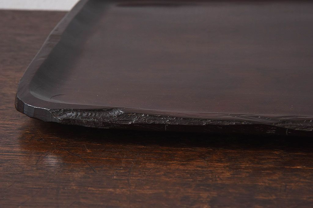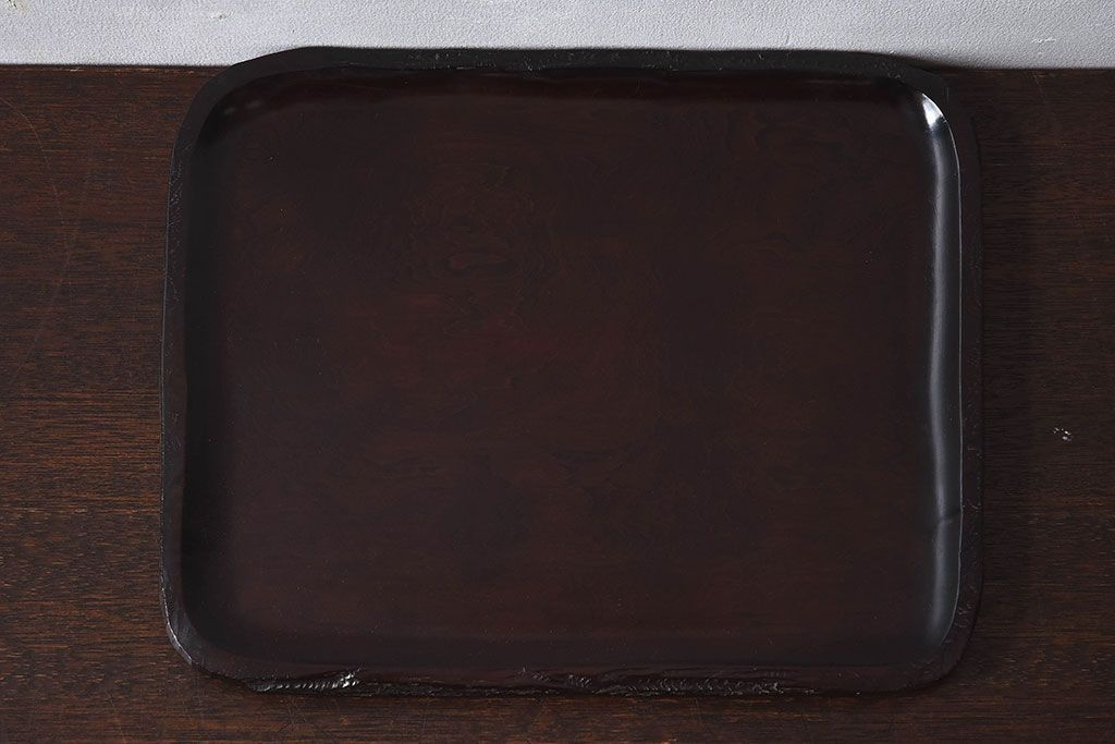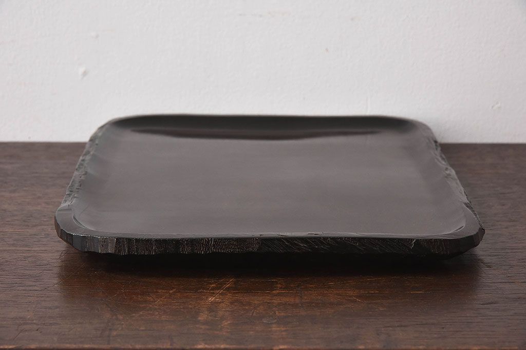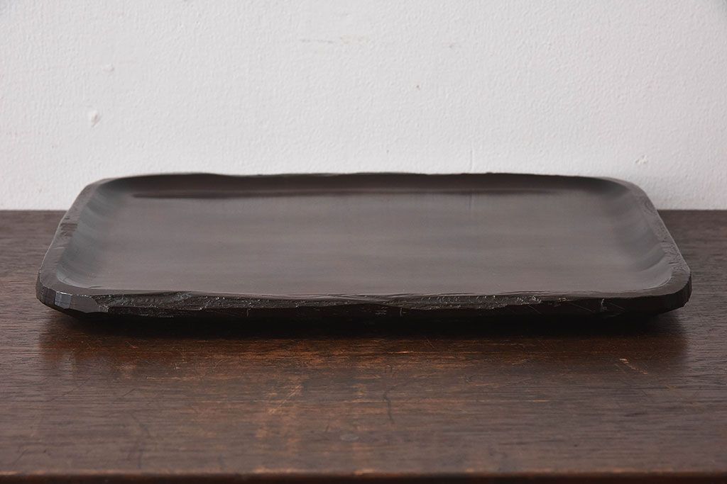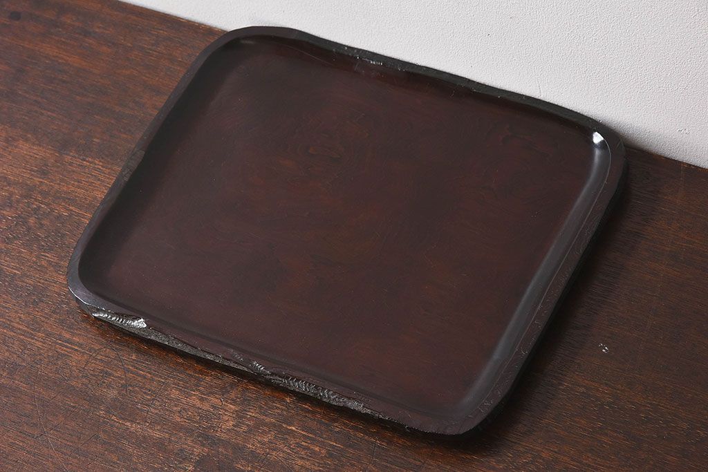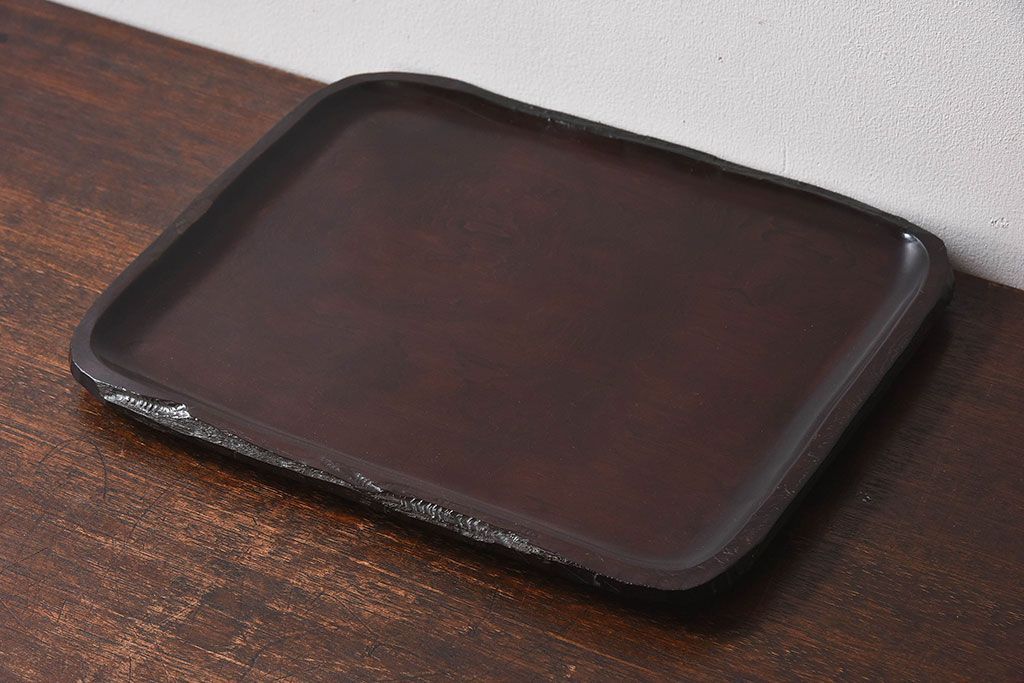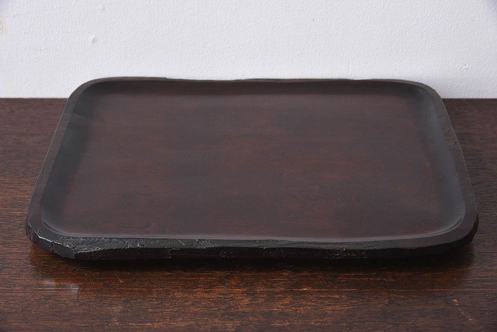 紫檀材 一枚板から刳り貫いた重厚感のあるお盆(トレー)