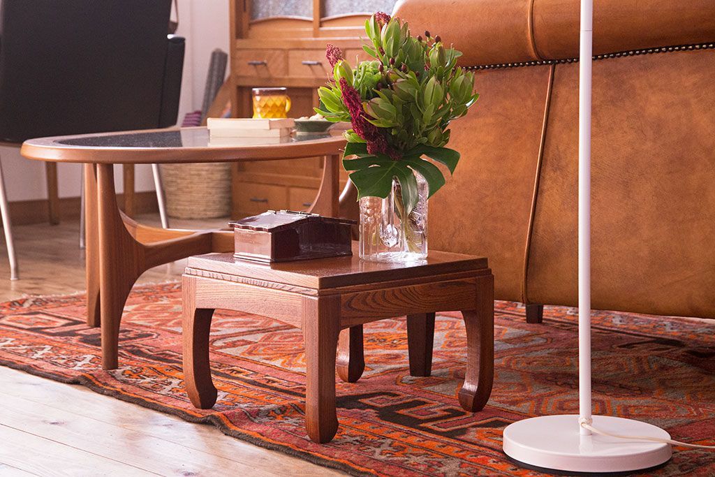 花台・飾り台 > アンティーク雑貨 大正〜昭和期 天板一枚板 総ケヤキ材の上品な豆座卓(花台、ちゃぶ台)