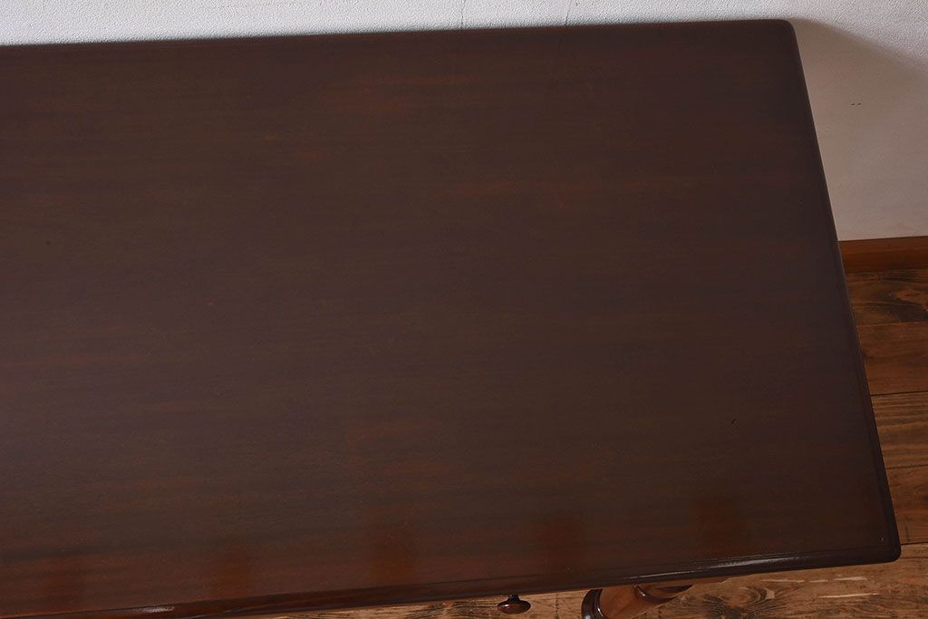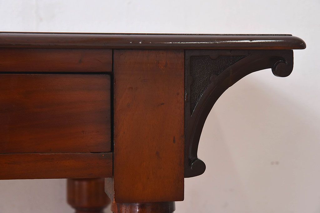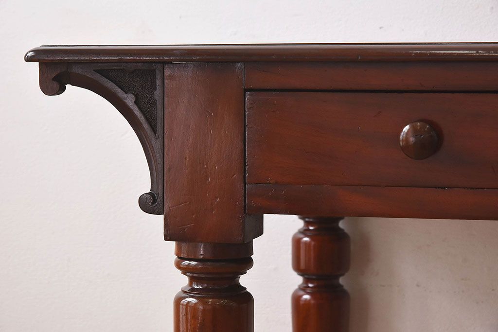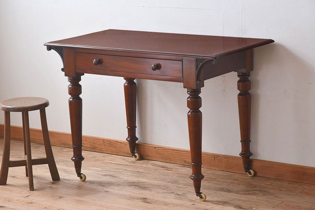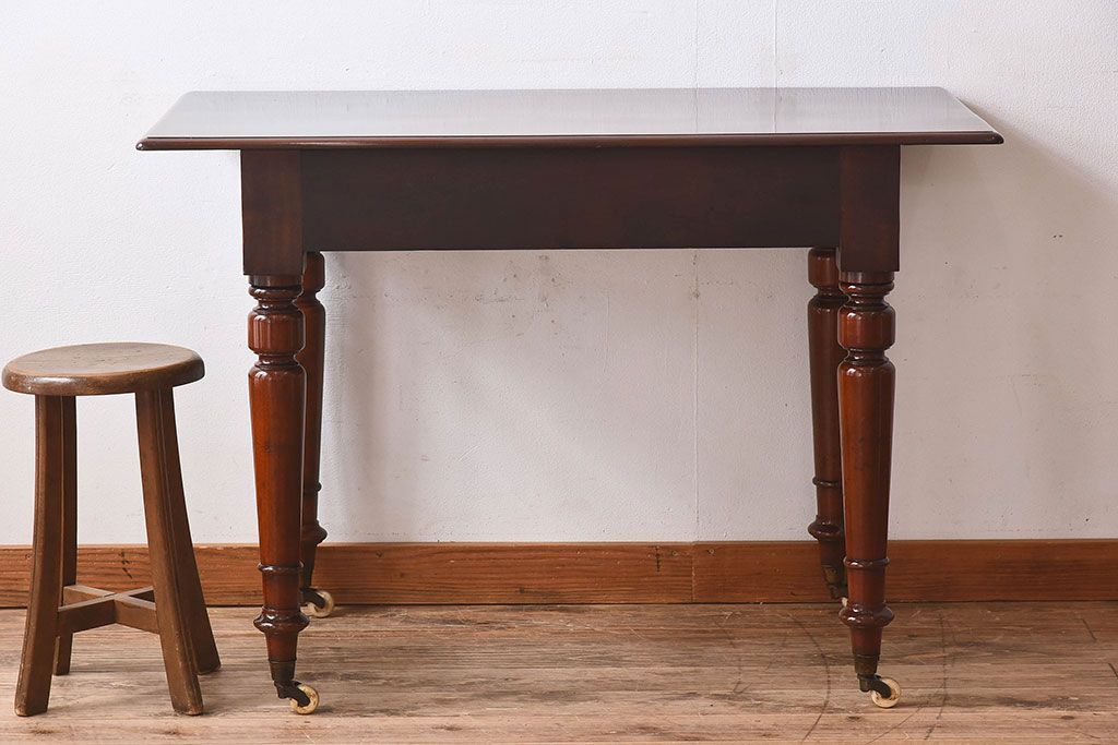 ラフジュ工房> デスク> 平机 > アンティーク家具 イギリスアンティーク マホガニー材 上品なデザインのキャスター付き平机(デスク)