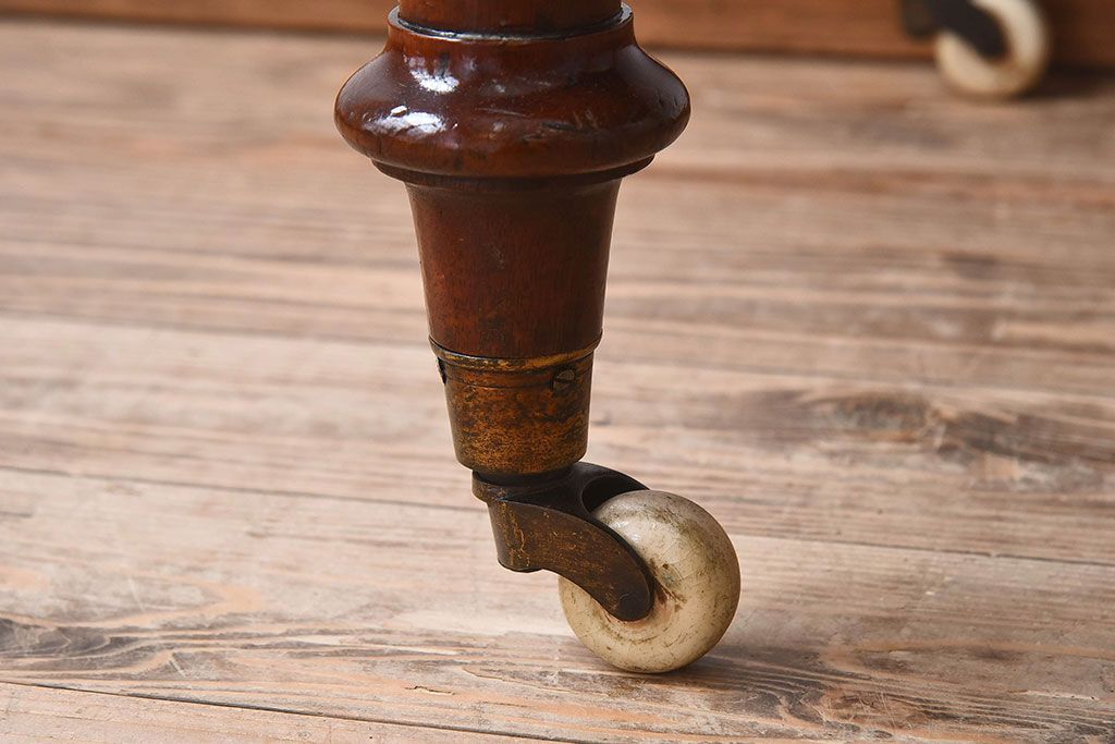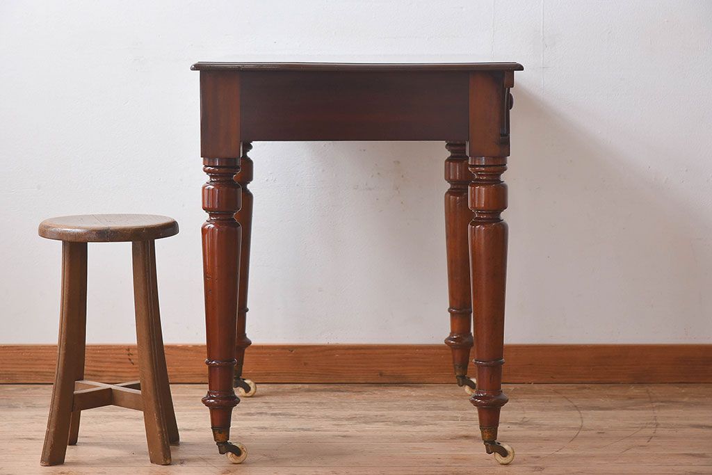 ラフジュ工房> テーブル> サイドテーブル > アンティーク家具 イギリスアンティーク マホガニー材 上品なデザインのキャスター付き平机(デスク)
