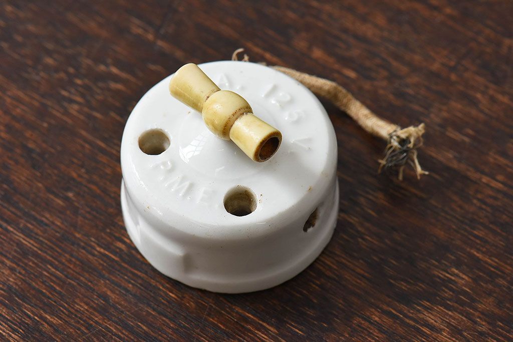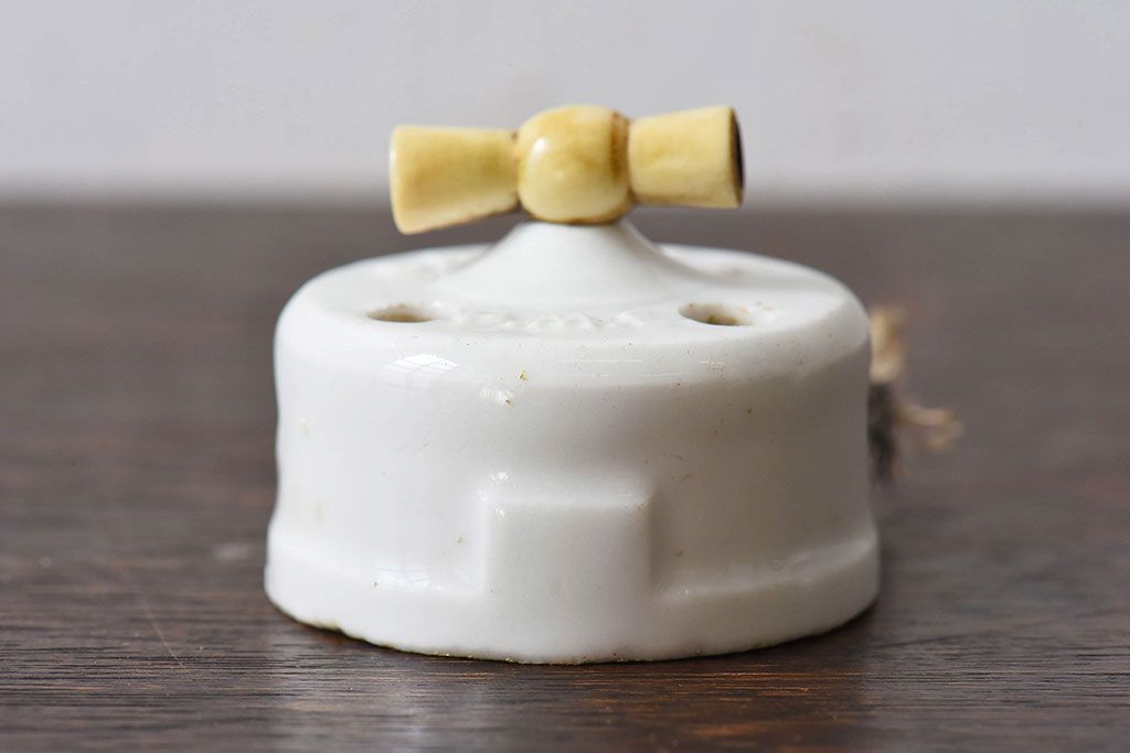 アンティーク雑貨 陶器製 珍しい回転式のアンティークスイッチ