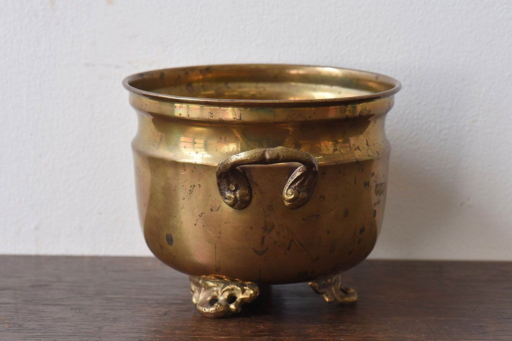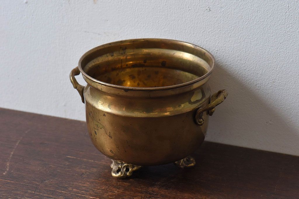 アンティーク雑貨 アメリカビンテージ 真鍮 古い質感が味わい深い小振りなバケツ