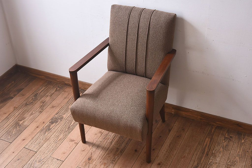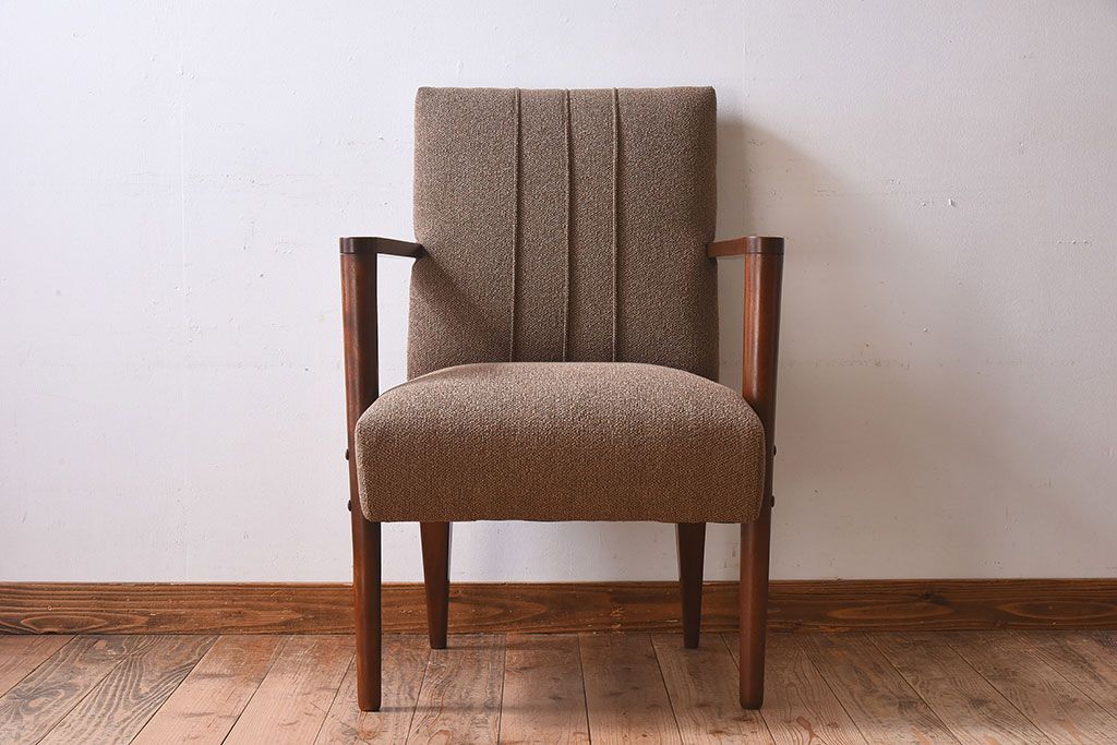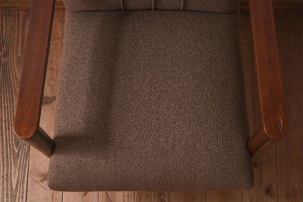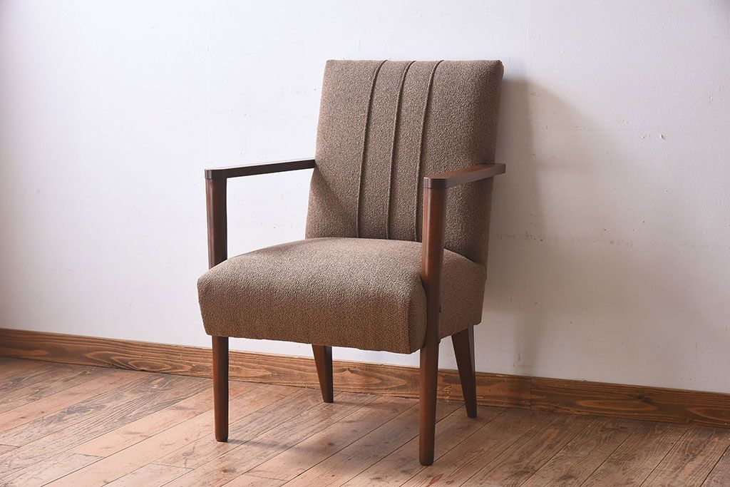 ヴィンテージ家具 和製ビンテージ 厚みのあるクッションが魅力的なサロンチェア(アームチェア、一人掛けソファ)(1)