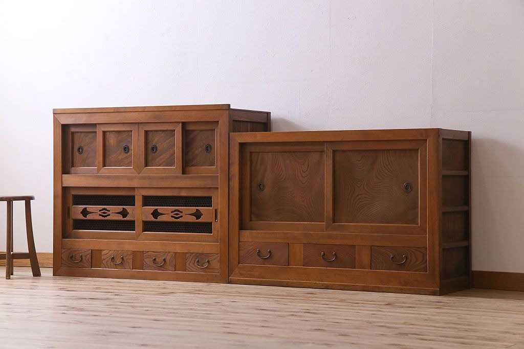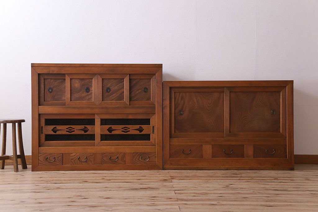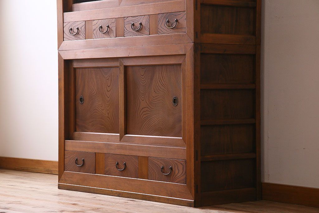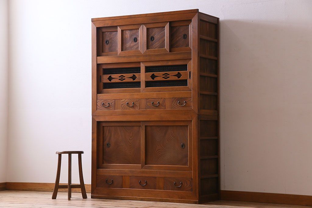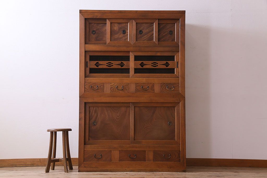 ラフジュ工房> 和箪笥 > アンティーク家具 和製アンティーク 上質で風情のある四尺水屋箪笥(食器棚、収納箪笥)