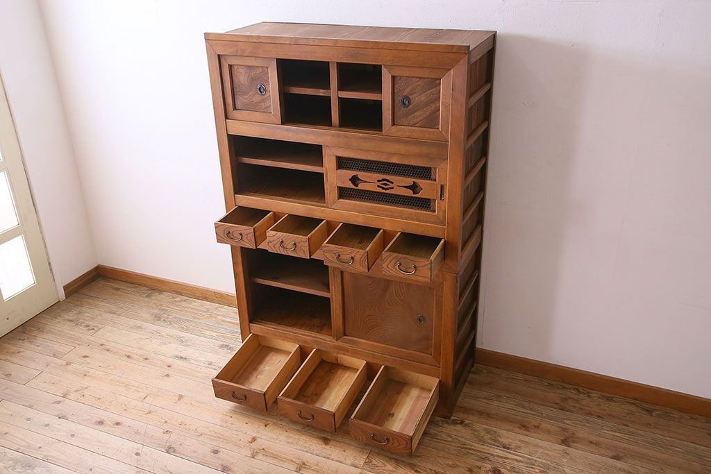 ラフジュ工房> 和箪笥> 水屋箪笥 > アンティーク家具 和製アンティーク 上質で風情のある四尺水屋箪笥(食器棚、収納箪笥)