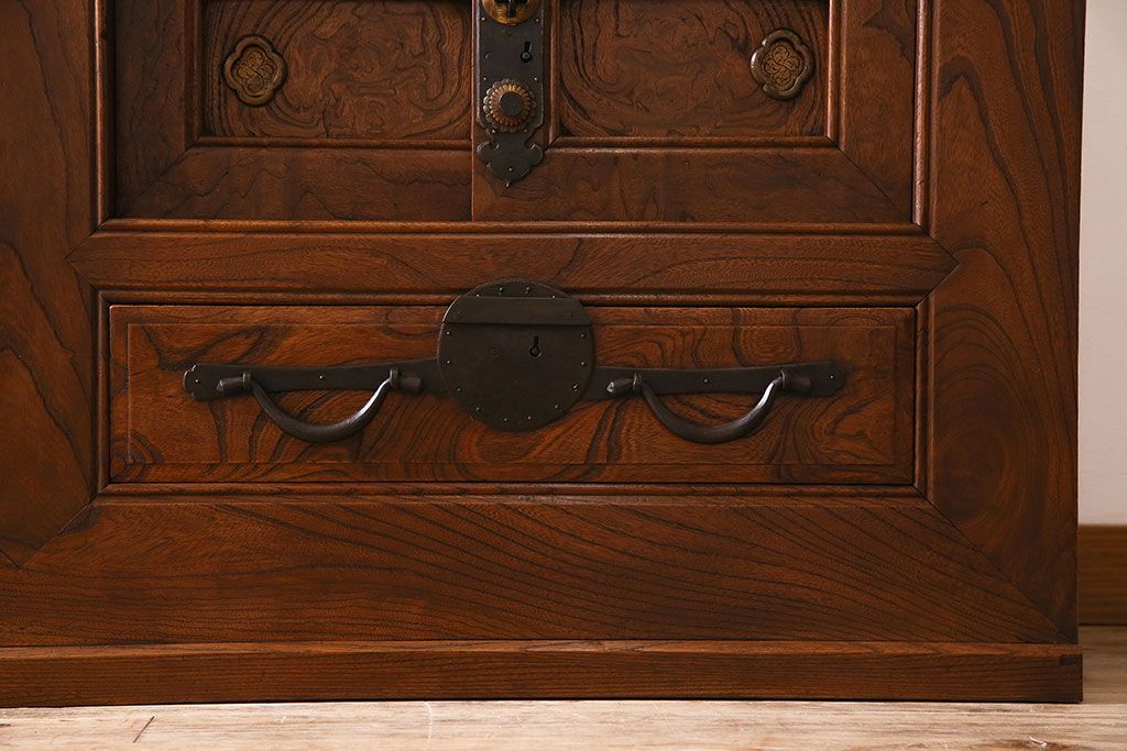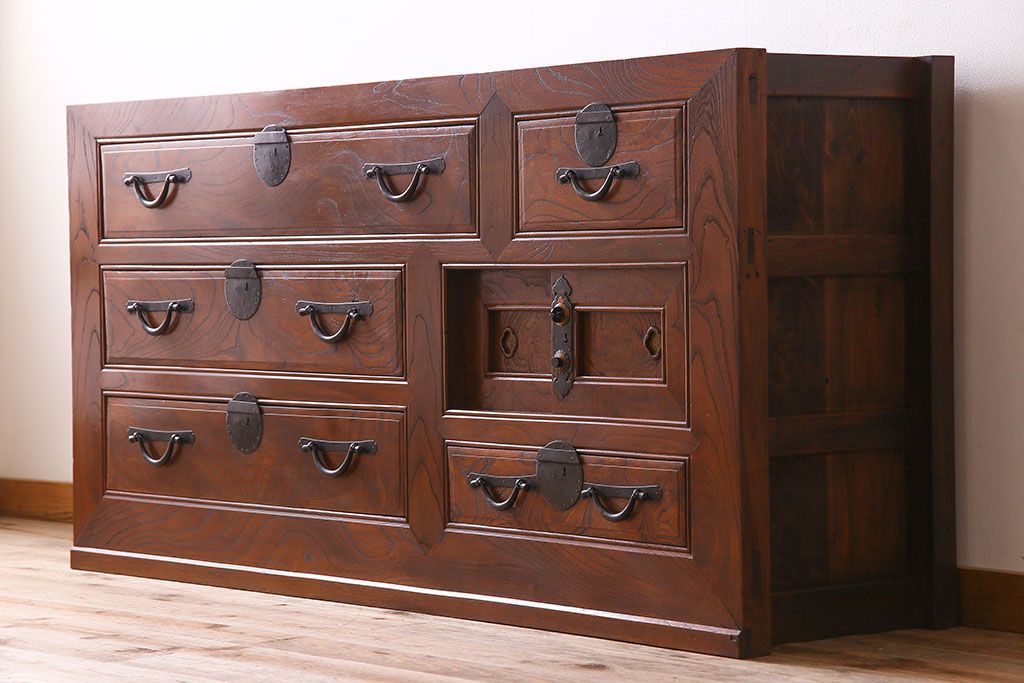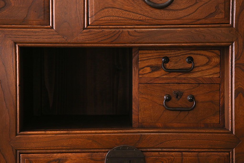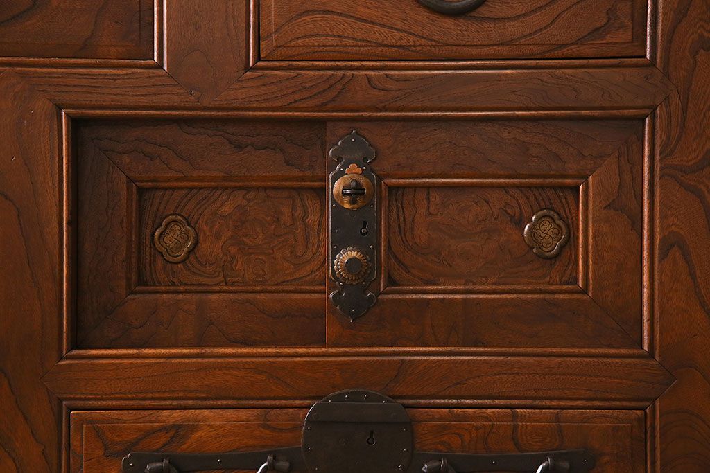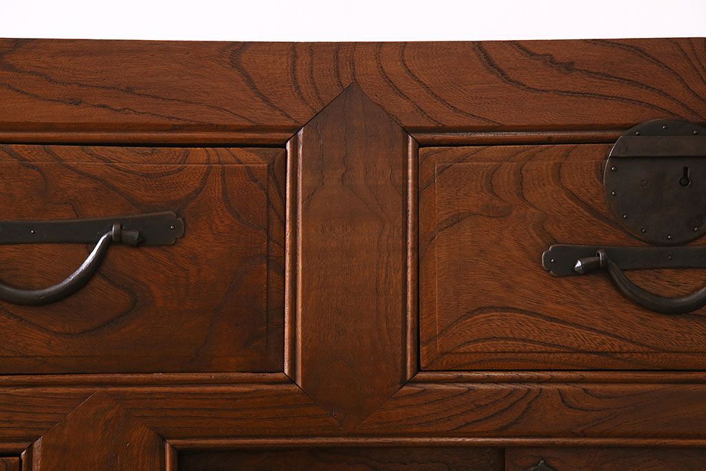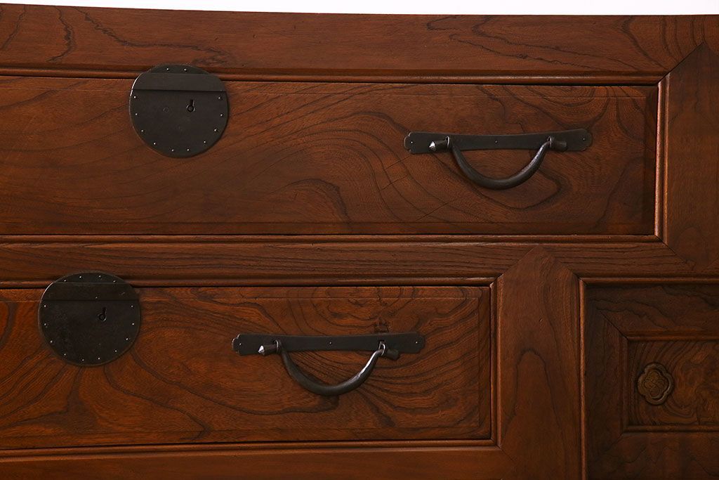 ラフジュ工房> 和箪笥 > アンティーク家具 和製アンティーク 上手物!前面総欅材の重厚な収納箪笥(水屋箪笥、サイドボード、サイドキャビネット)