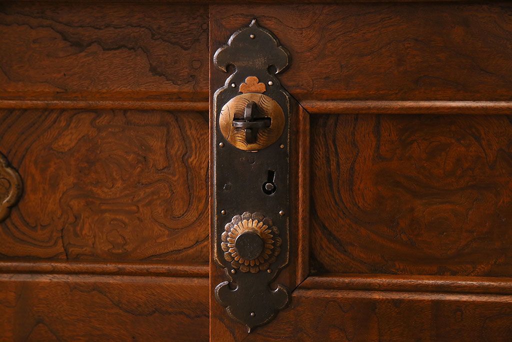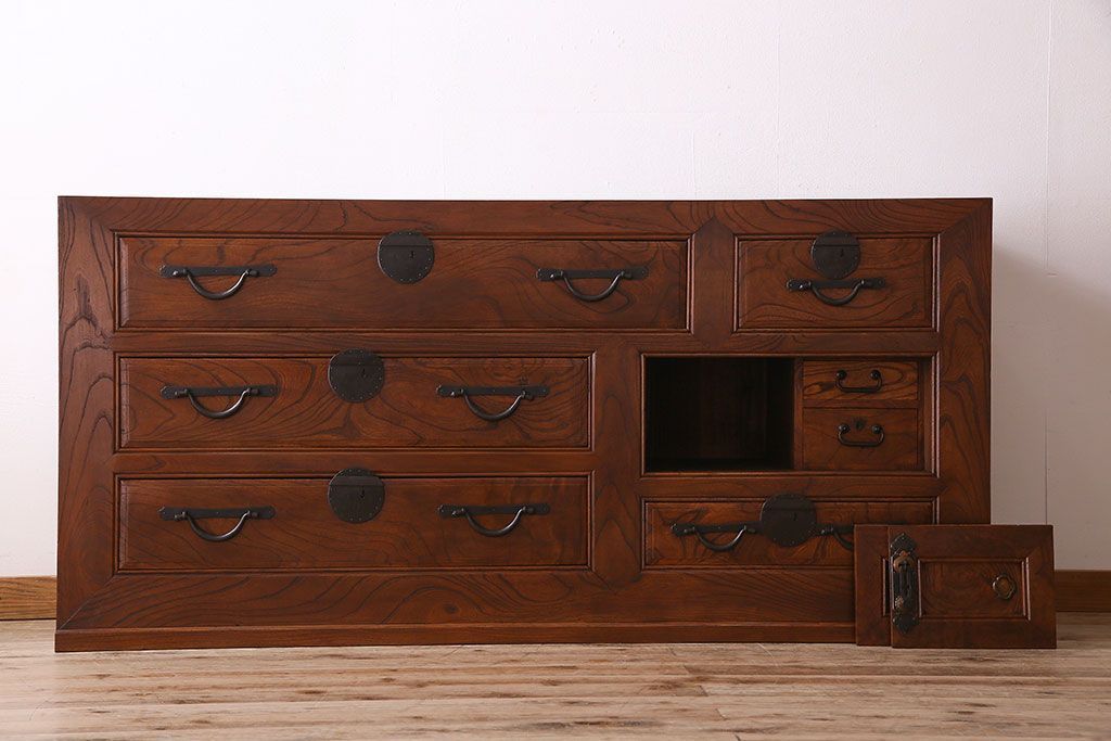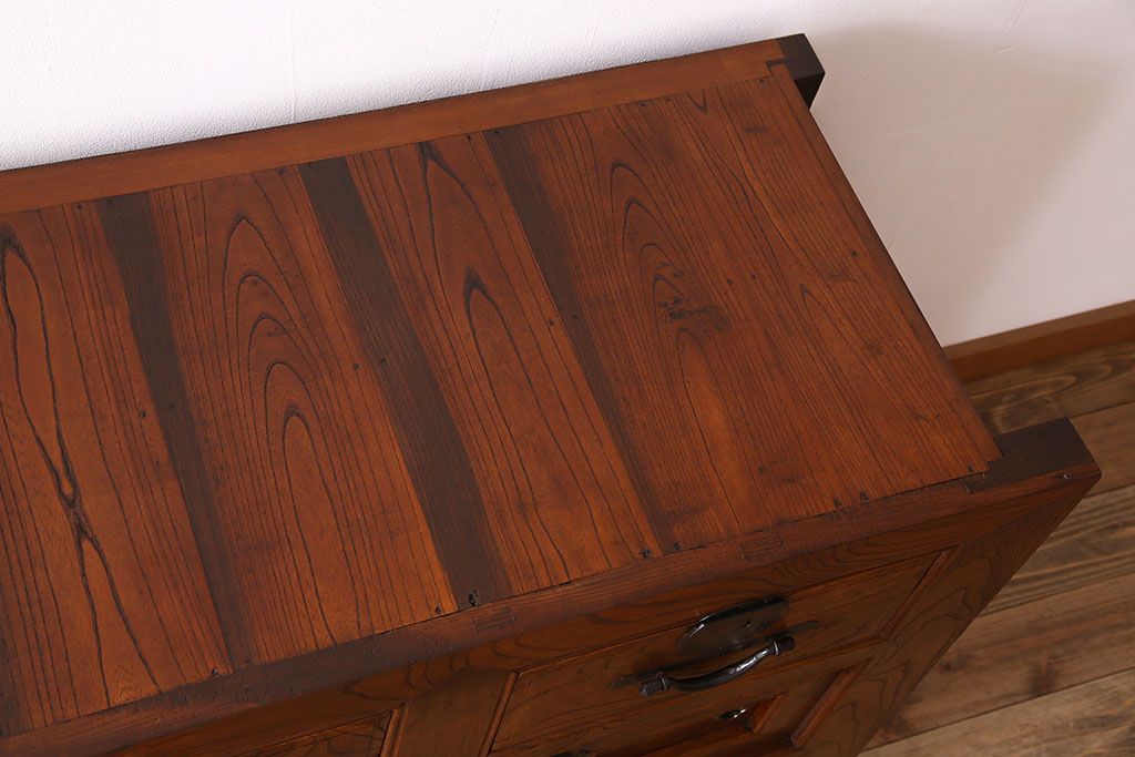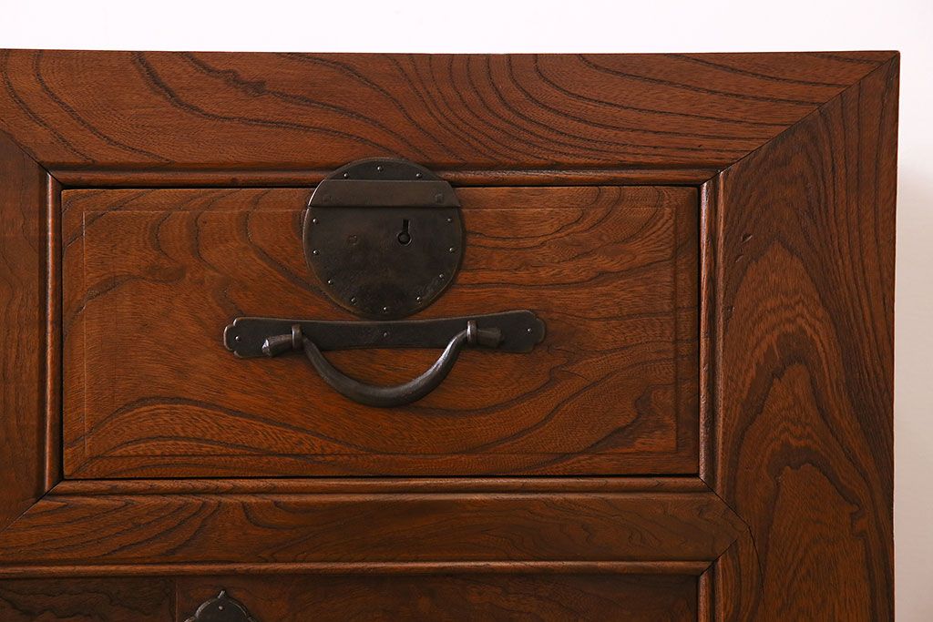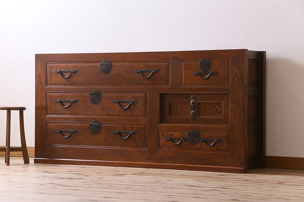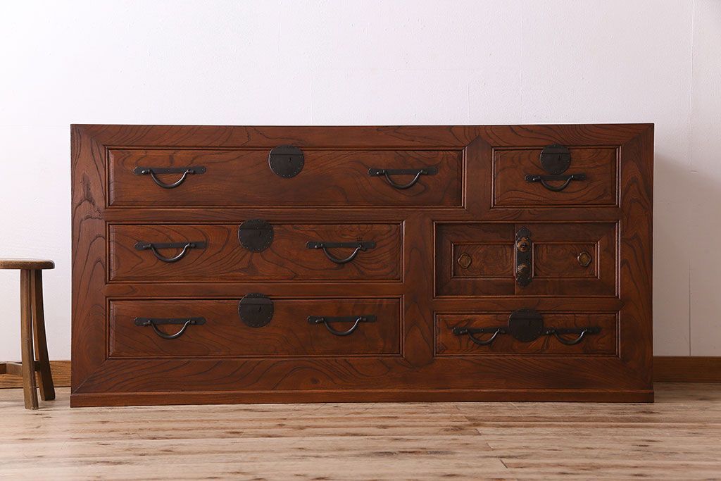 ラフジュ工房> 和箪笥 > アンティーク家具 和製アンティーク 上手物!前面総欅材の重厚な収納箪笥(水屋箪笥、サイドボード、サイドキャビネット)