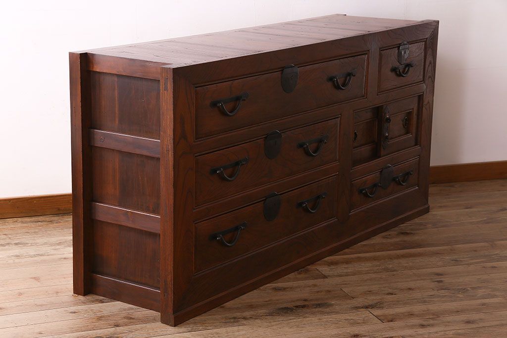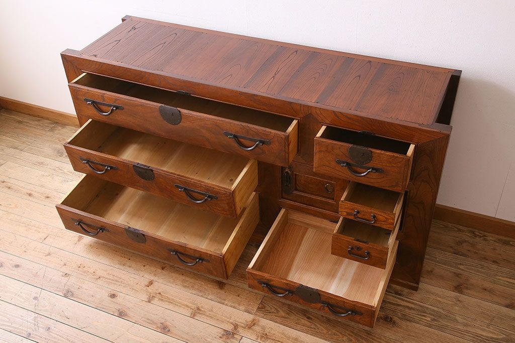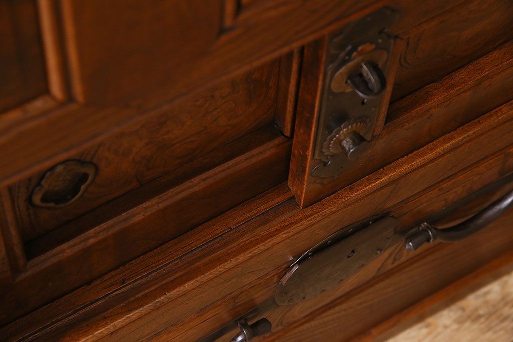 アンティーク家具 和製アンティーク 上手物!前面総欅材の重厚な収納箪笥(水屋箪笥、サイドボード、サイドキャビネット)