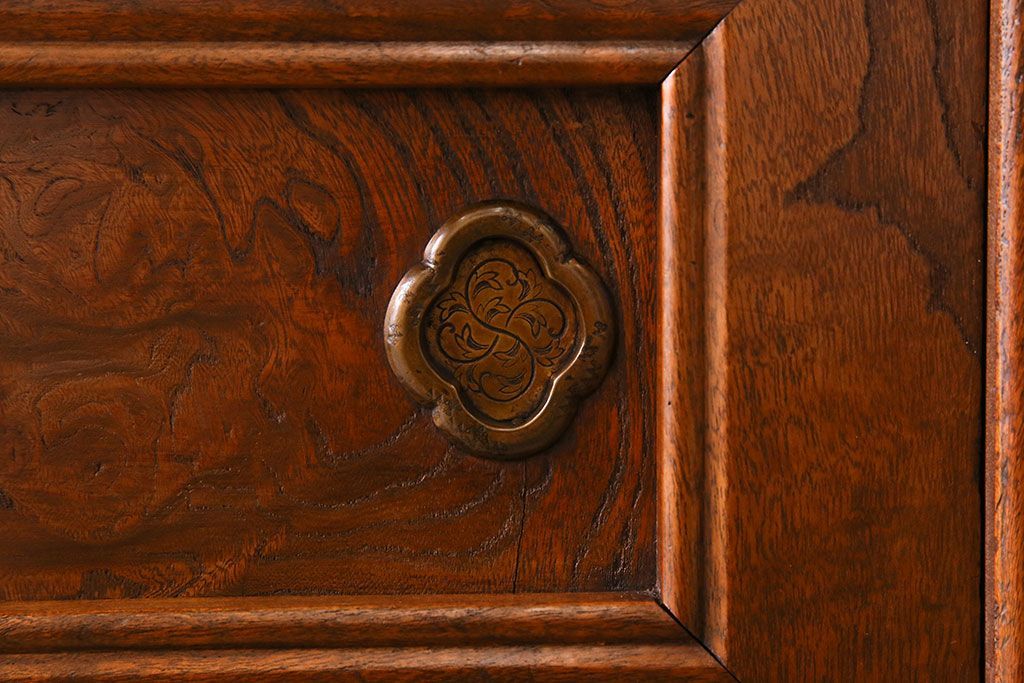 ラフジュ工房> キャビネット・戸棚> サイドキャビネット > アンティーク家具 和製アンティーク 上手物!前面総欅材の重厚な収納箪笥(水屋箪笥、サイドボード、サイドキャビネット)