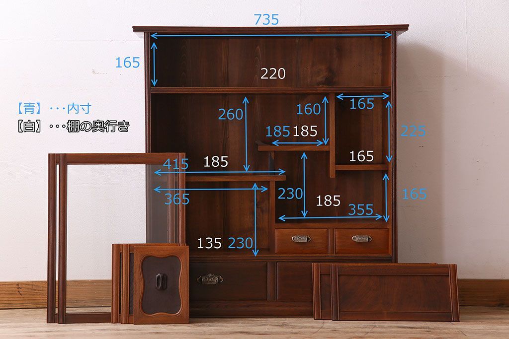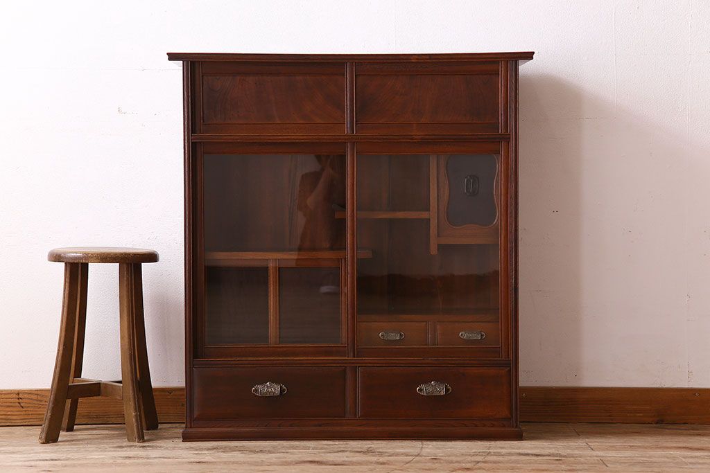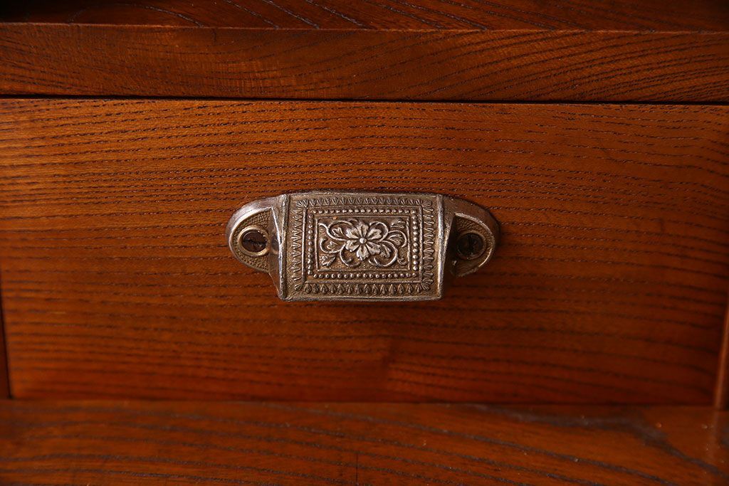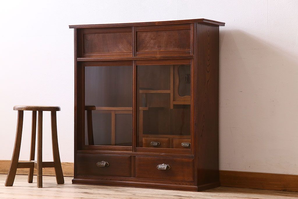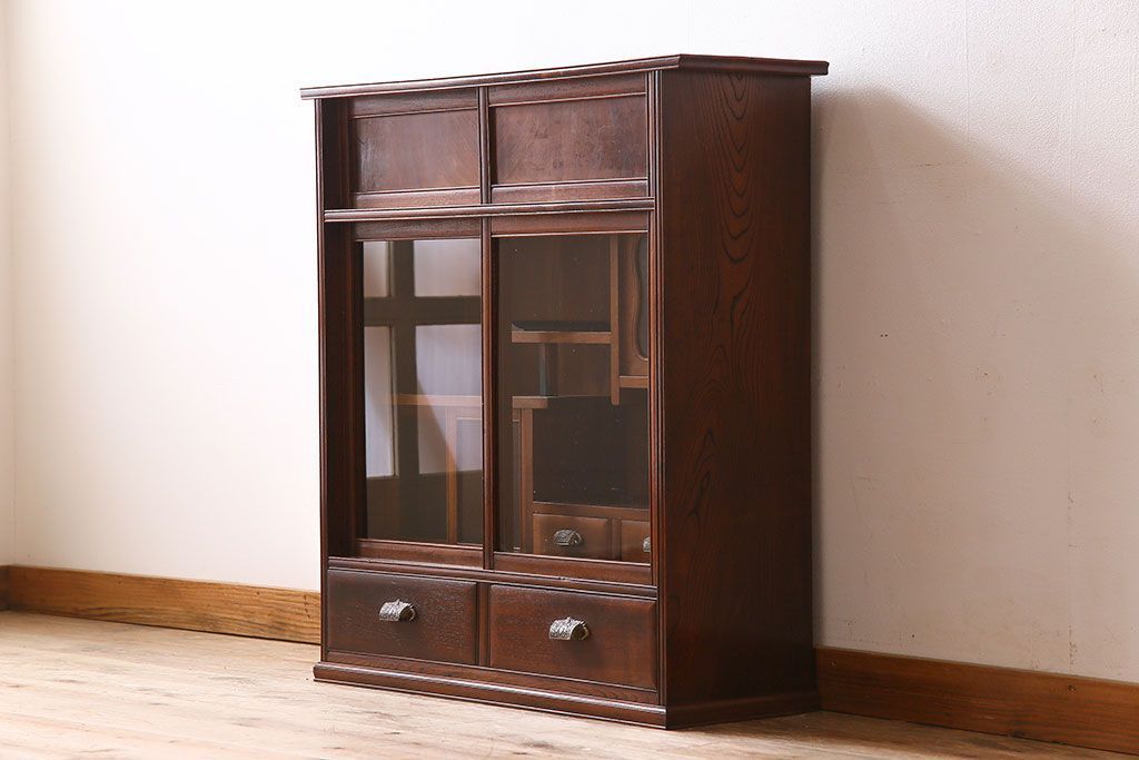 和製アンティーク 三方欅材の上質な作りこみが味わえる茶箪笥(茶棚、収納棚)です。