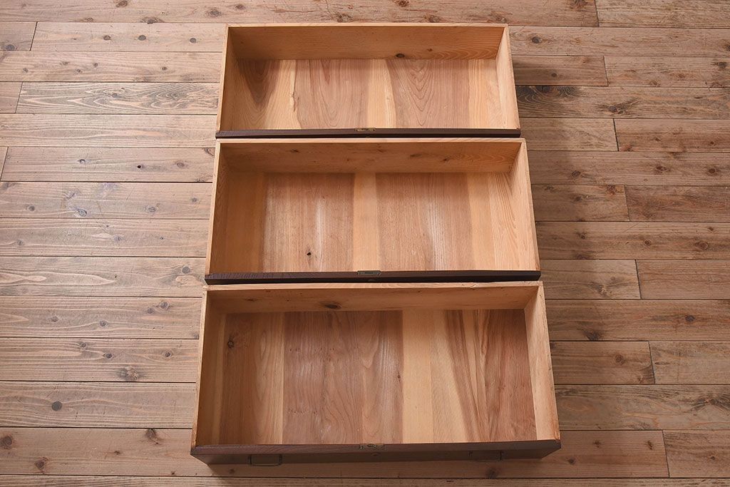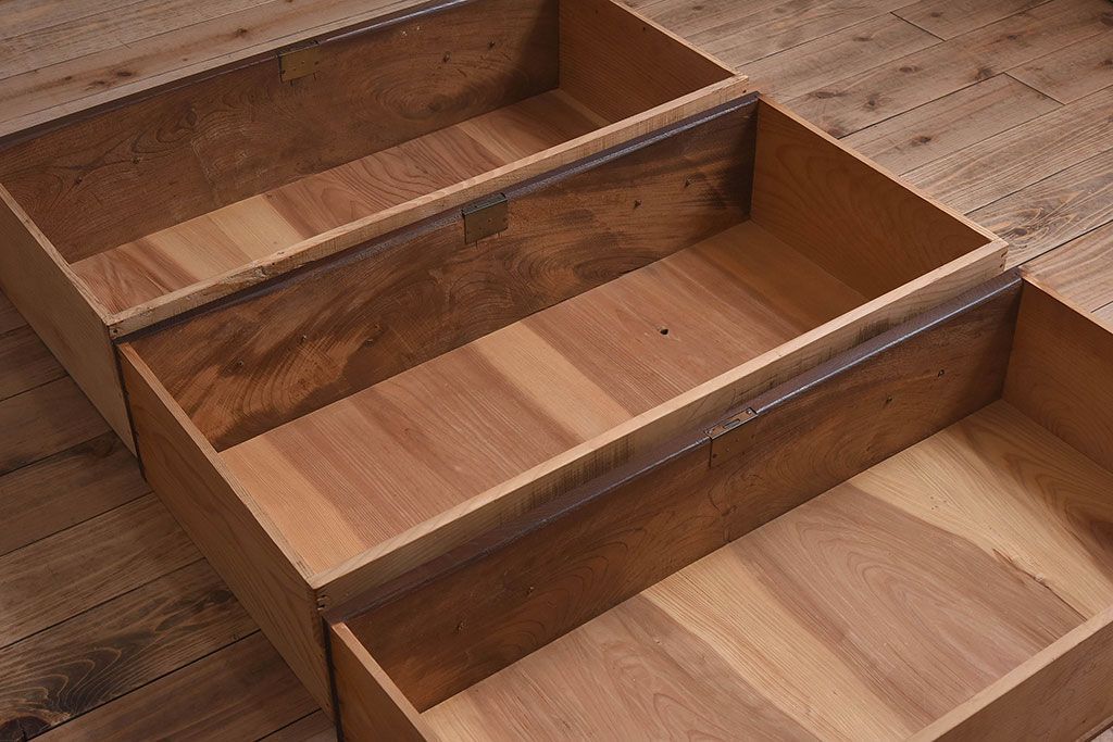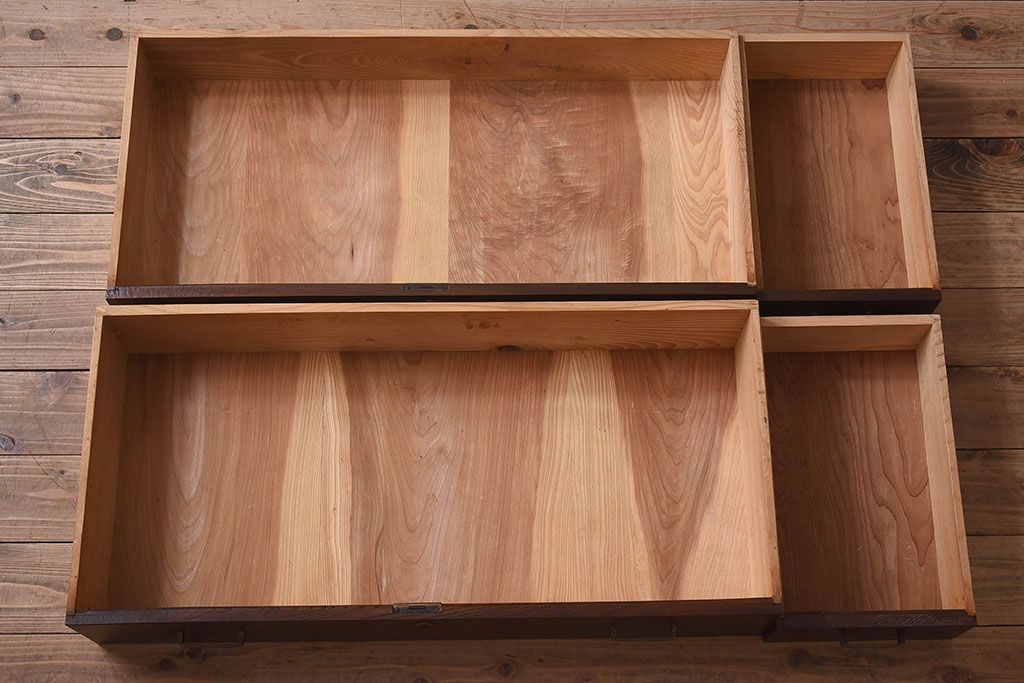 深さ違いの大きな引き出しまでと、収納性に大変優れたお品です。