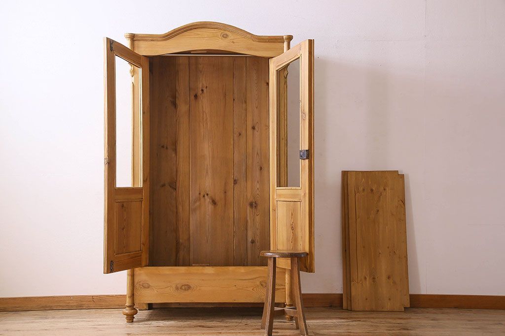 アンティーク家具 フランスアンティーク パイン材の温もり溢れるキャビネット(ワードローブ、収納棚、戸棚)