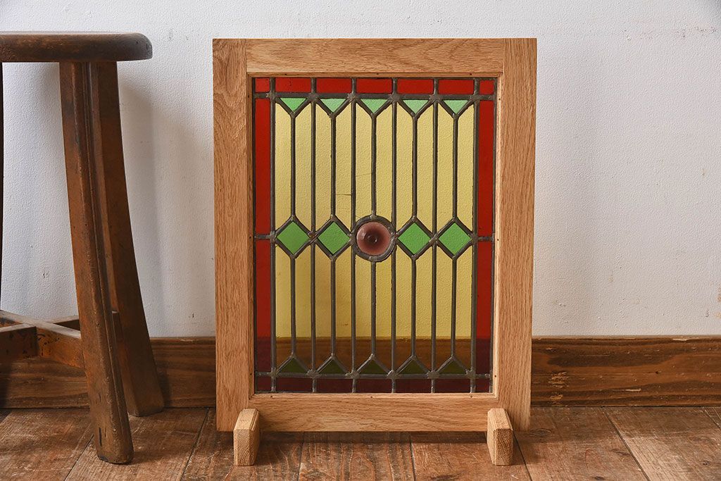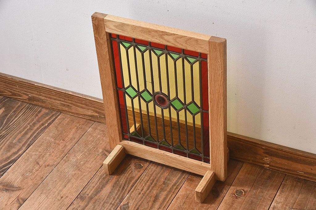 アンティーク雑貨 イギリスアンティーク 色鮮やかなステンドグラスが素敵な衝立(パーティション)