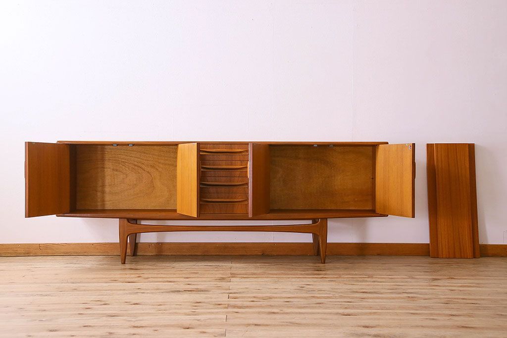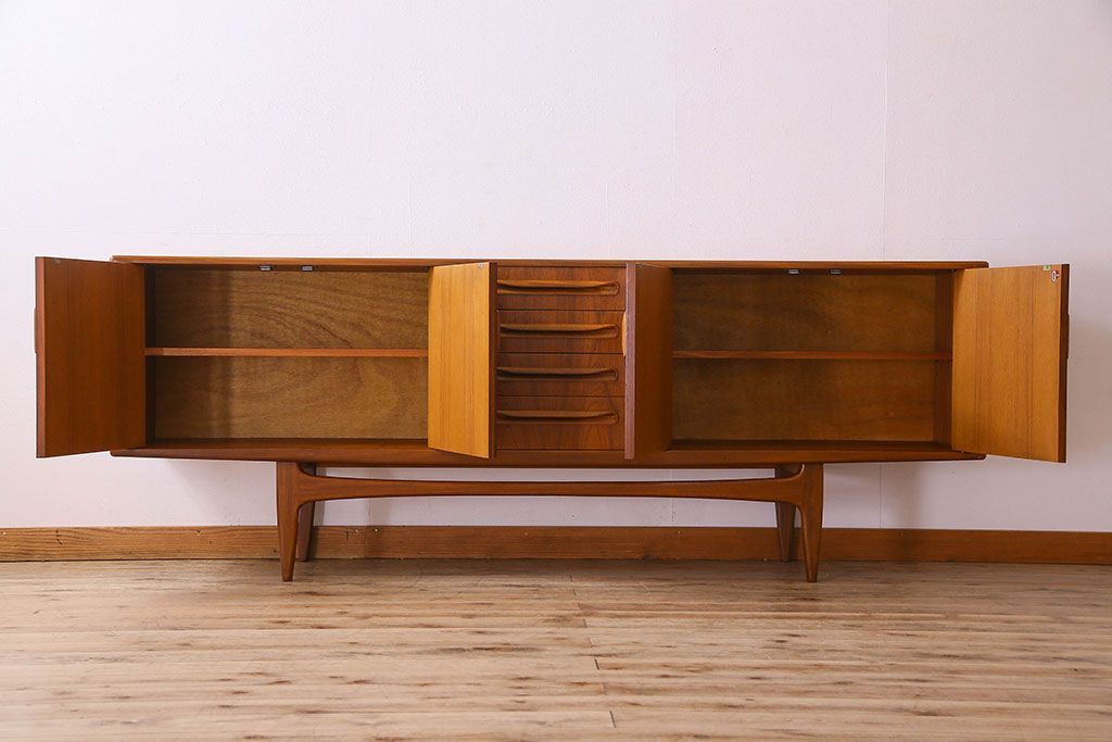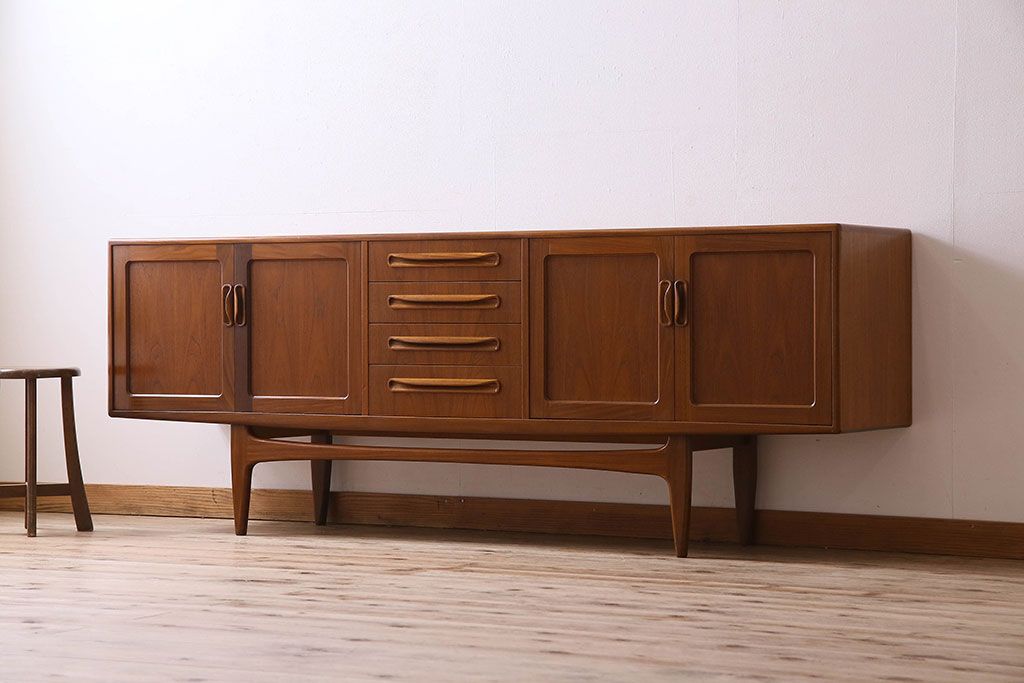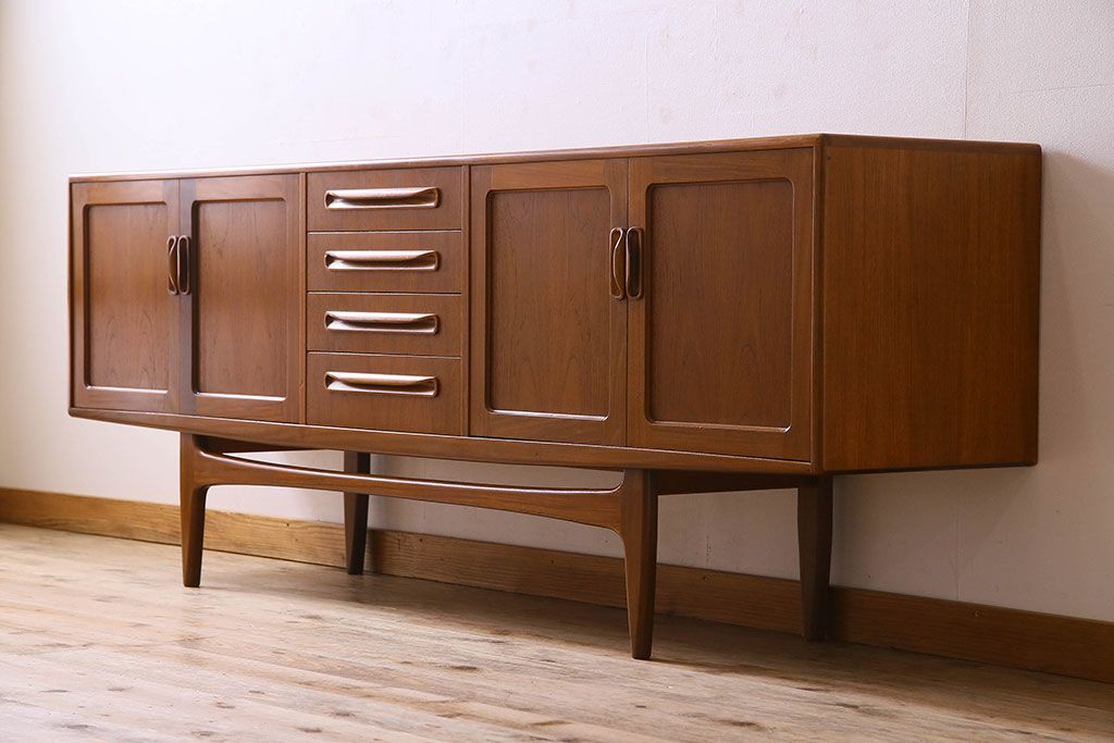 北欧スタイル家具 チーク材製 G-plan(ジープラン) スタイリッシュなデザインのサイドボード(サイドキャビネット)