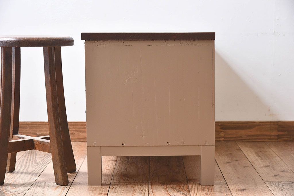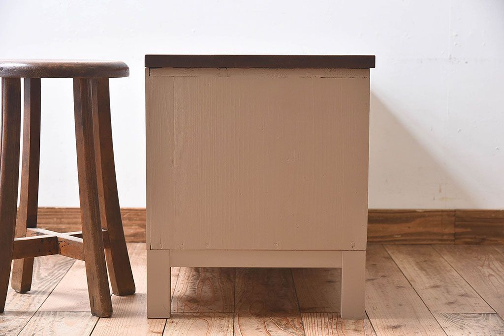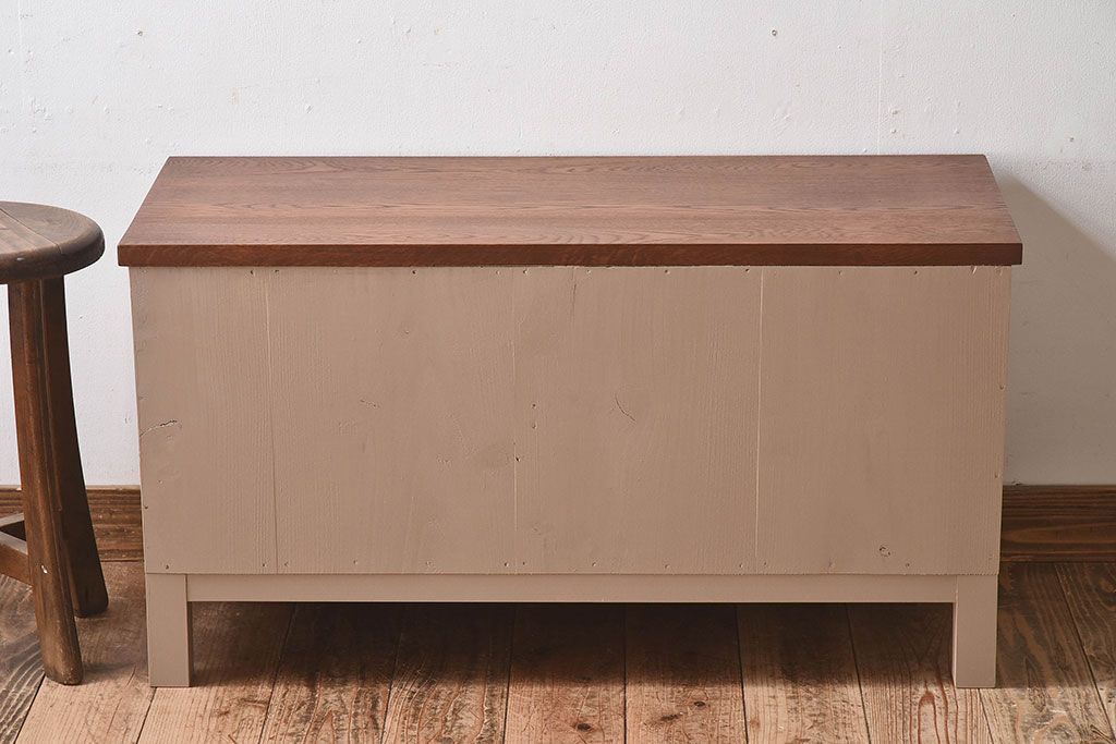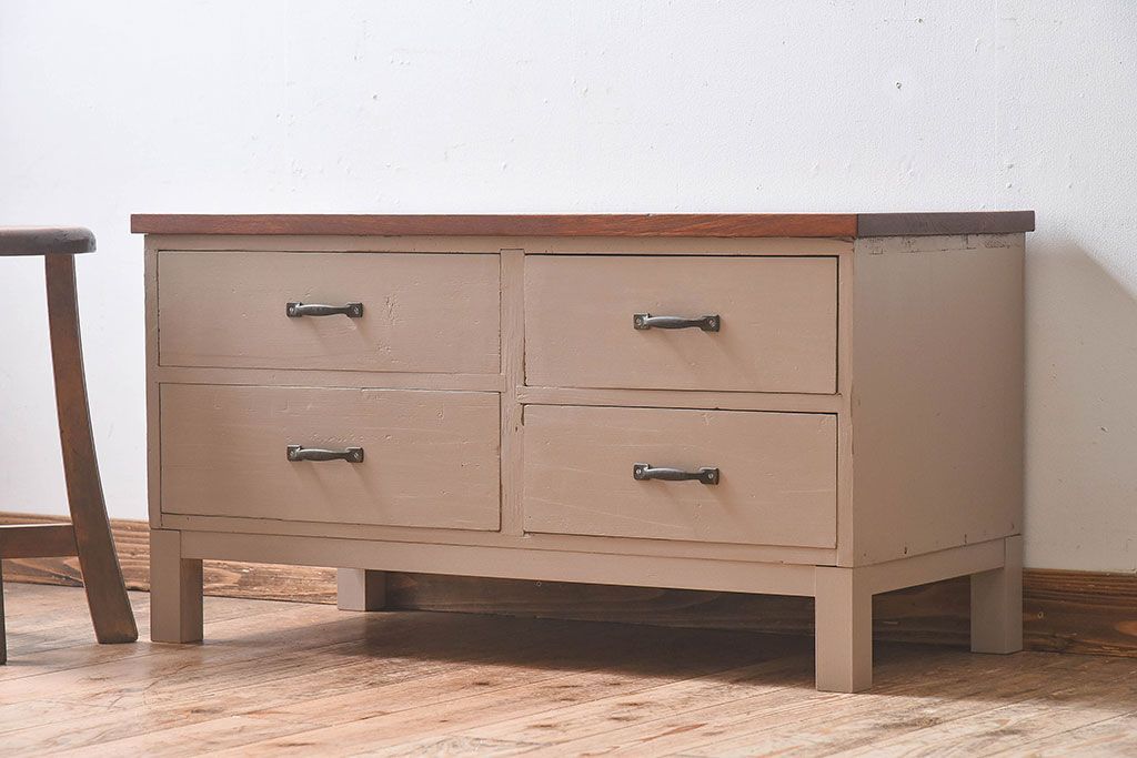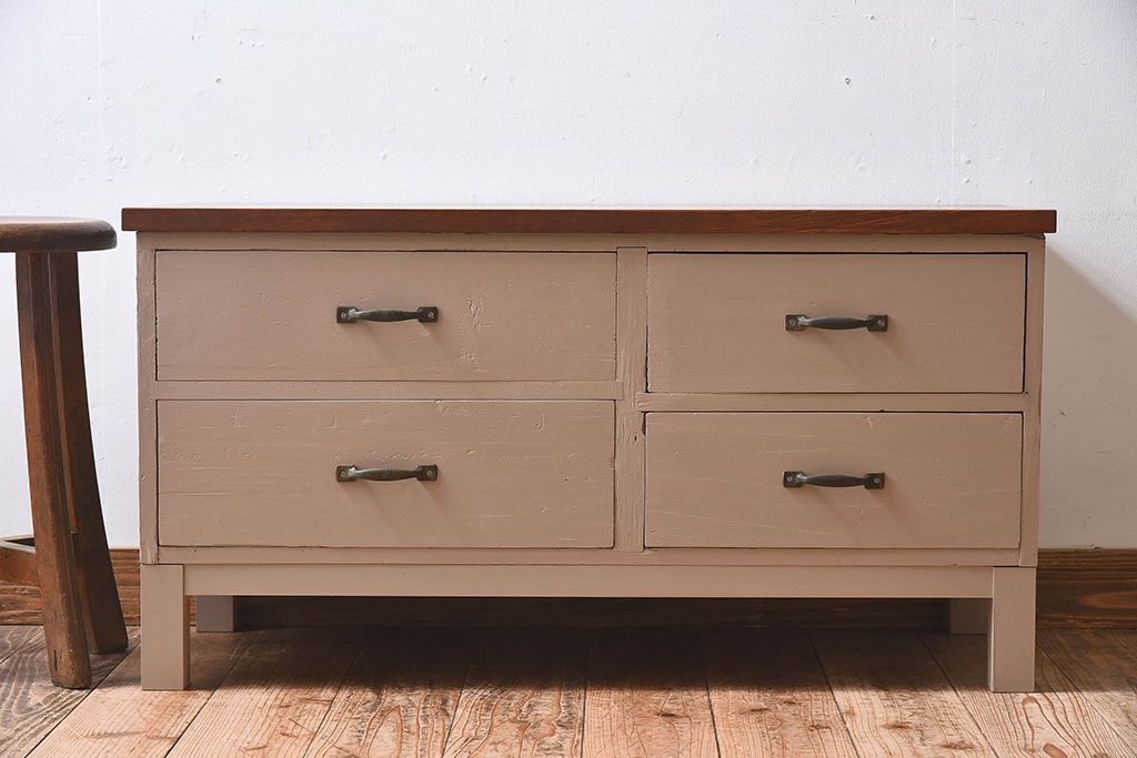アンティーク家具 ペイントカラーと木のコントラストが素敵なローチェスト(ローボード)
