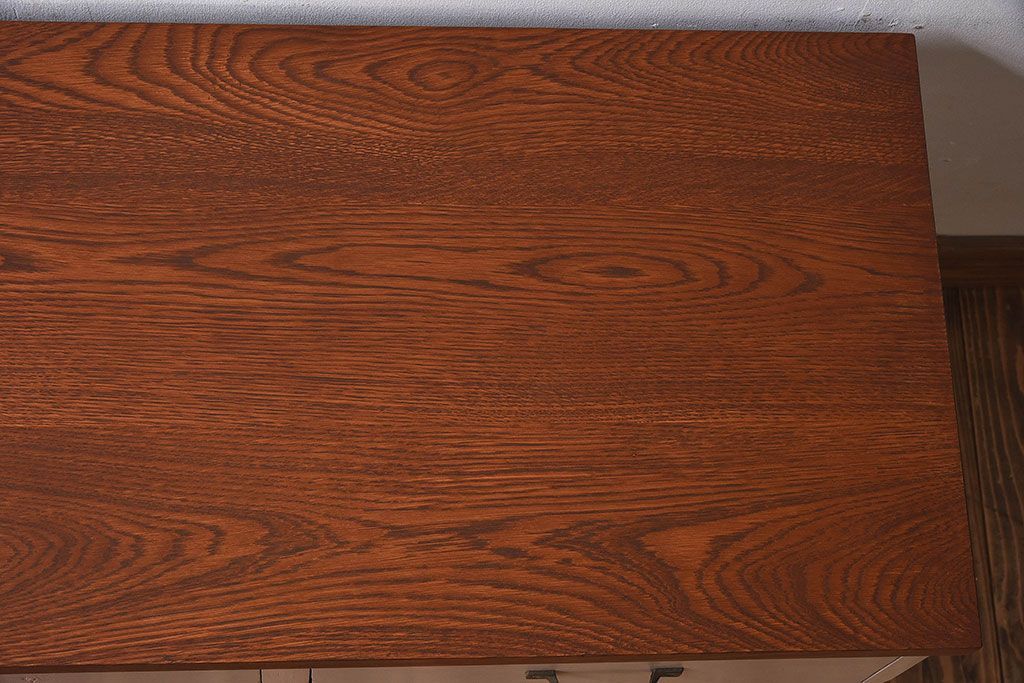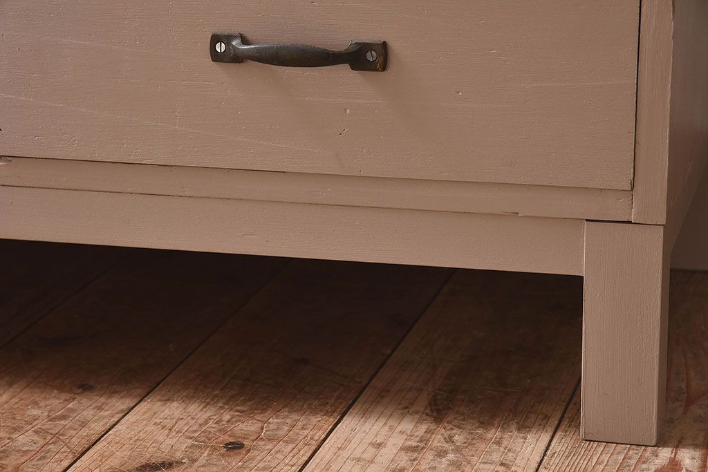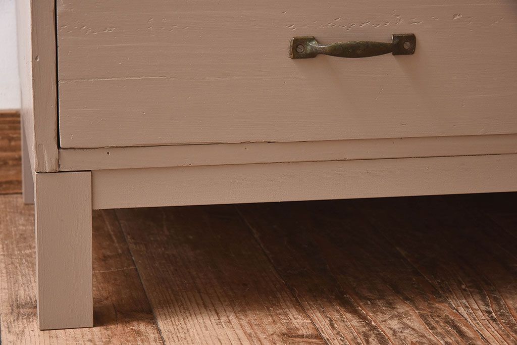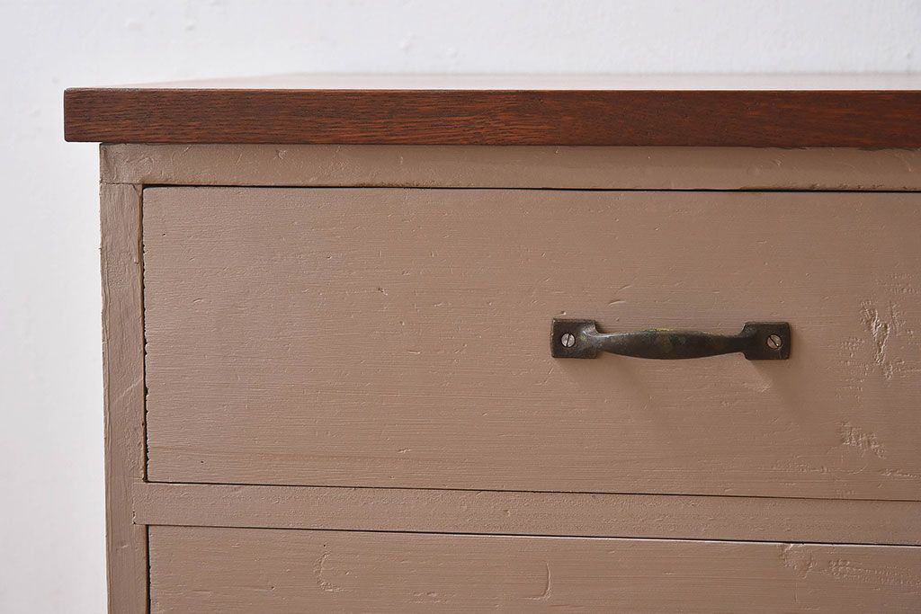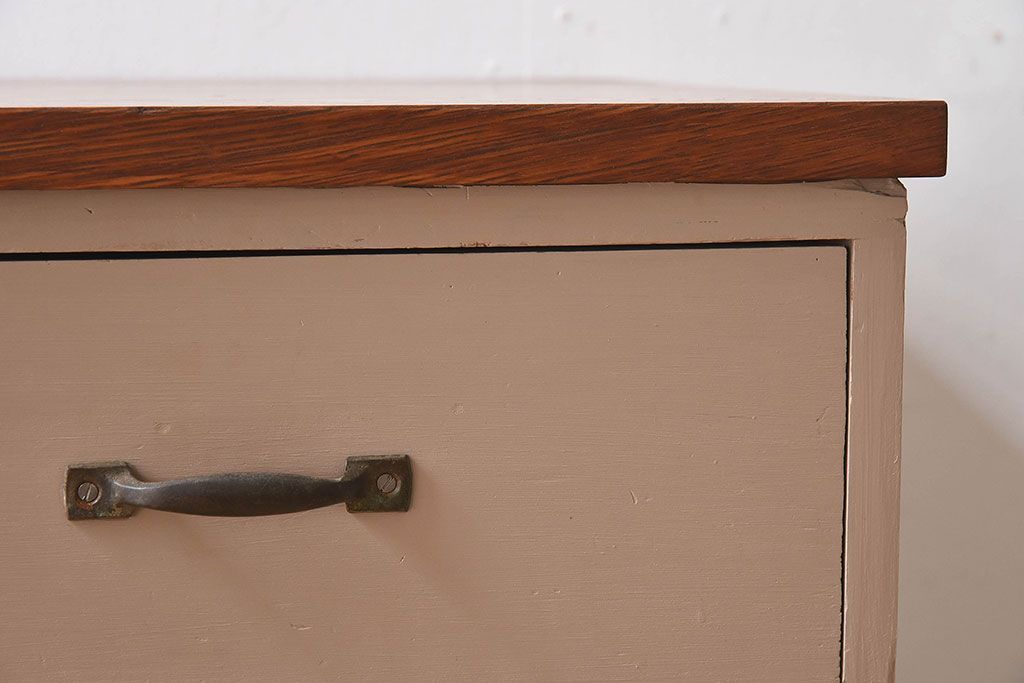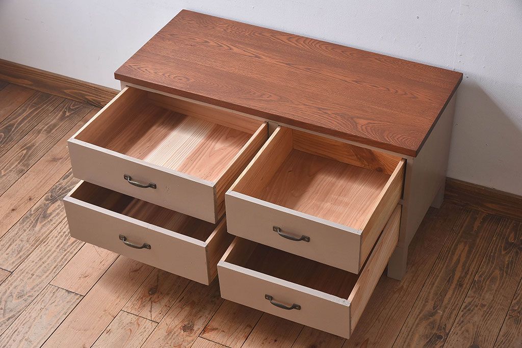アンティーク家具 ペイントカラーと木のコントラストが素敵なローチェスト(ローボード)