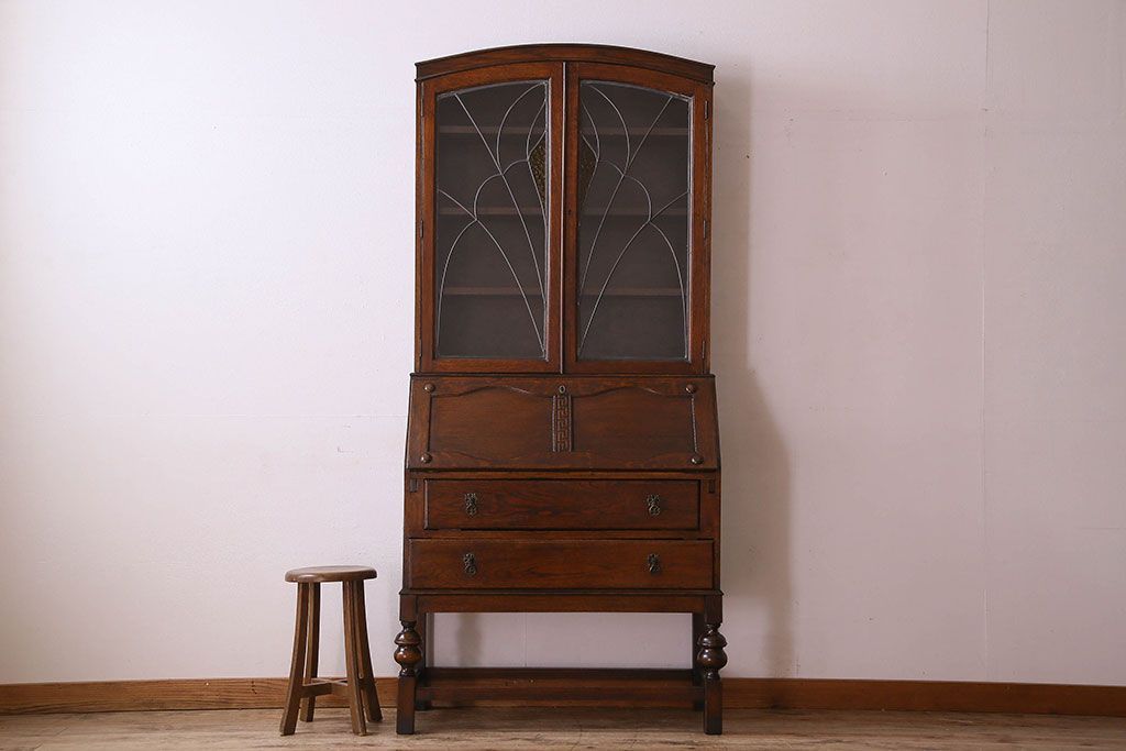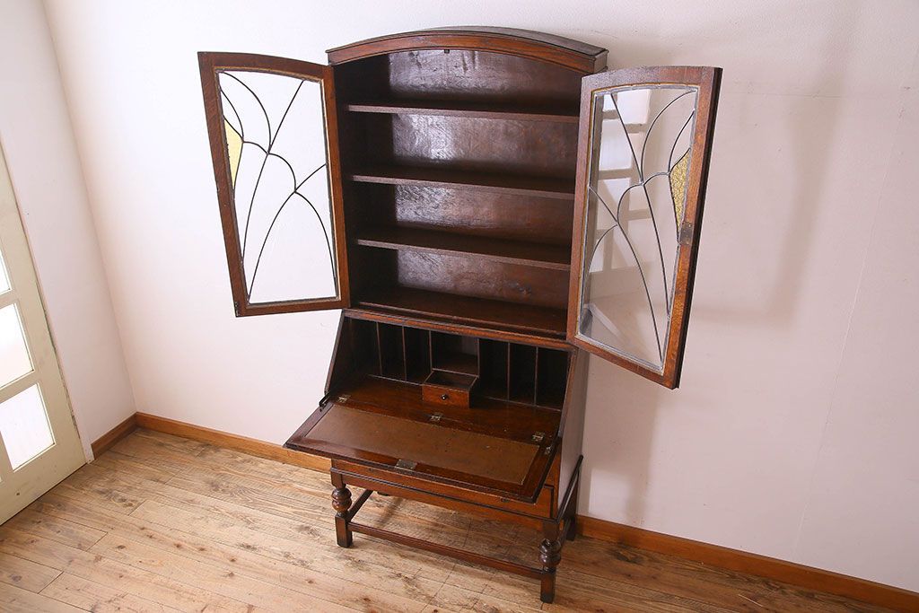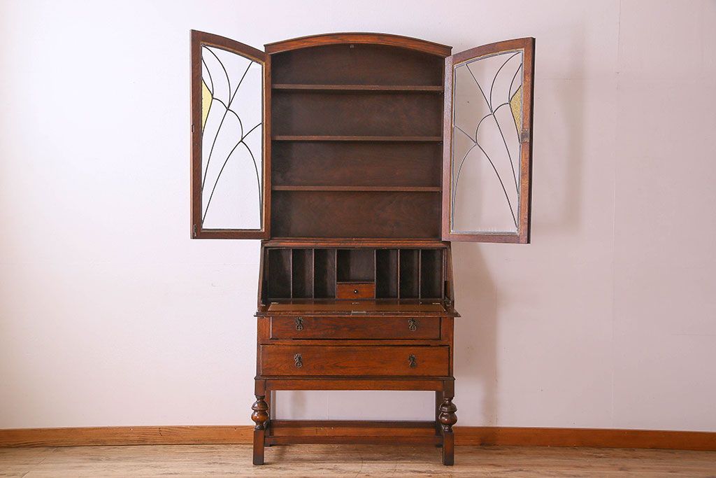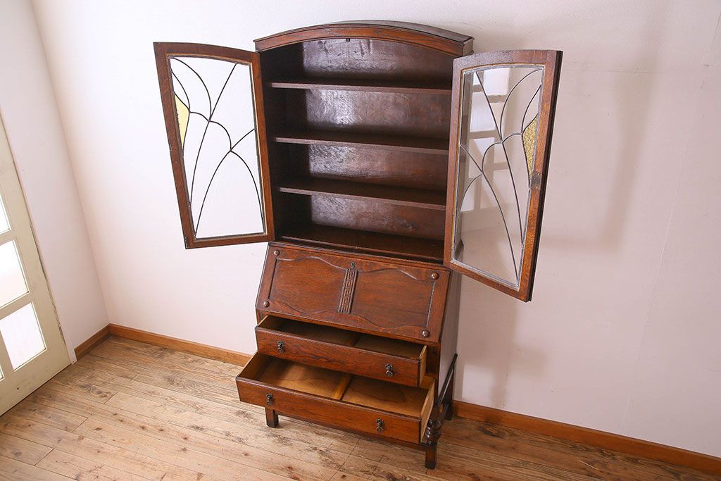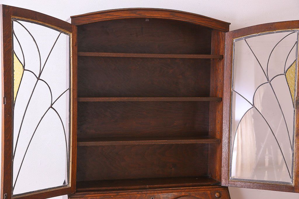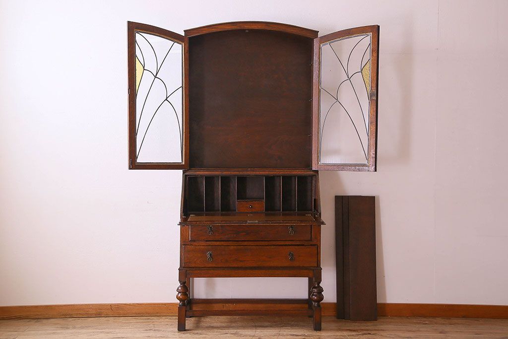 ラフジュ工房> デスク> ライティングビューロー・簿記机 > アンティーク雑貨 英国アンティーク オーク材製 ステンドグラス扉のビューローブックケース(キャビネット)