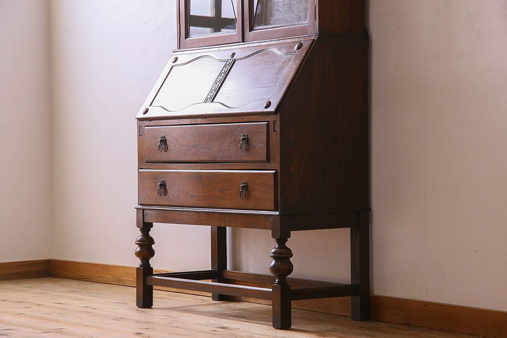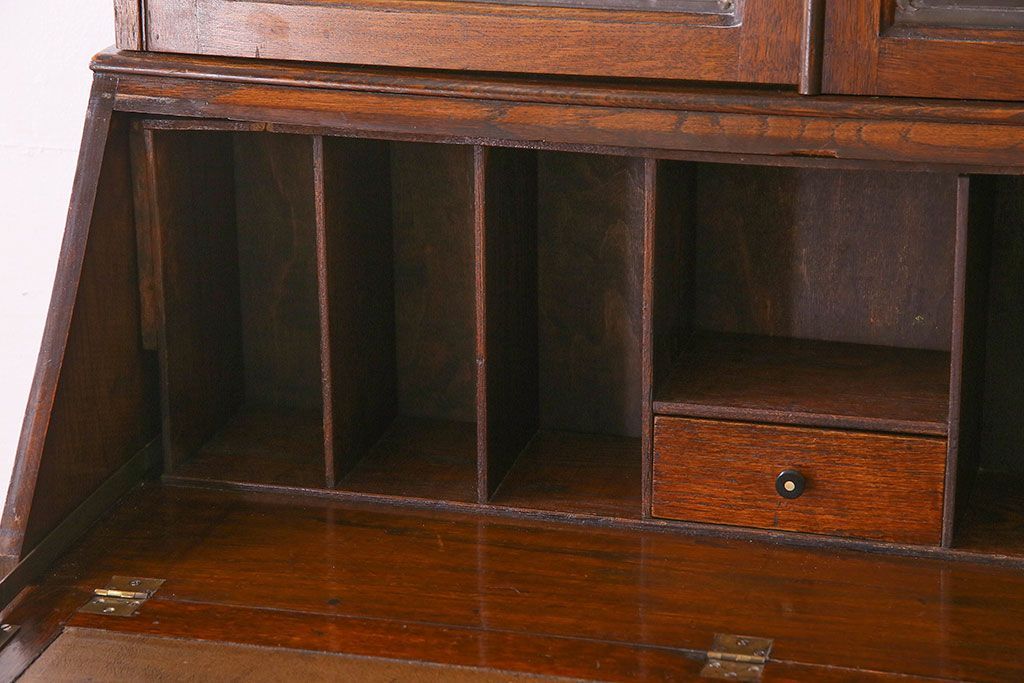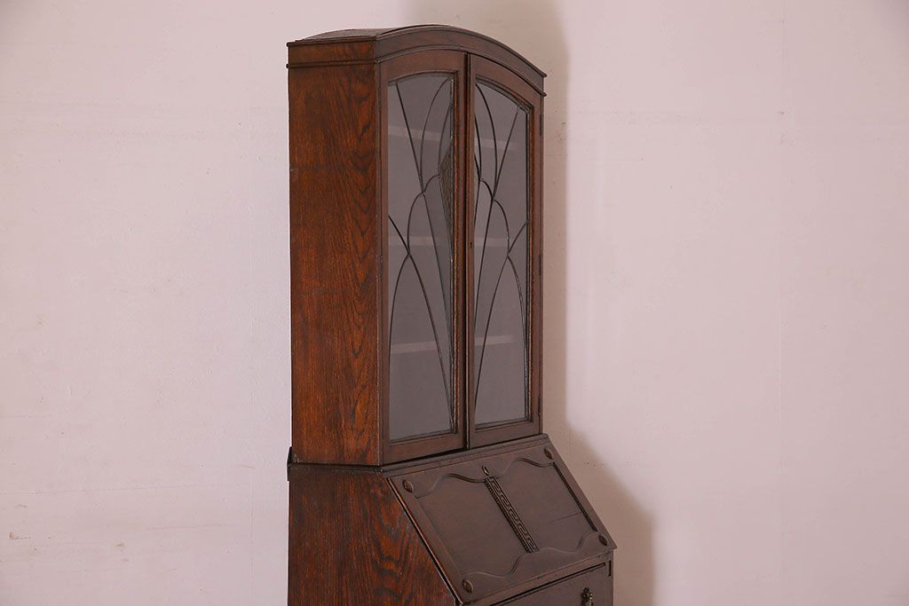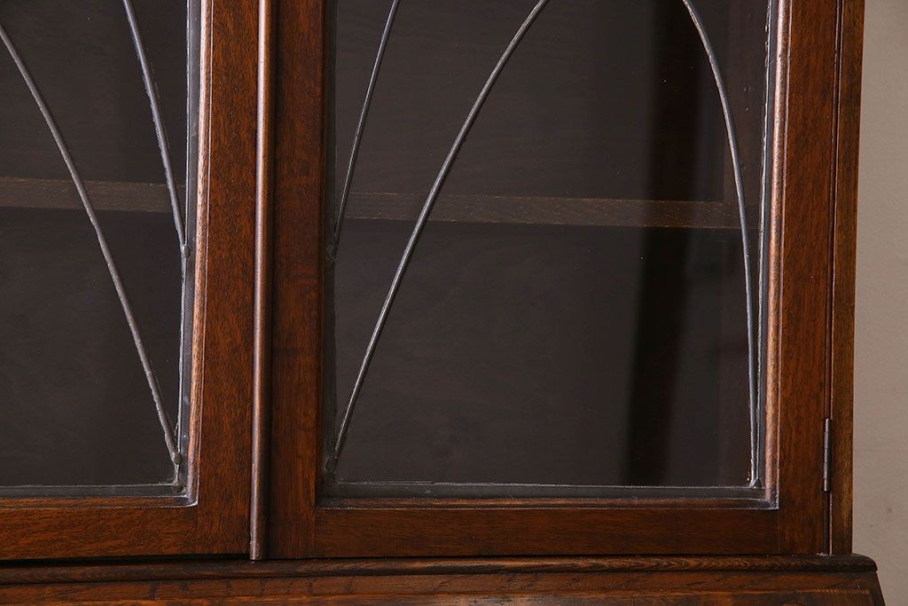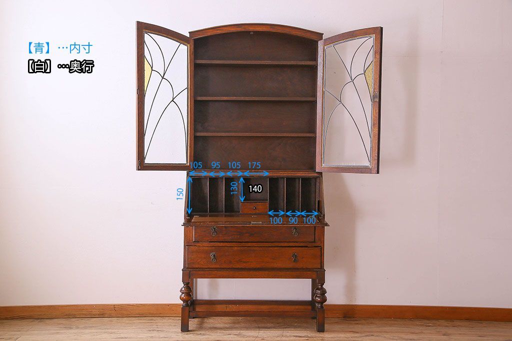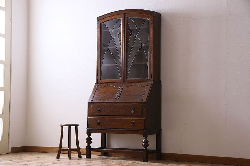 ラフジュ工房> デスク> ライティングビューロー・簿記机 > アンティーク雑貨 英国アンティーク オーク材製 ステンドグラス扉のビューローブックケース(キャビネット)