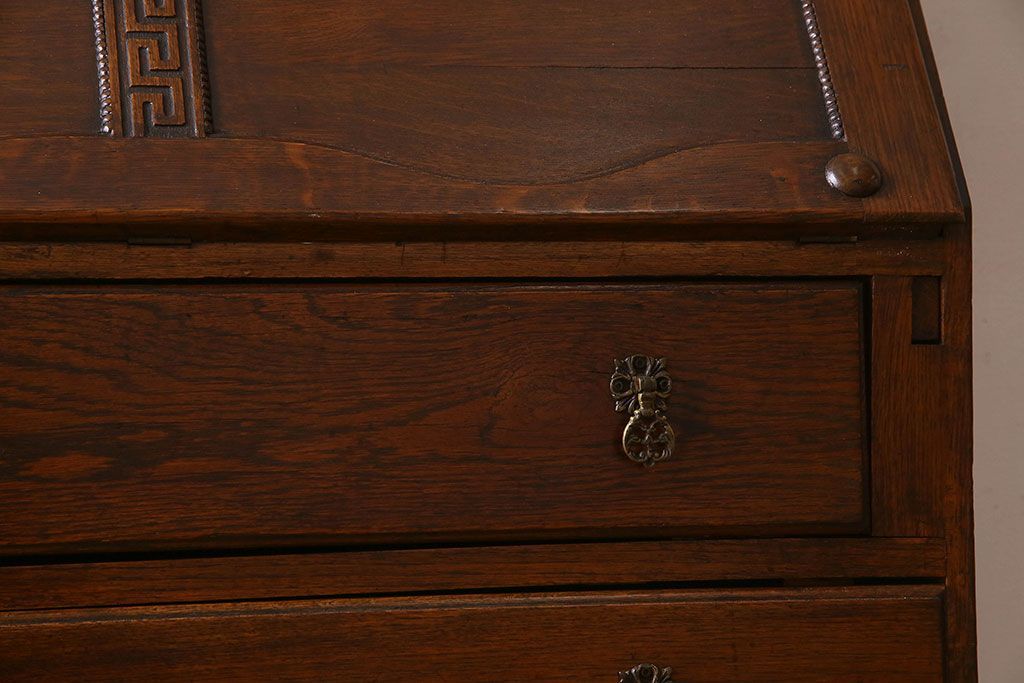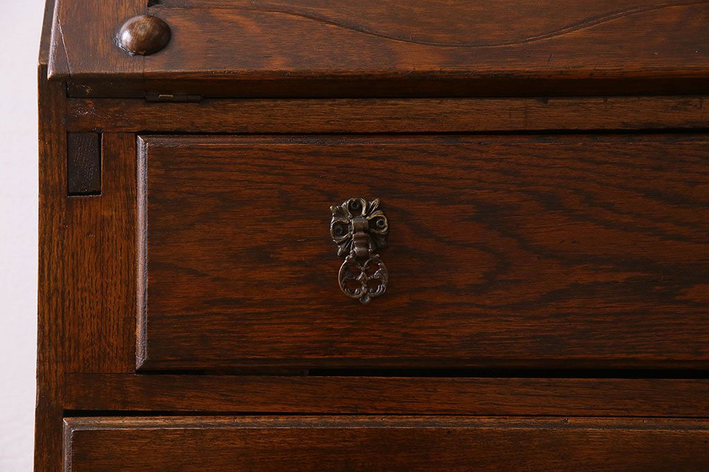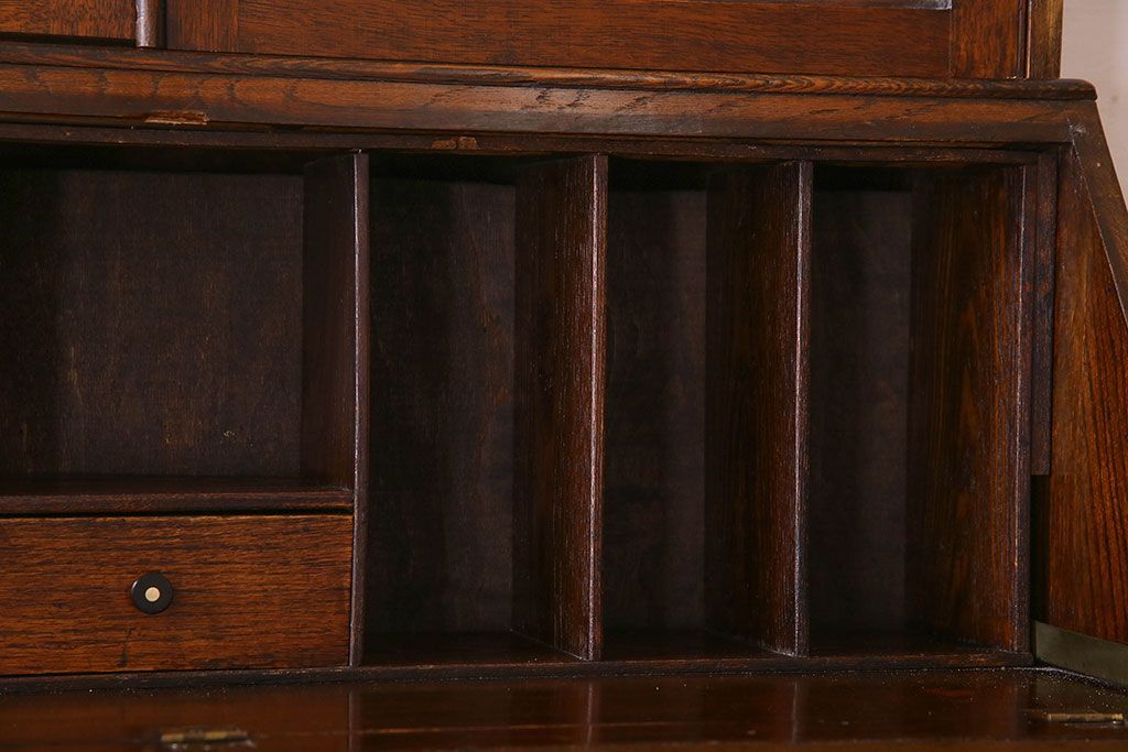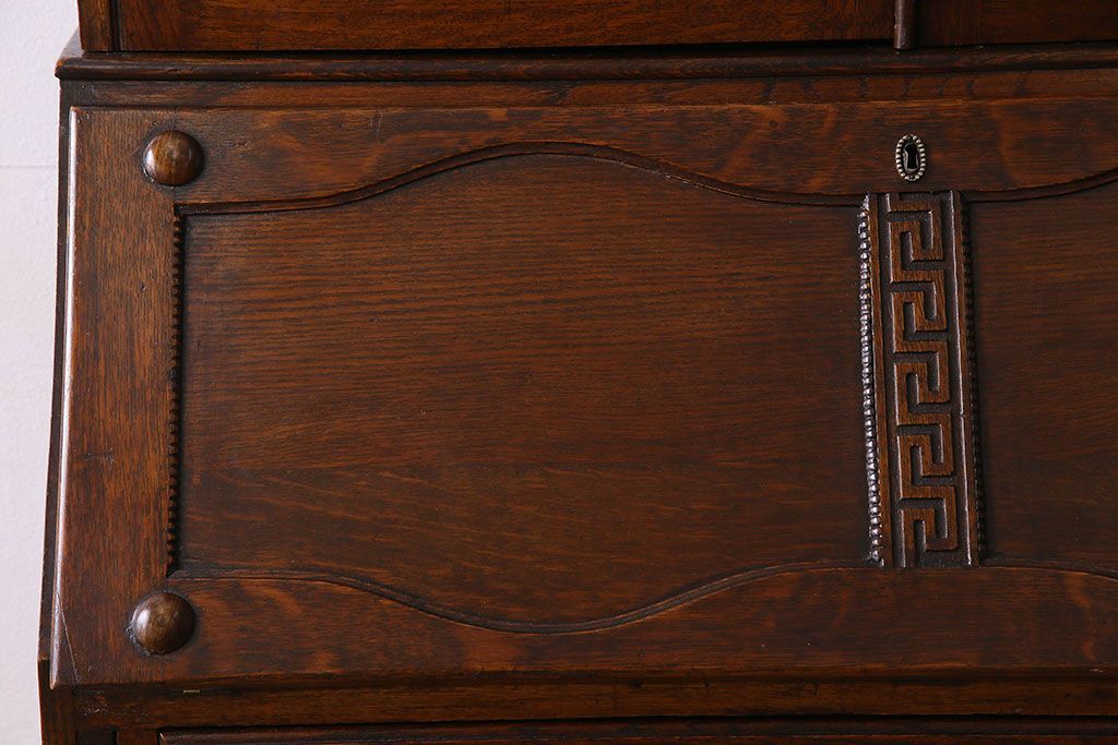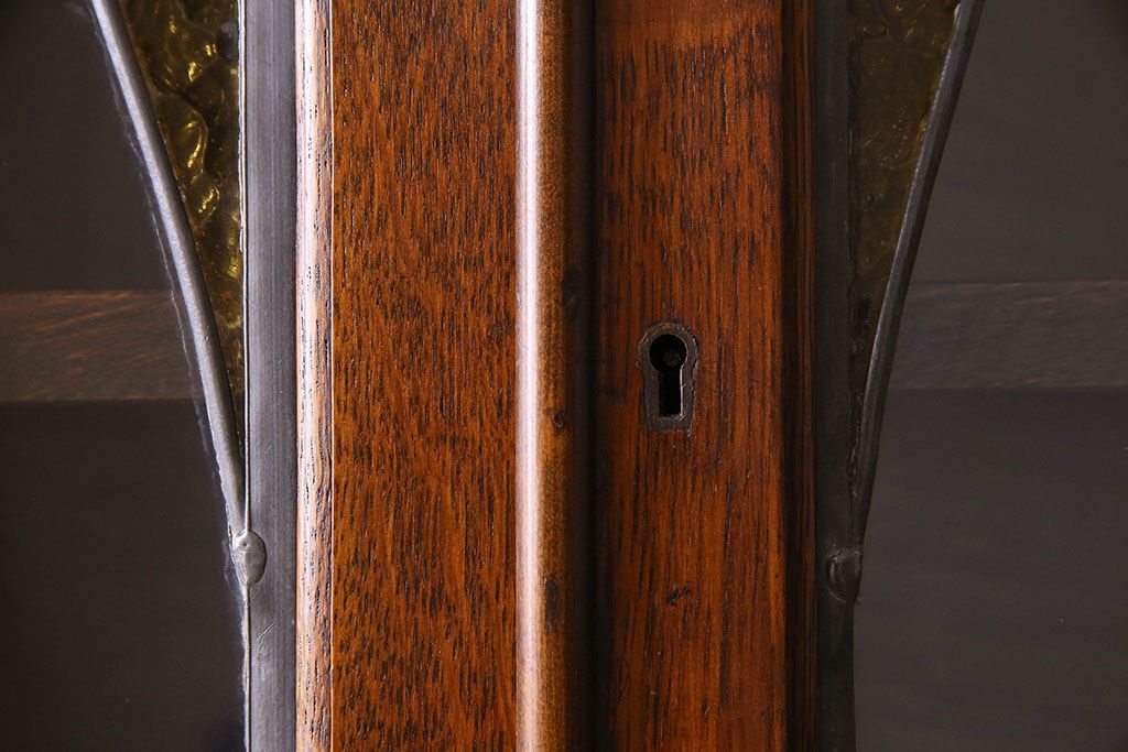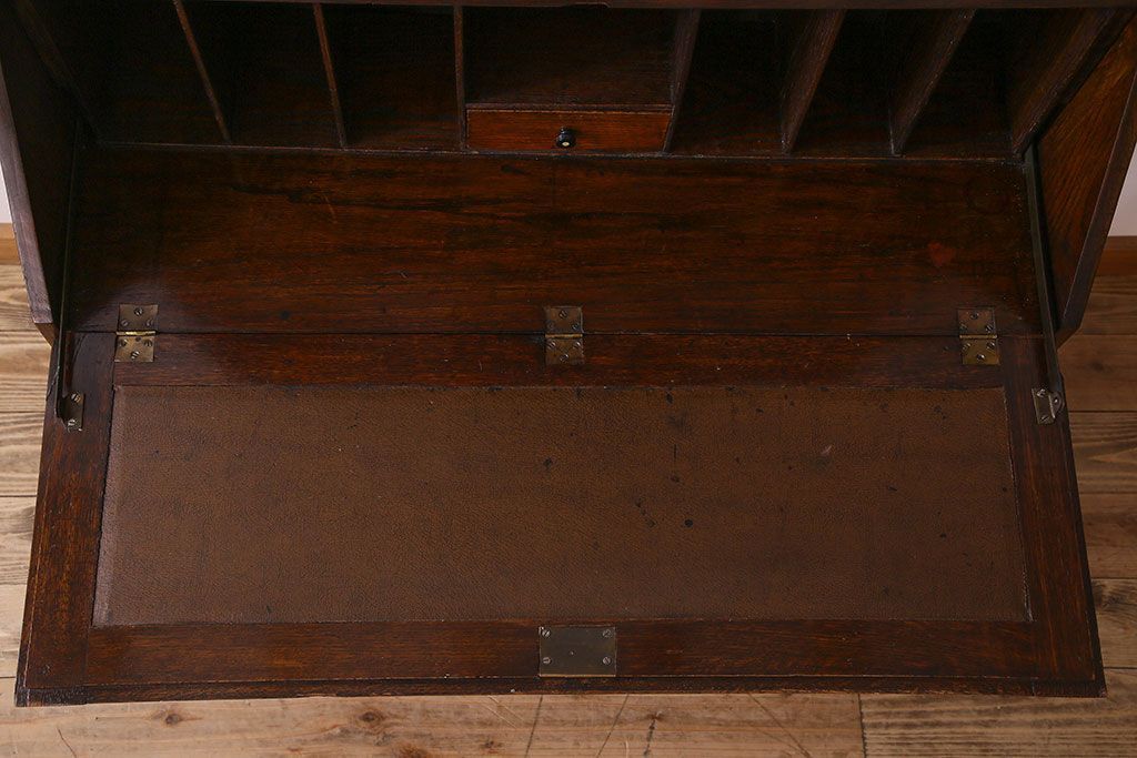 ラフジュ工房> デスク> ライティングビューロー・簿記机 > アンティーク雑貨 英国アンティーク オーク材製 ステンドグラス扉のビューローブックケース(キャビネット)