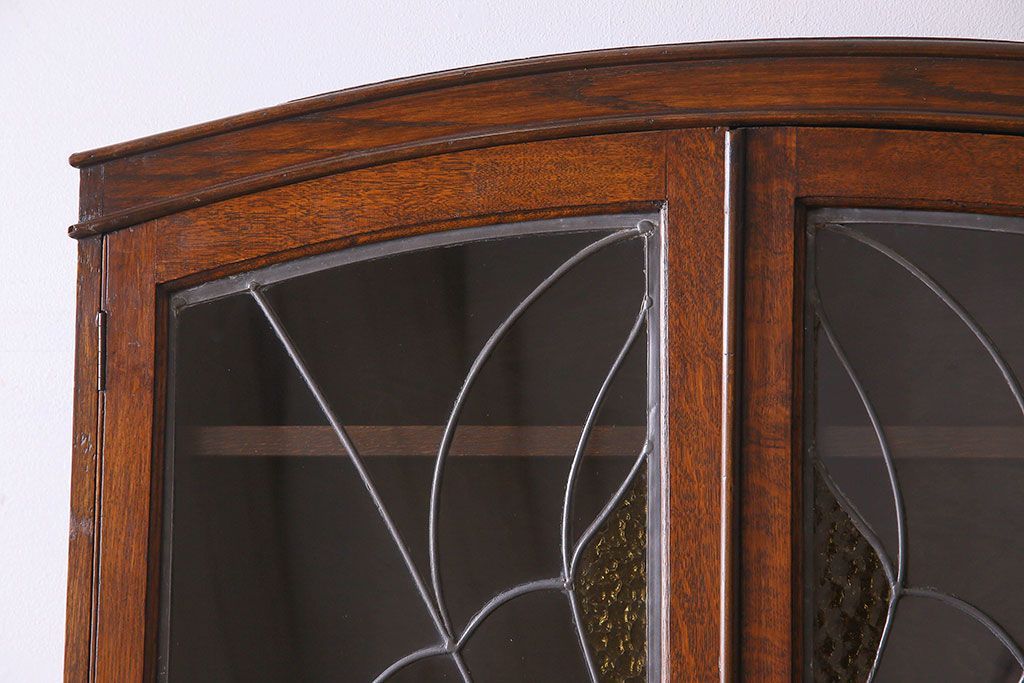 ラフジュ工房> キャビネット・戸棚 > アンティーク雑貨 英国アンティーク オーク材製 ステンドグラス扉のビューローブックケース(キャビネット)