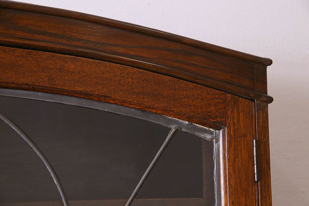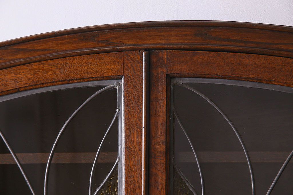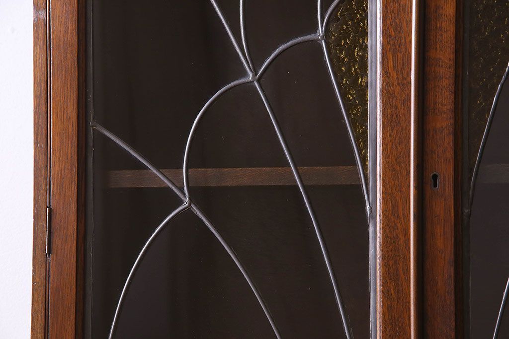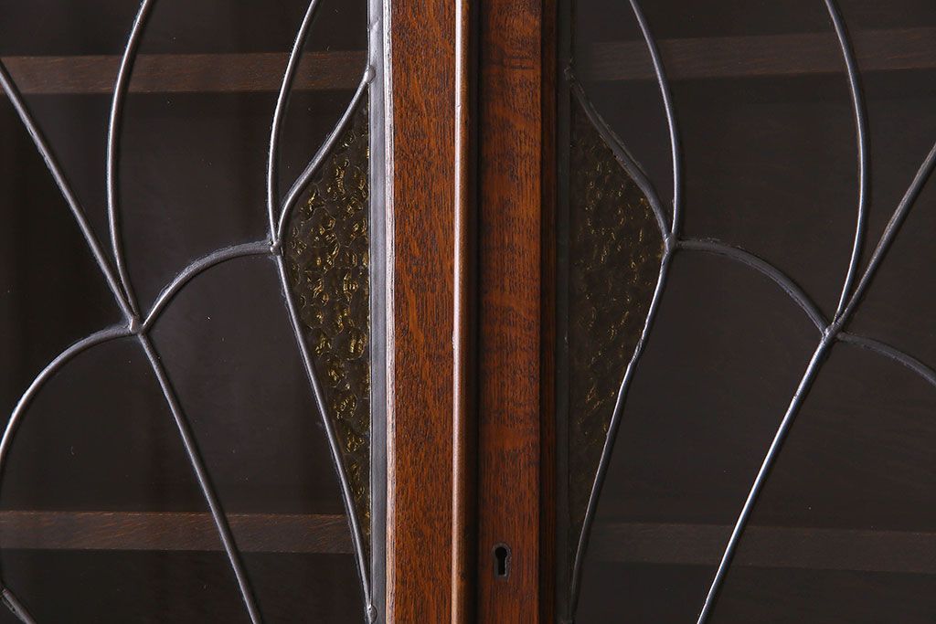 アンティーク雑貨 英国アンティーク オーク材製 ステンドグラス扉のビューローブックケース(キャビネット)