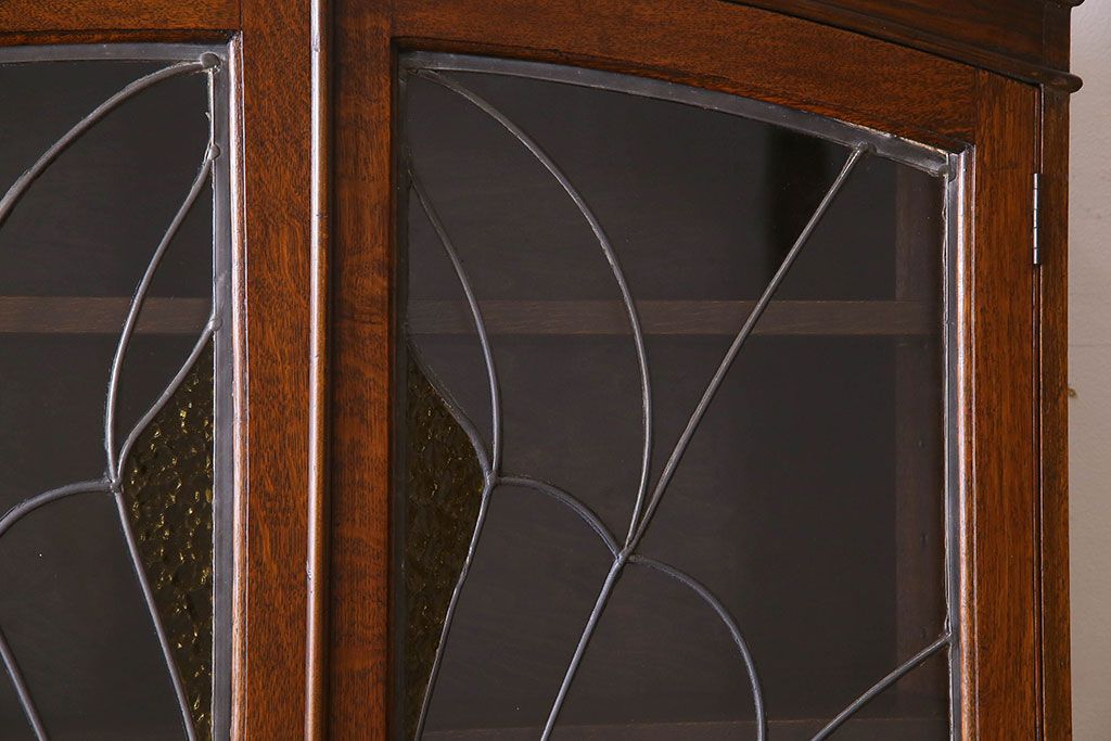 ラフジュ工房> ステンドグラス > アンティーク雑貨 英国アンティーク オーク材製 ステンドグラス扉のビューローブックケース(キャビネット)