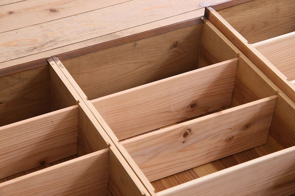 引き出しや棚は両面が繋がっており、