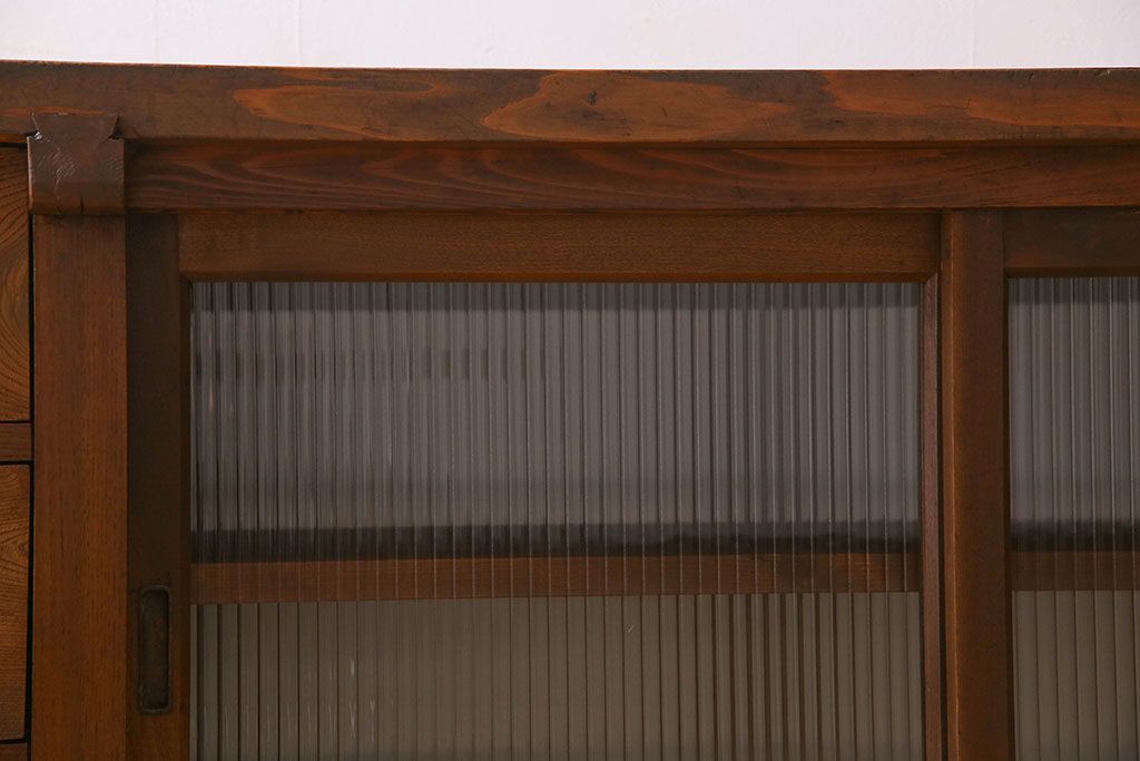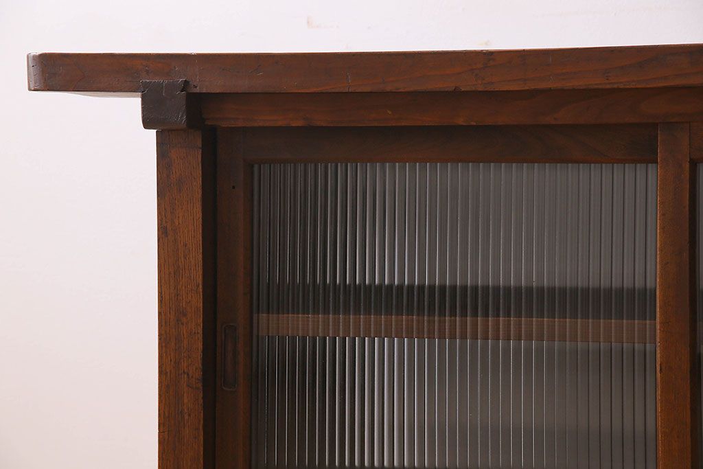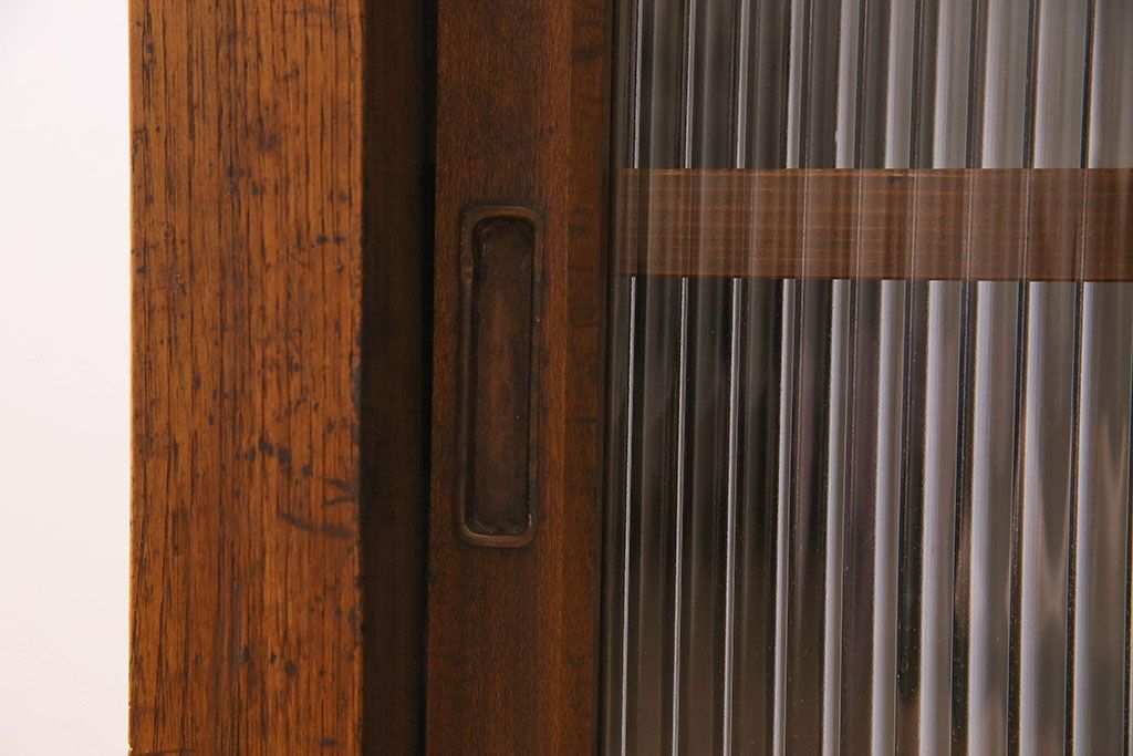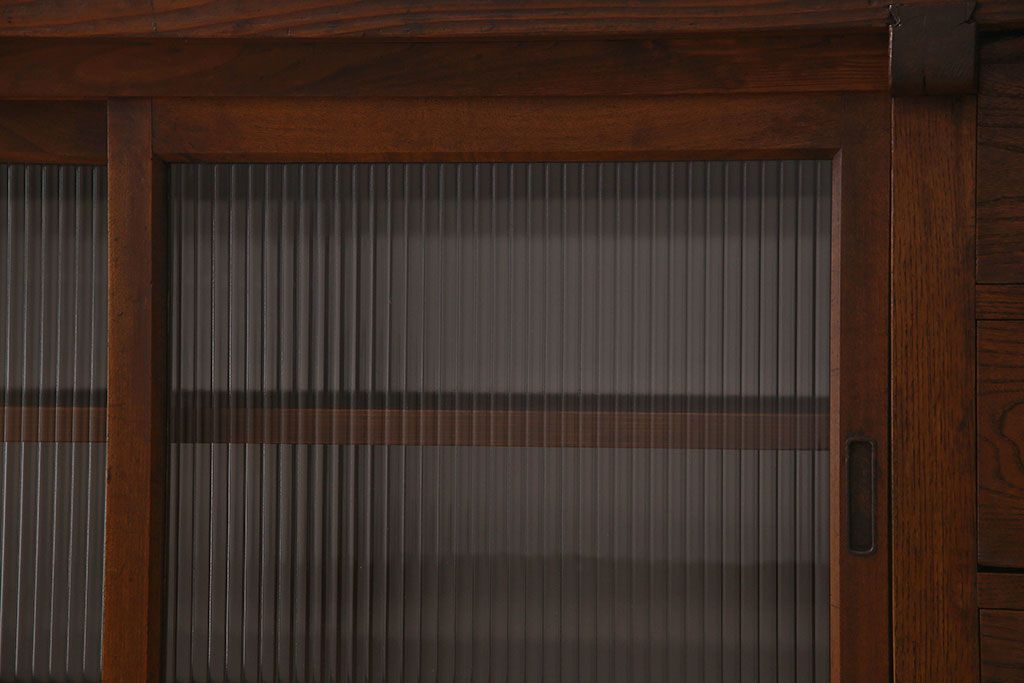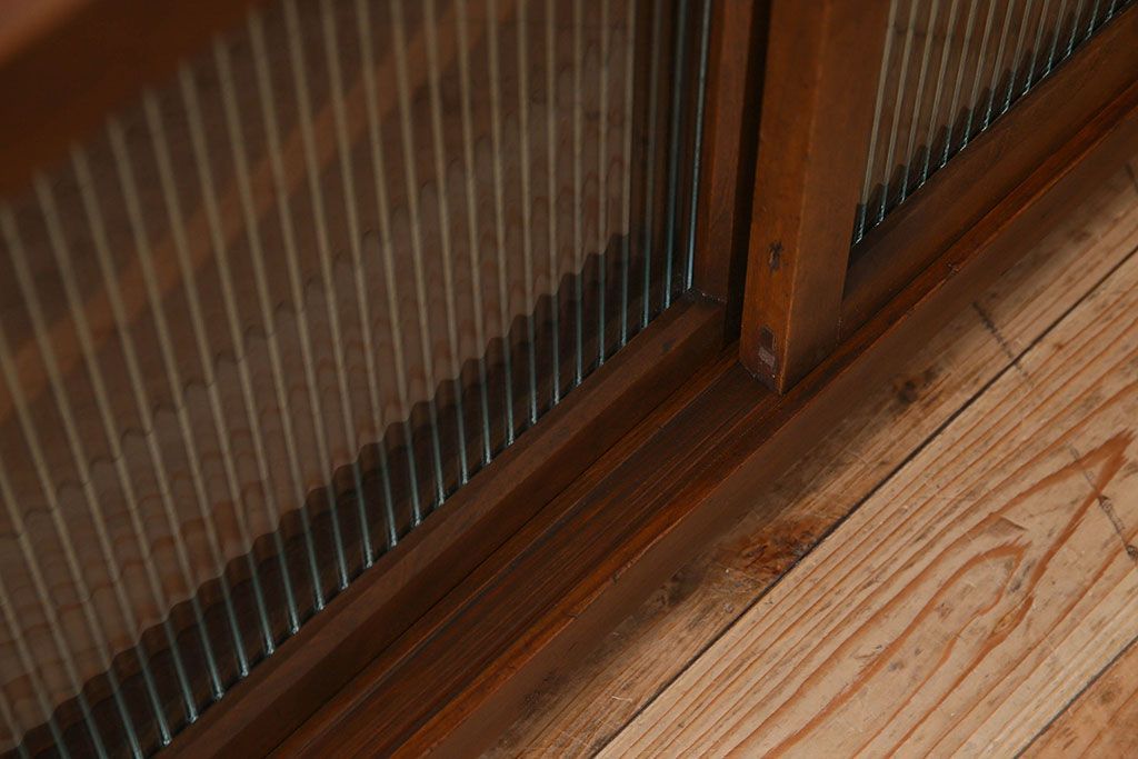 アンティーク家具 珍しい両面使い仕様!モールガラス引き戸のアンティーク作業台