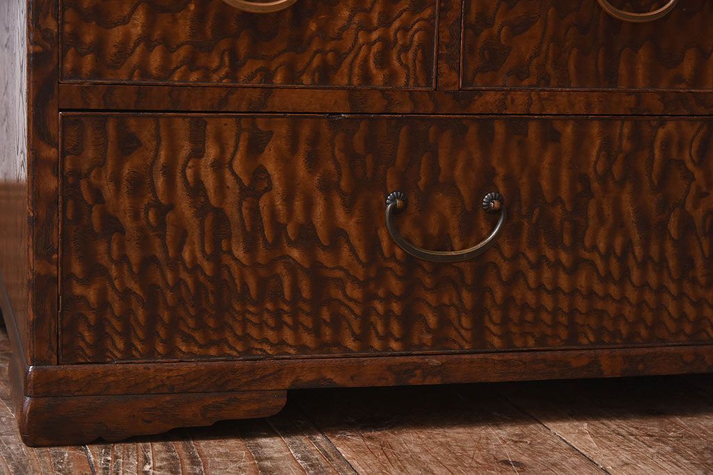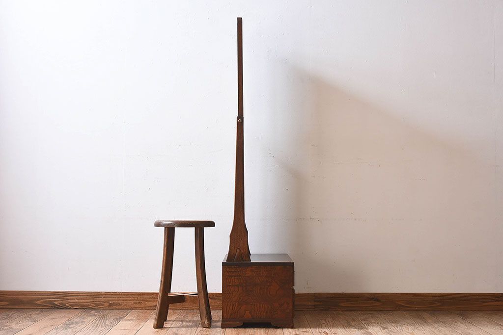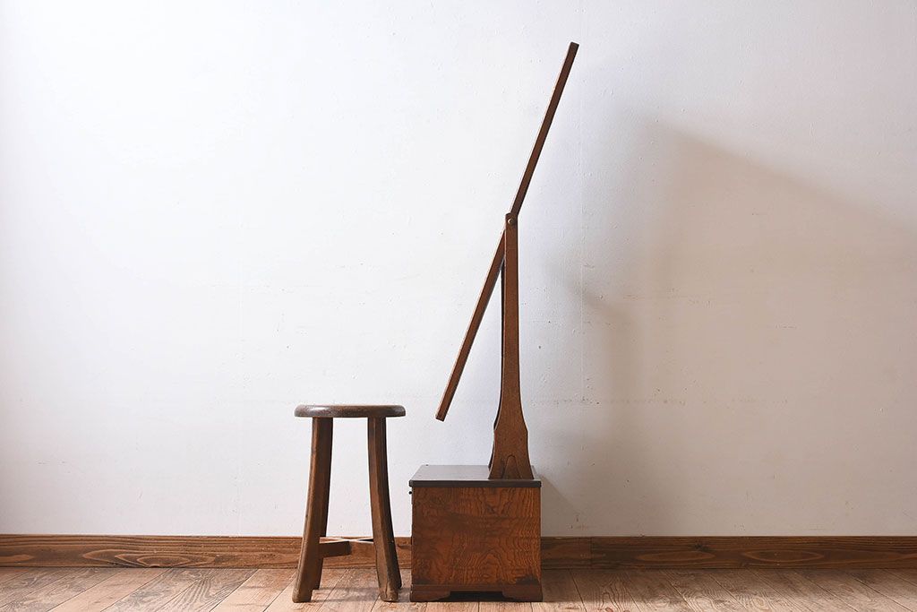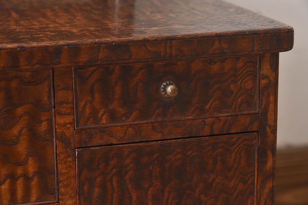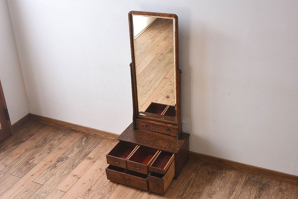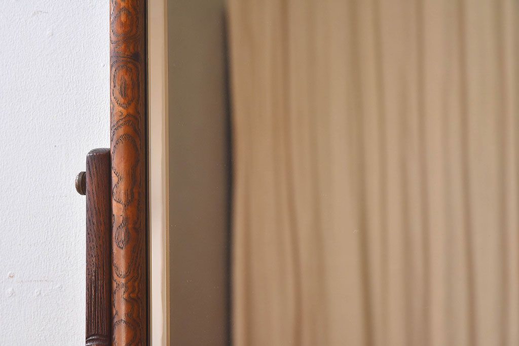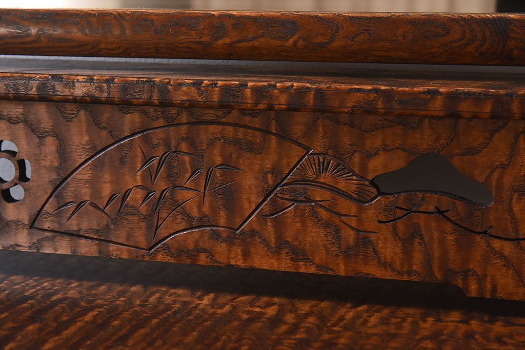 アンティーク雑貨 和製アンティーク タモ玉杢材 透かし彫りが素敵な鏡台(化粧台)