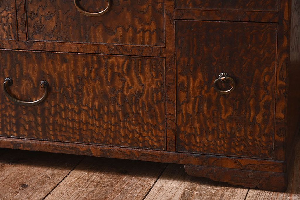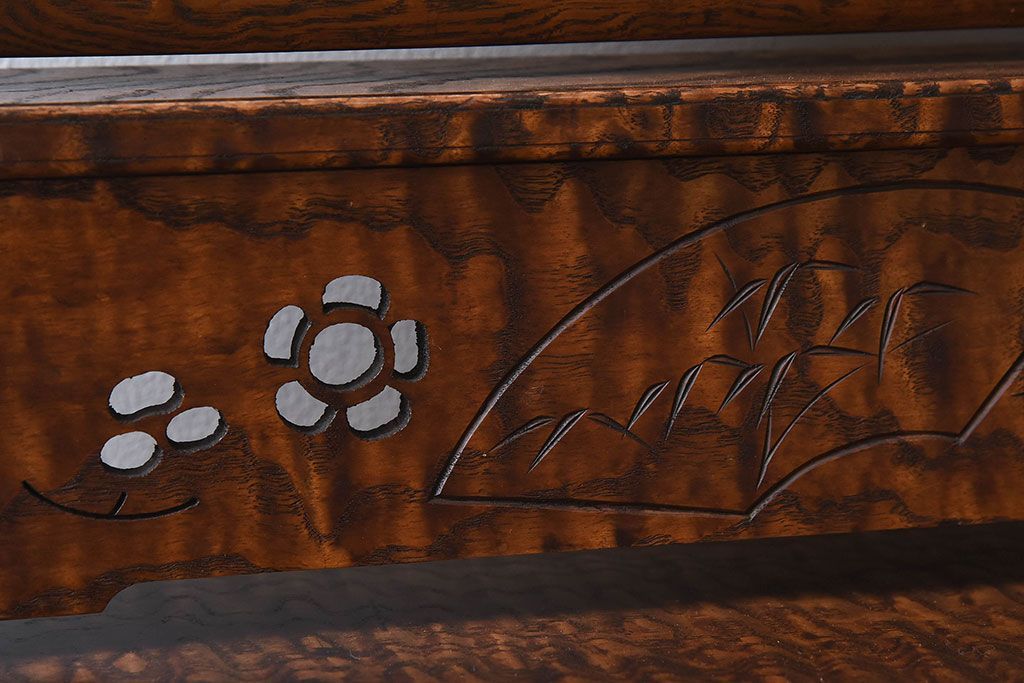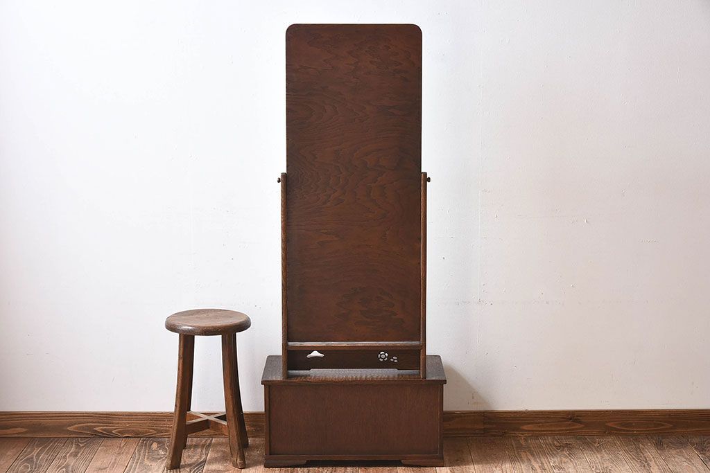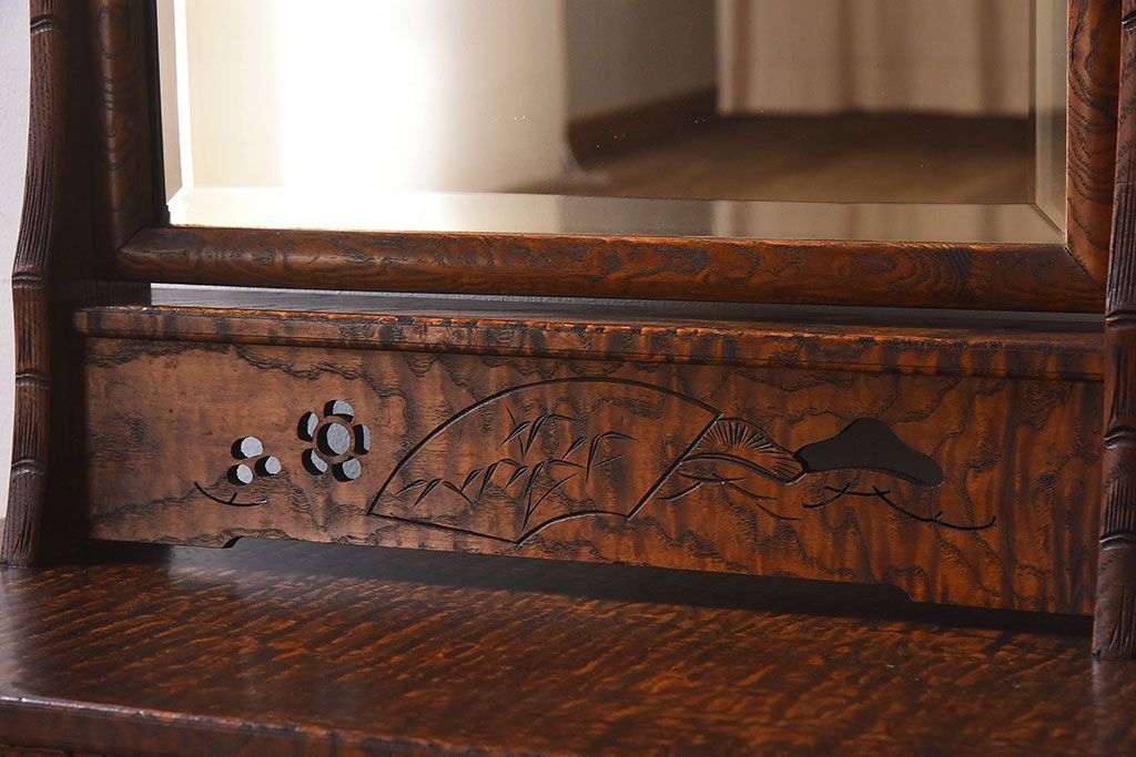 ラフジュ工房> ドレッサー・鏡台 > アンティーク雑貨 和製アンティーク タモ玉杢材 透かし彫りが素敵な鏡台(化粧台)