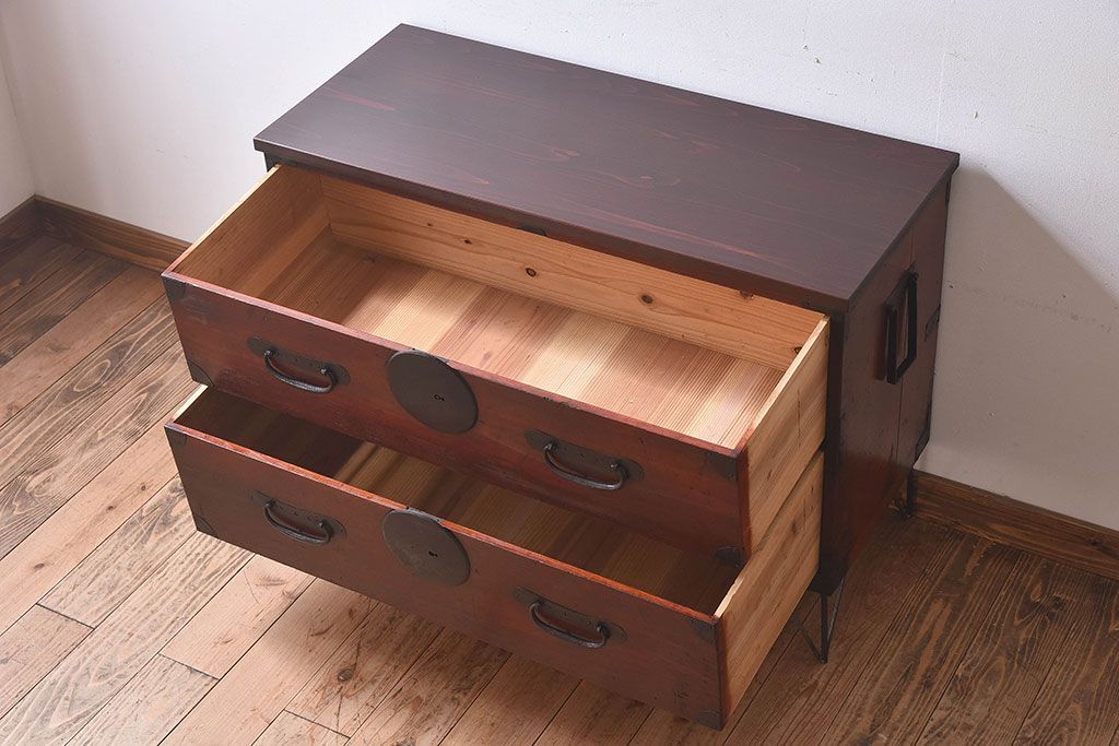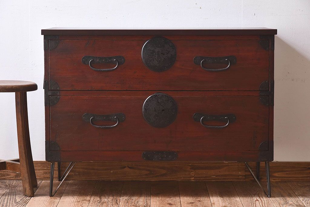 ラフジュ工房> 和箪笥 > アンティーク家具 和製アンティーク シンプルなデザインの鉄脚箪笥ローボード(ローチェスト)