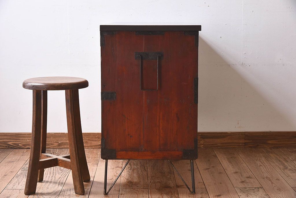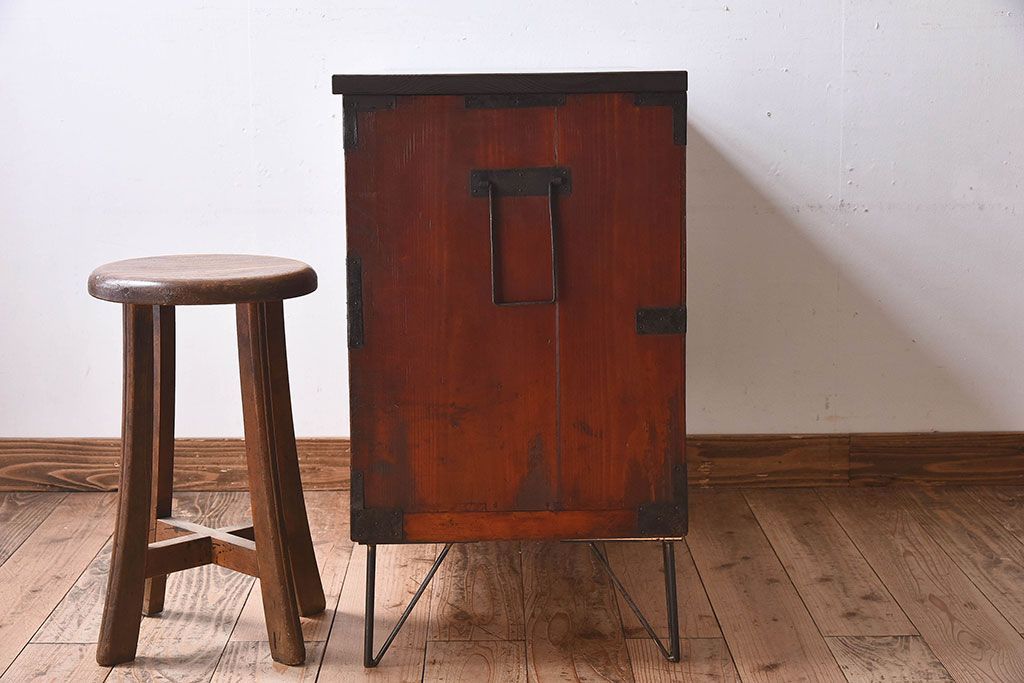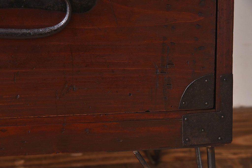 アンティーク家具 和製アンティーク シンプルなデザインの鉄脚箪笥ローボード(ローチェスト)