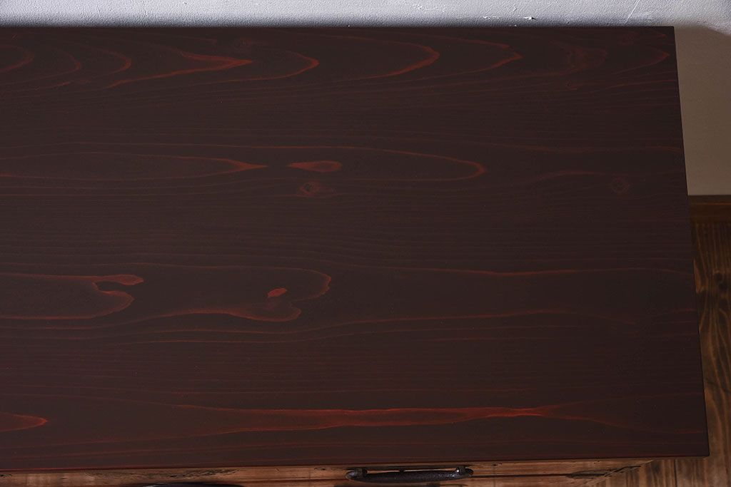 ラフジュ工房> キャビネット・戸棚> テレビ台・ローボード > アンティーク家具 和製アンティーク シンプルなデザインの鉄脚箪笥ローボード(ローチェスト)