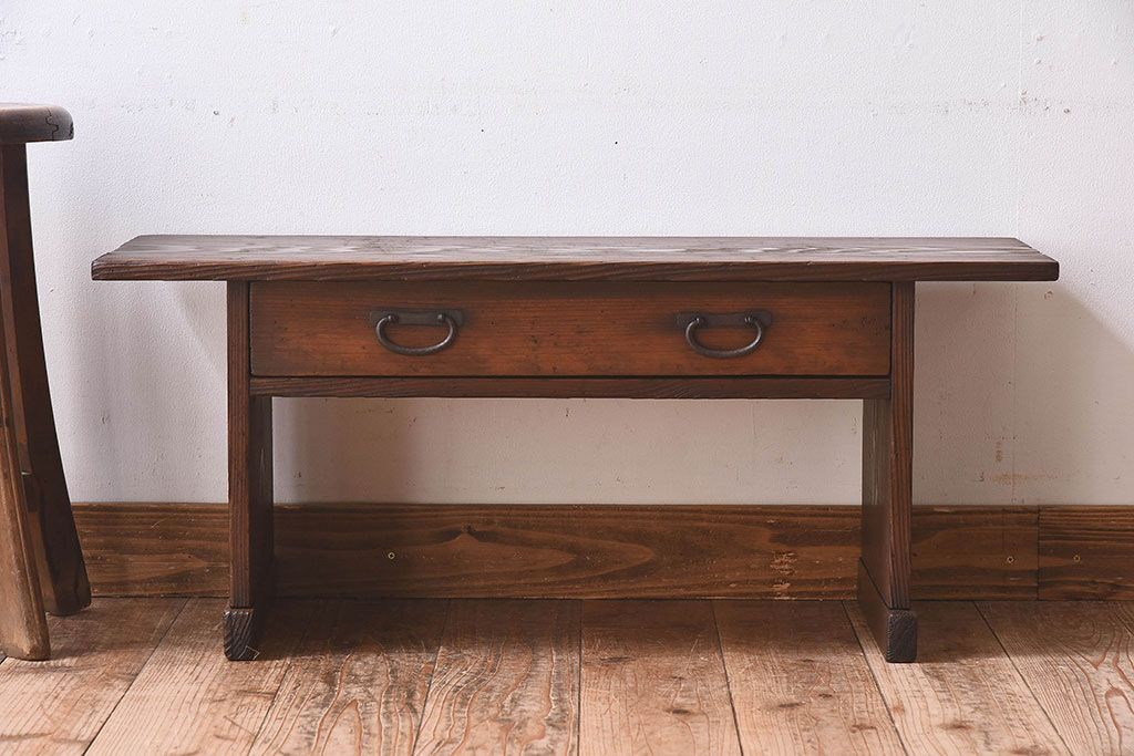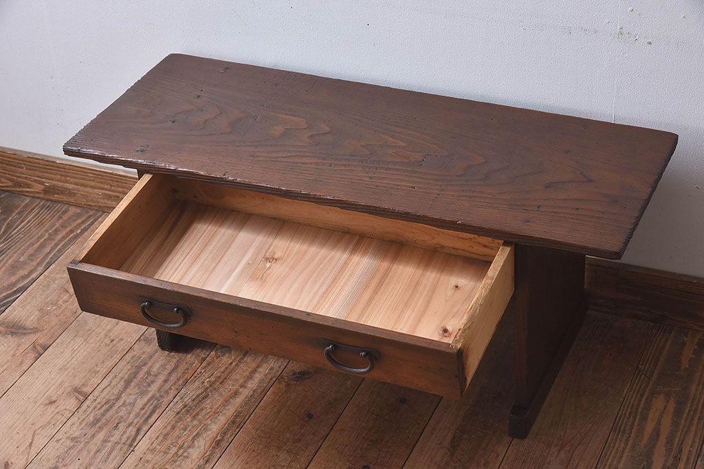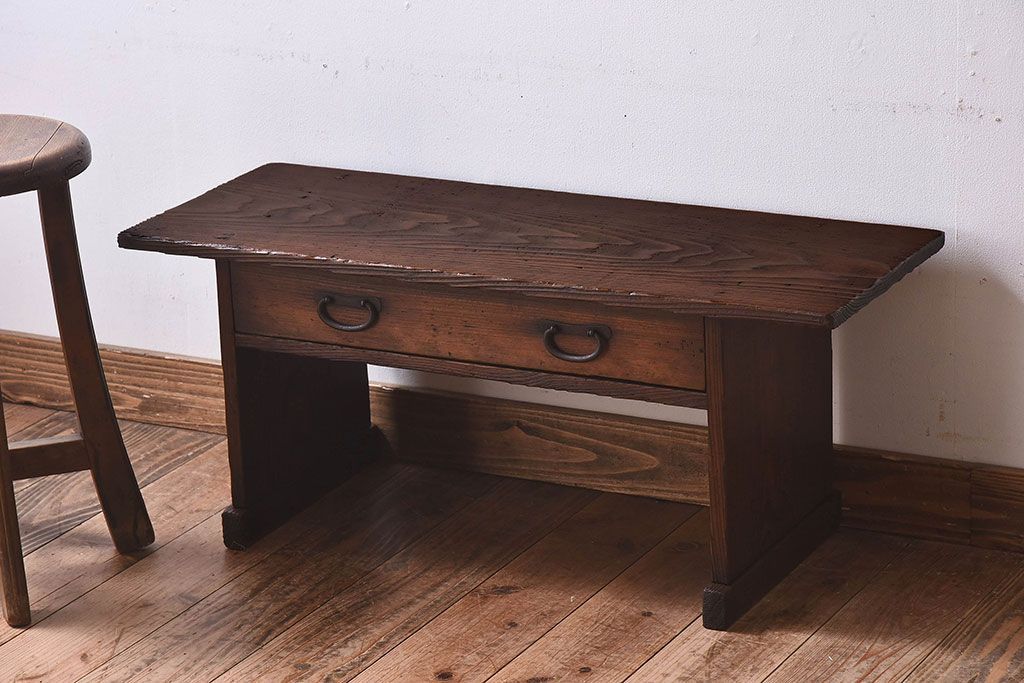 テーブル> 座卓 > アンティーク雑貨 和製アンティーク 天板一枚板 素朴な木の質感が味わい深い文机(座卓、デスク、在宅ワーク、在宅用、花台、飾り台)