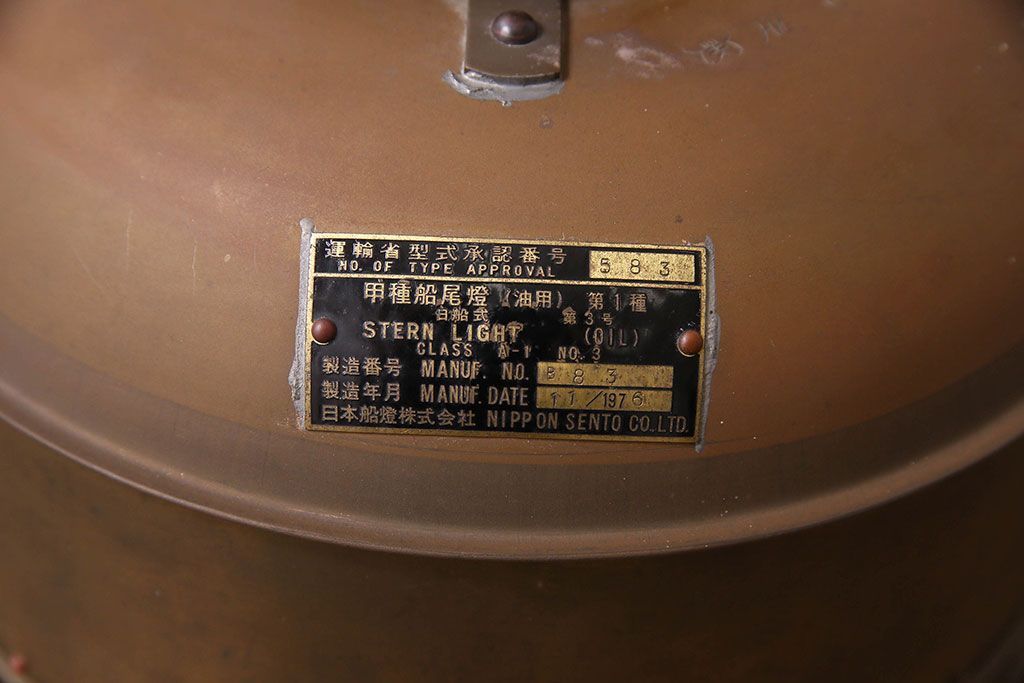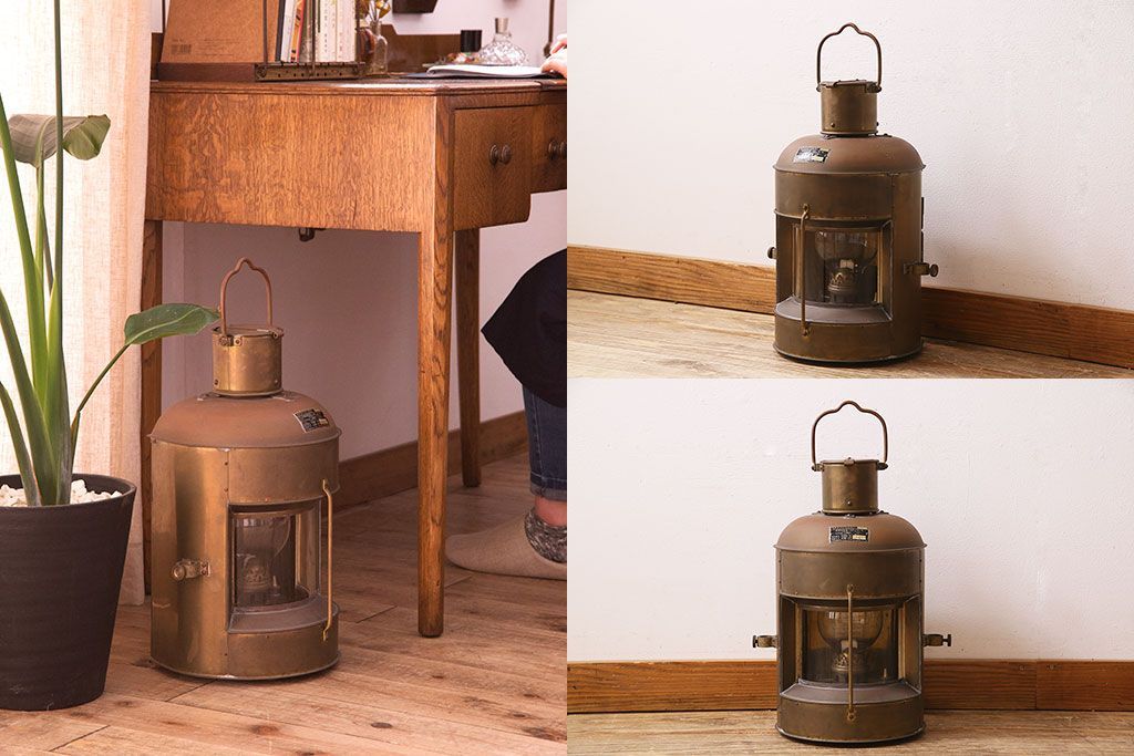 アンティーク雑貨 真鍮製 使い込まれた質感がおしゃれなランプ(船ランプ、船尾燈、照明)