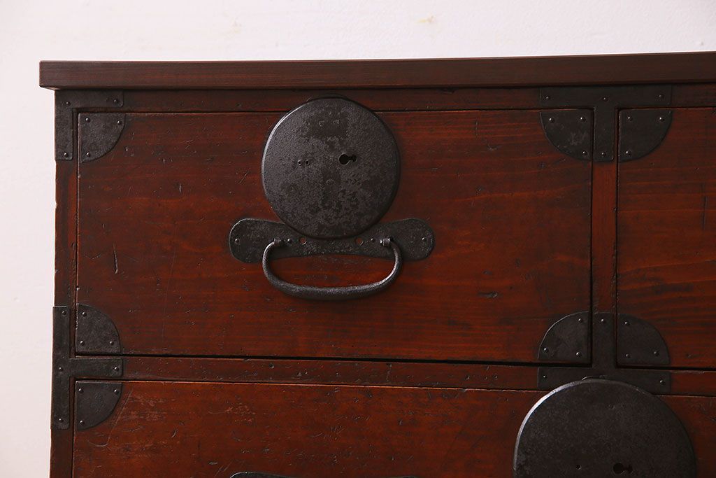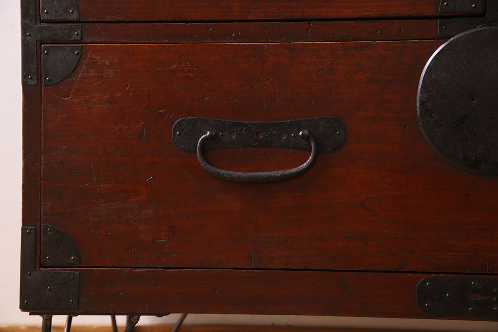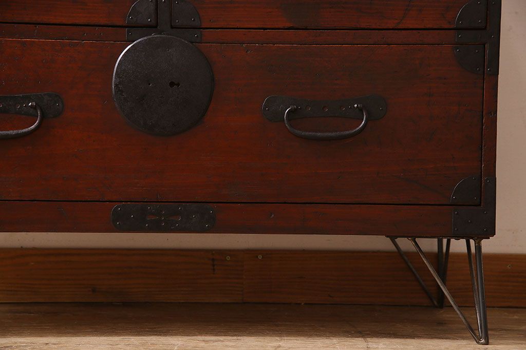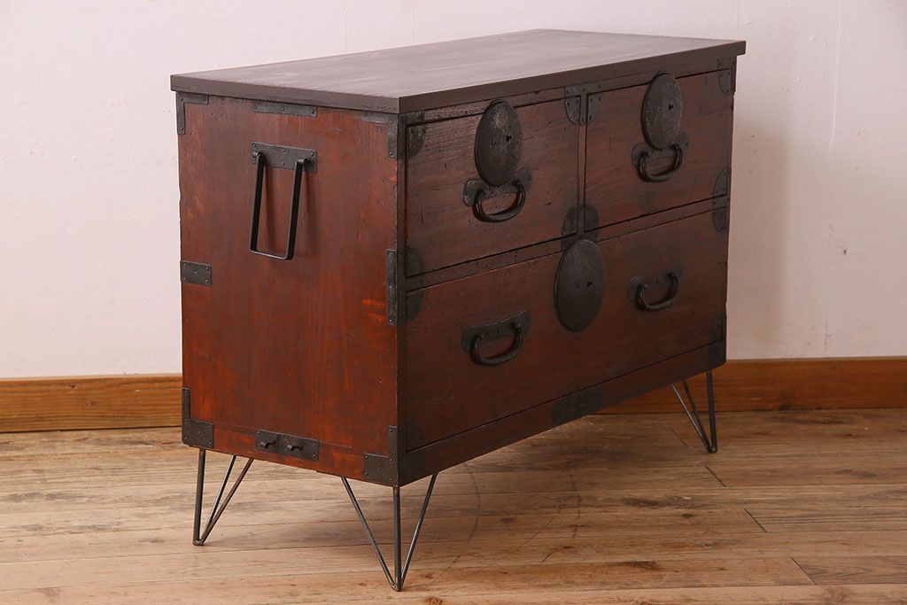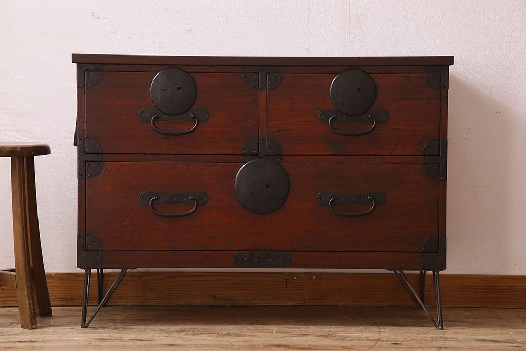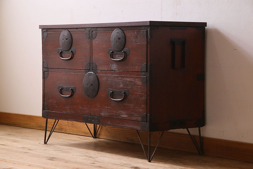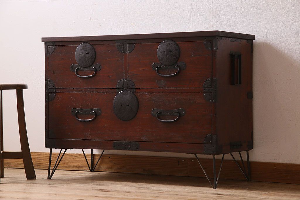 ラフジュ工房> 和箪笥 > アンティーク家具 使い込まれた質感が味わい深い鉄脚箪笥ローボード(ローチェスト)