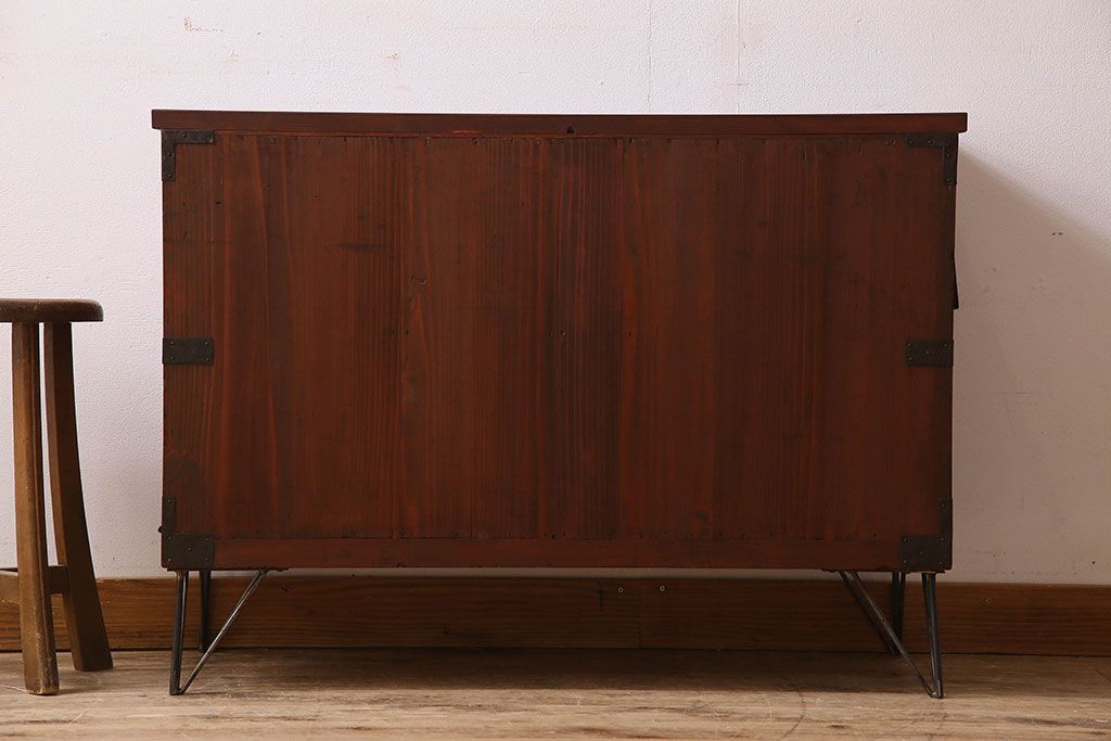 アンティーク家具 使い込まれた質感が味わい深い鉄脚箪笥ローボード(ローチェスト)