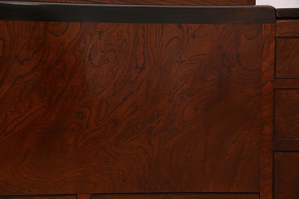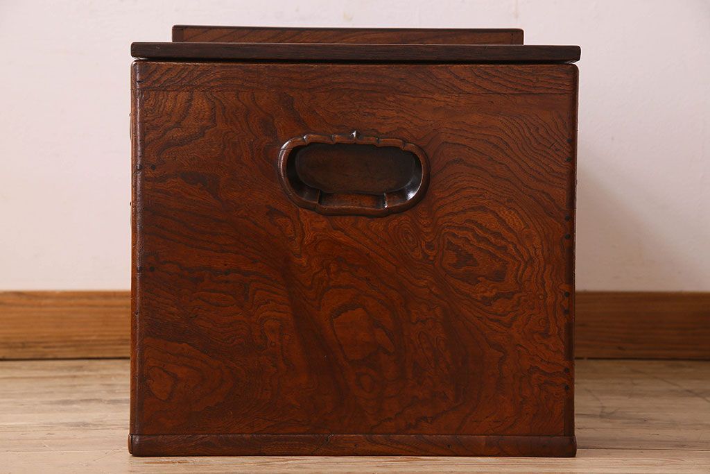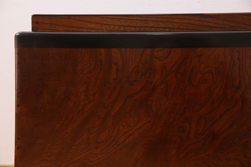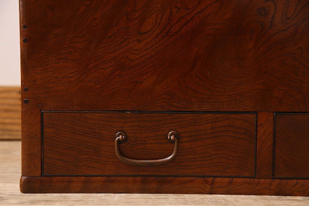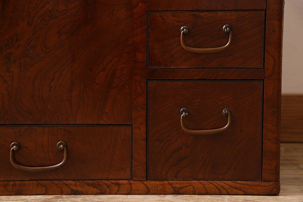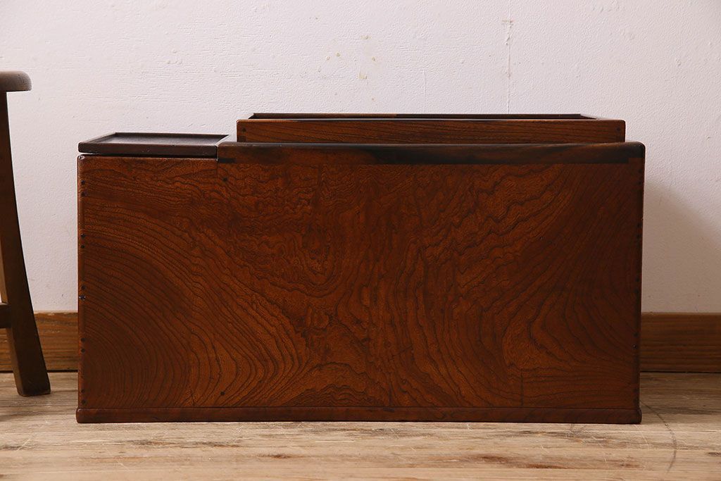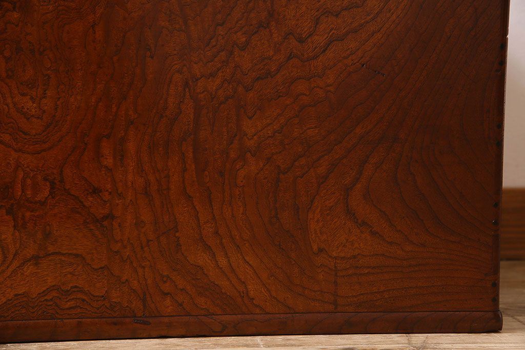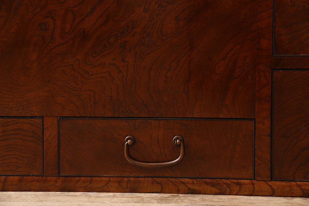 ケヤキ材の杢目が美しく、格調のある佇まいが魅力的な長火鉢です。