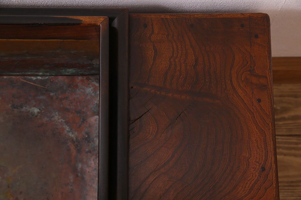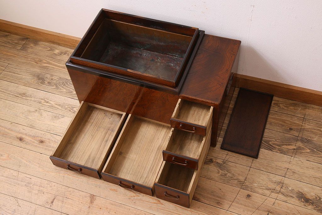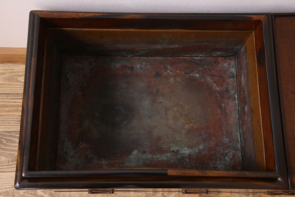 アンティーク雑貨 古民具・骨董 猫板付き ケヤキの杢目が魅力的な長火鉢