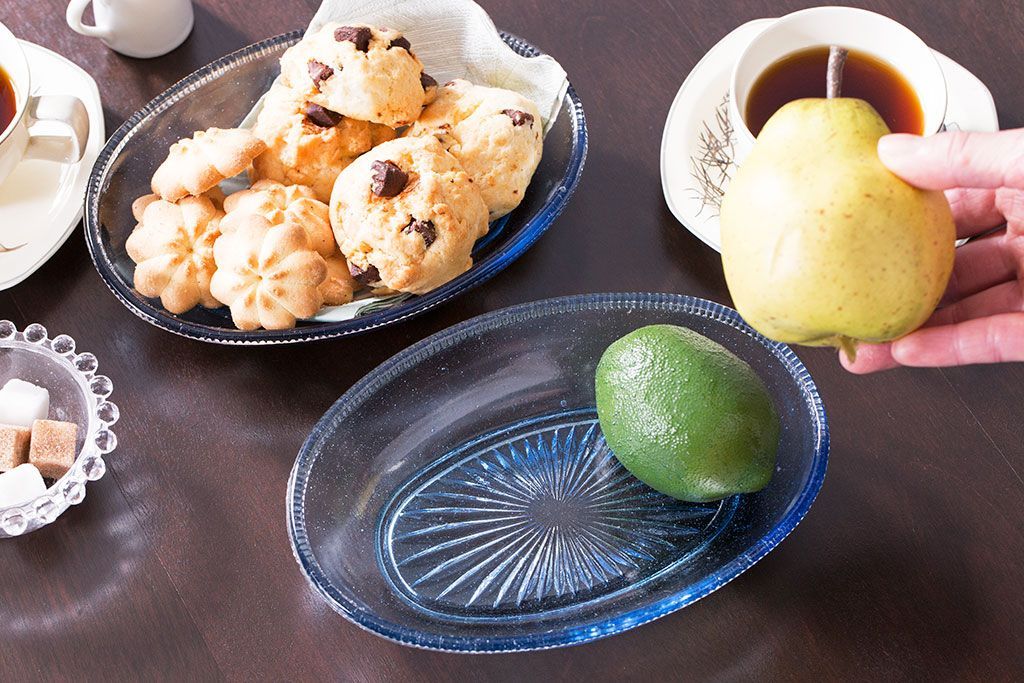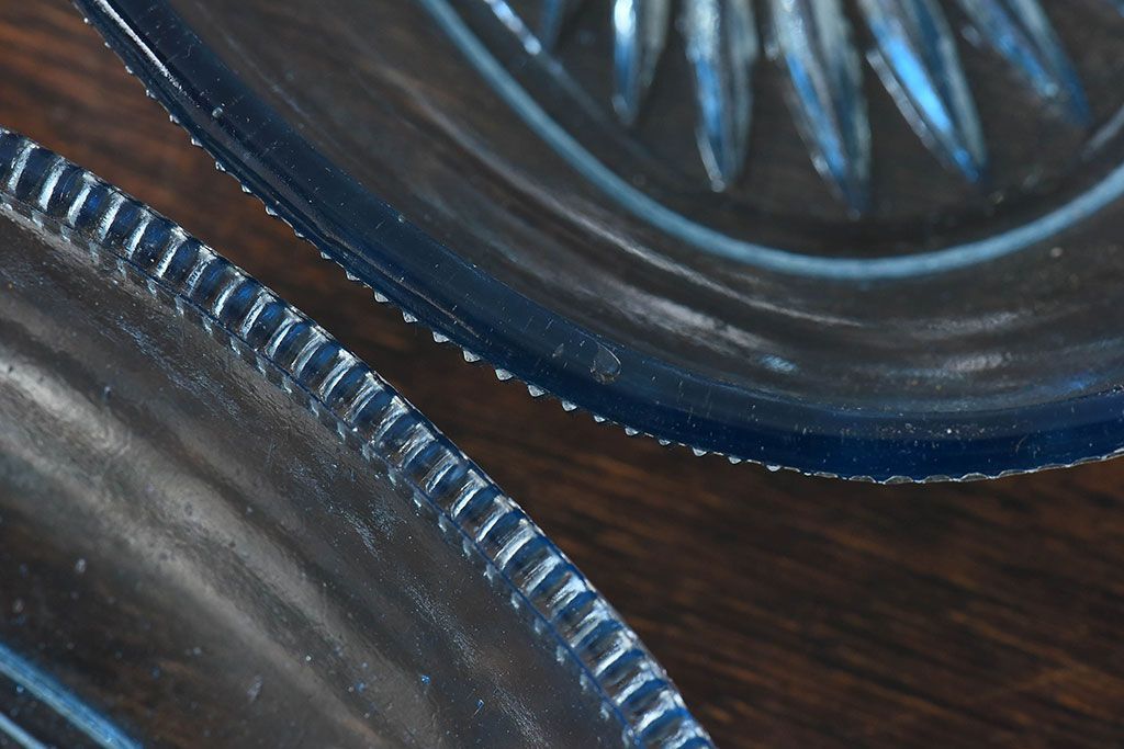 ラフジュ工房> 和食器・茶道具 > アンティーク雑貨 昭和レトロ 水色が涼しげなプレスガラス製の長皿(器)2枚セット