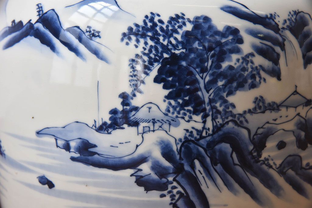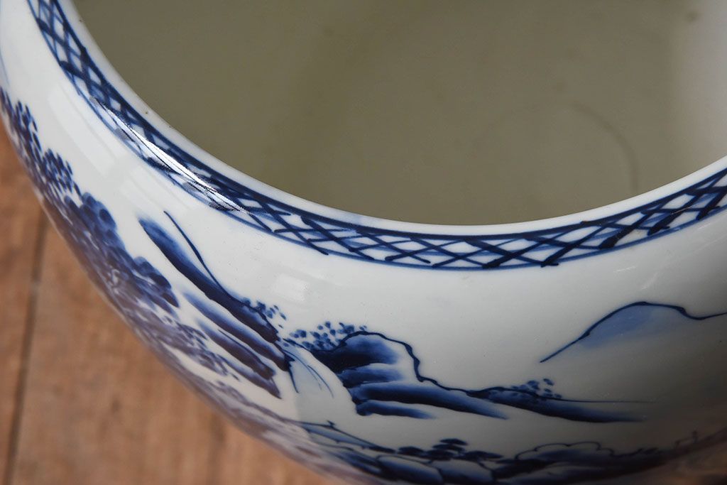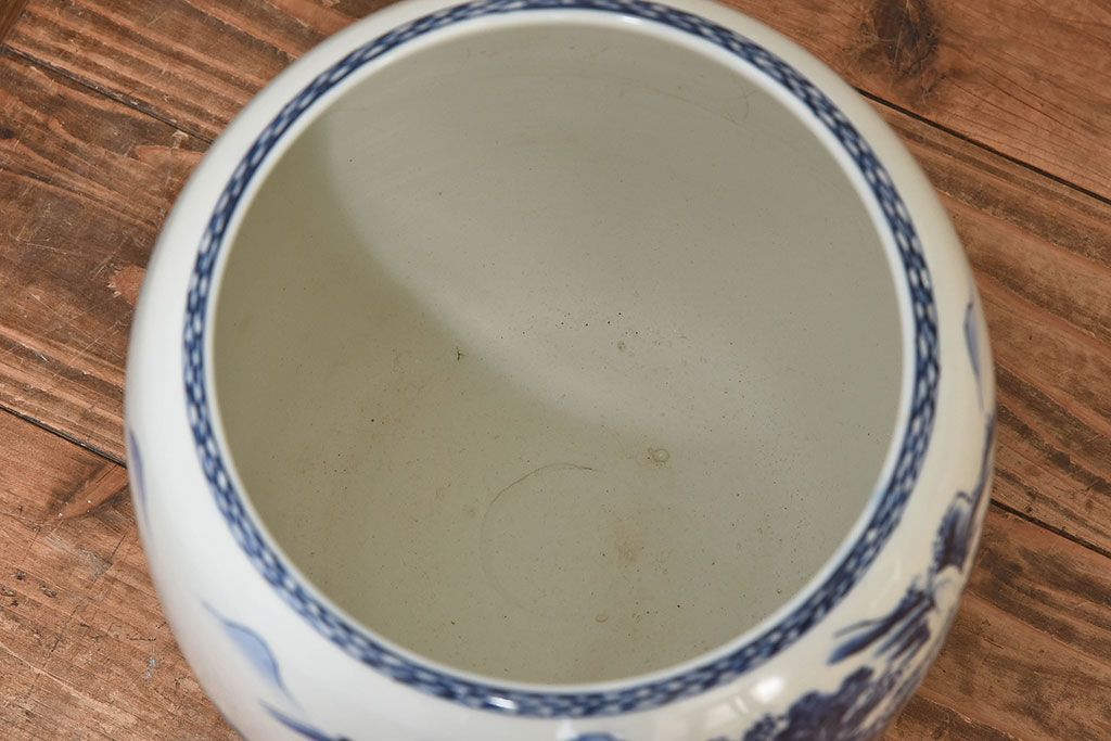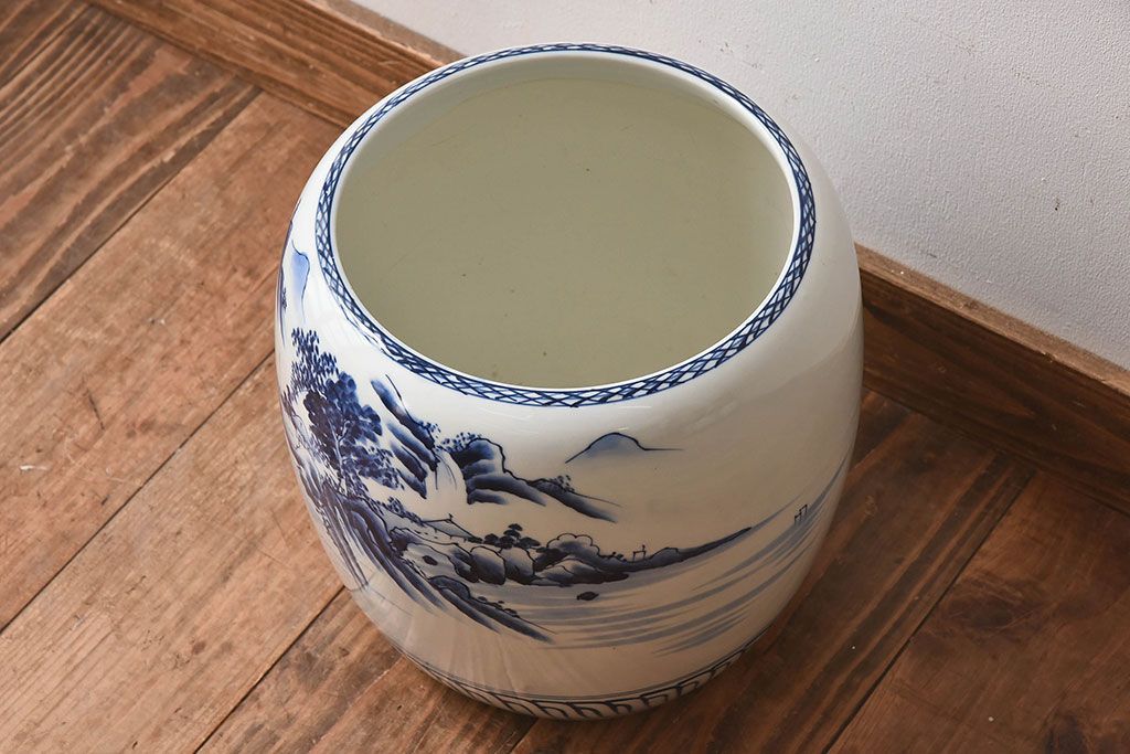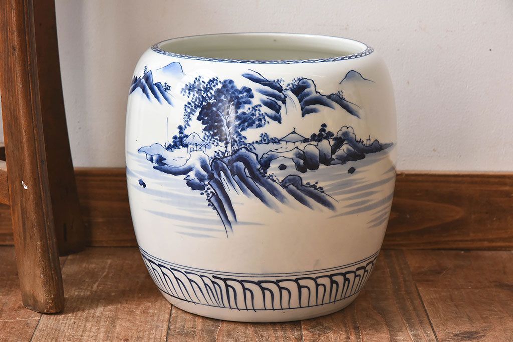 古民具・骨董 山水図で覆われたアンティーク瀬戸火鉢(鉢カバー)です。